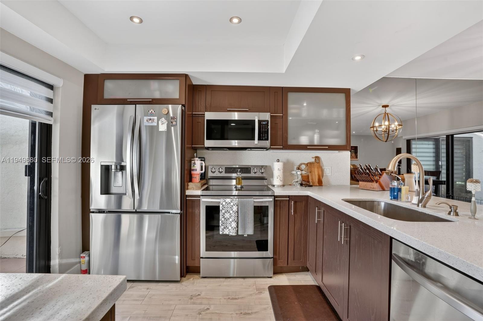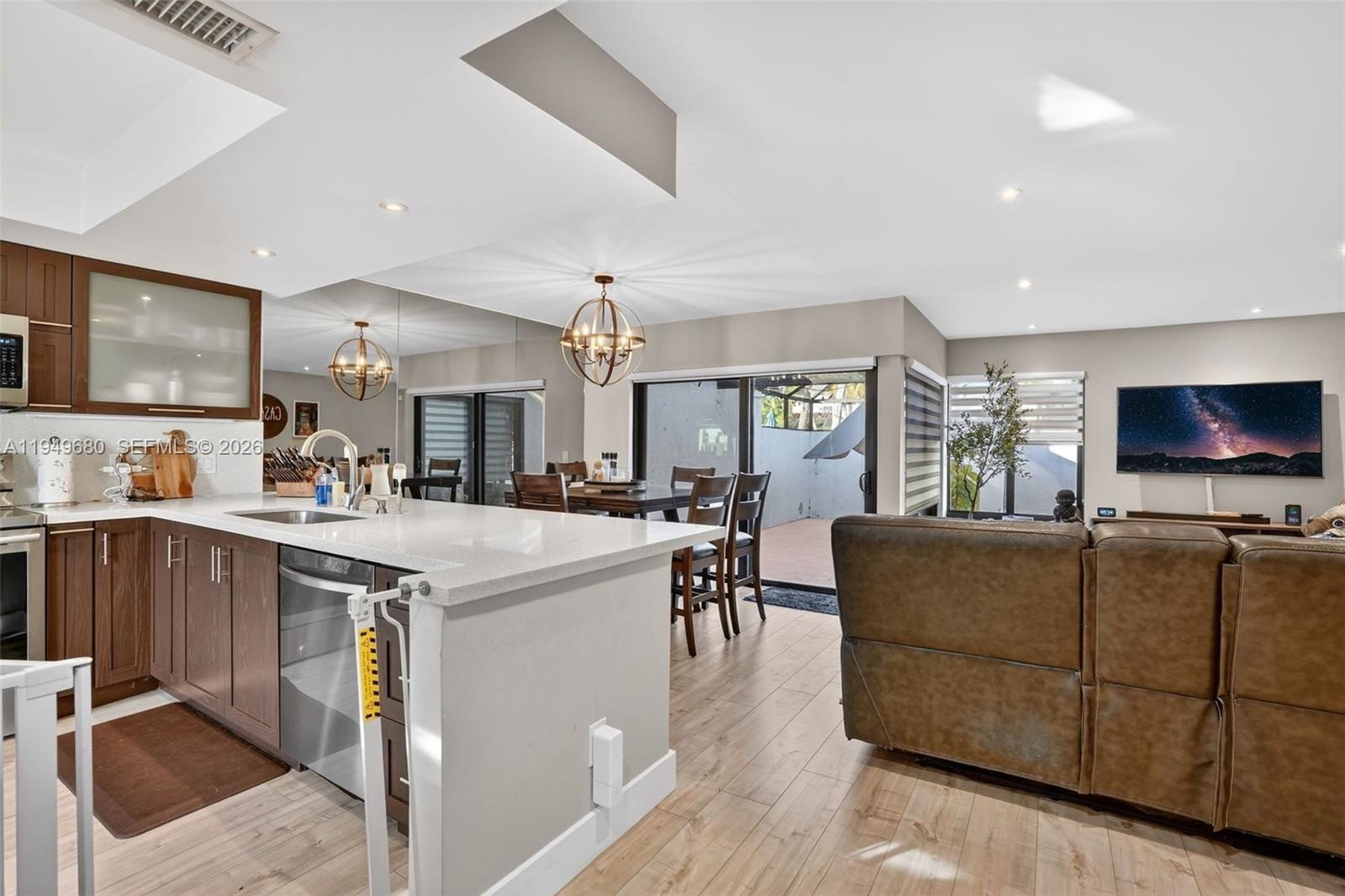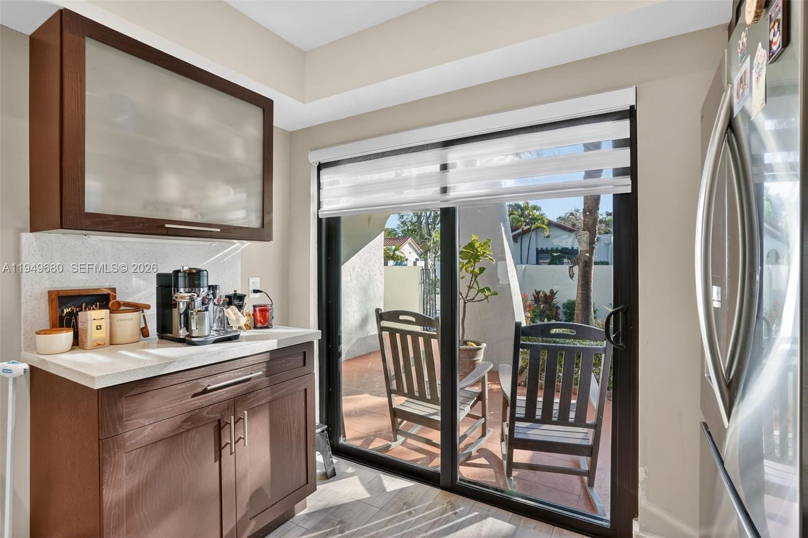Beautifully remodeled 2-bedroom, 2-bath villa located in the highly desired Crossings neighborhood. This open-concept home features vinyl flooring throughout, a stunning modern kitchen with stainless steel appliances, and hurricane-impact windows. Major components offer peace of mind with a 2021 roof and 2020 A/C. Low association fee! The enclosed patio expands the living area and is perfect for entertaining or enjoying year-round outdoor living. Centrally located near expressways, shopping, dining, and top schools.