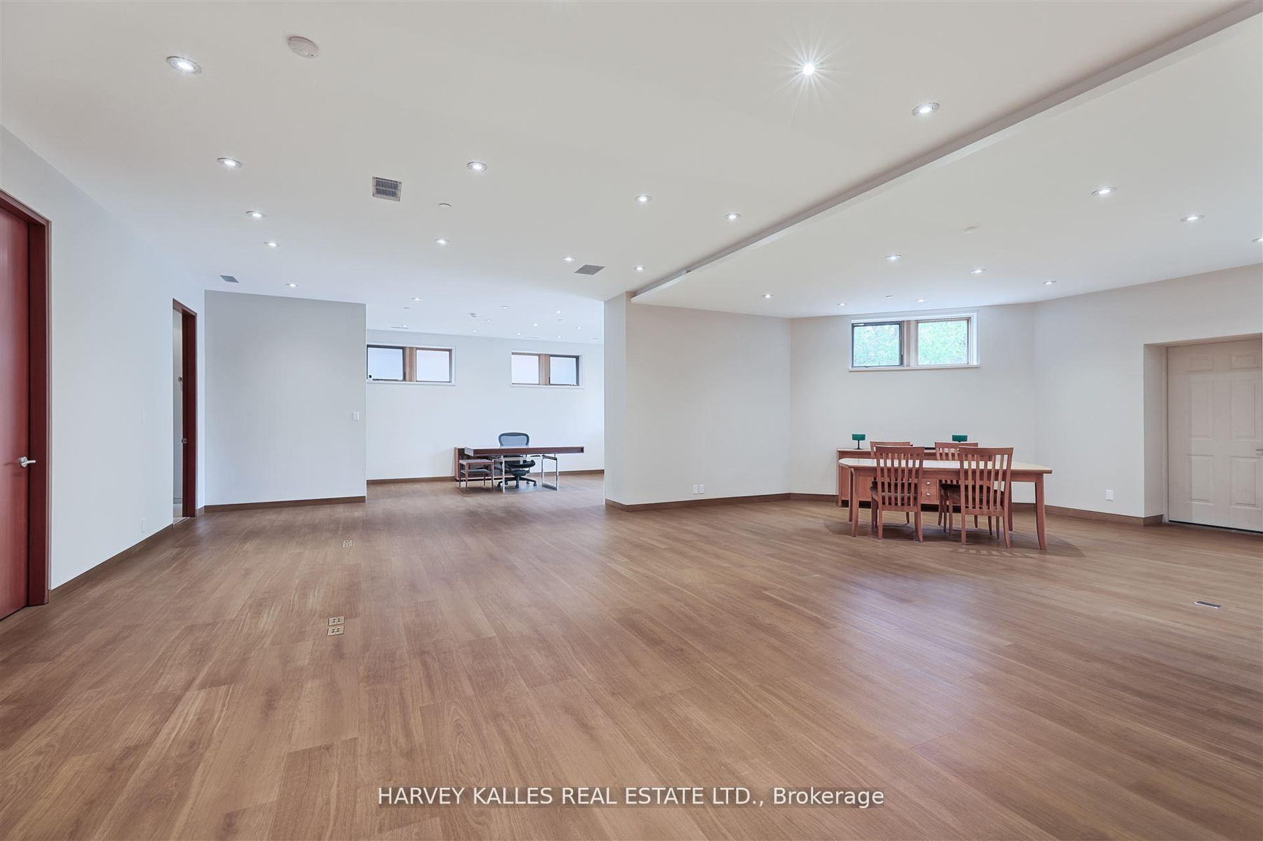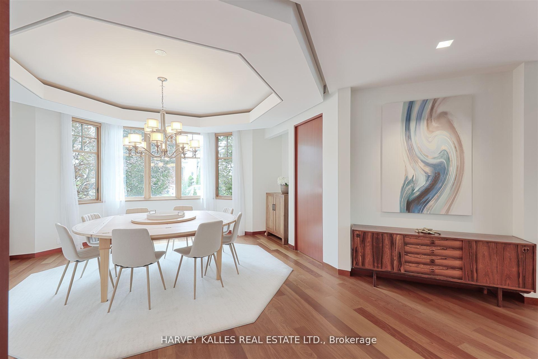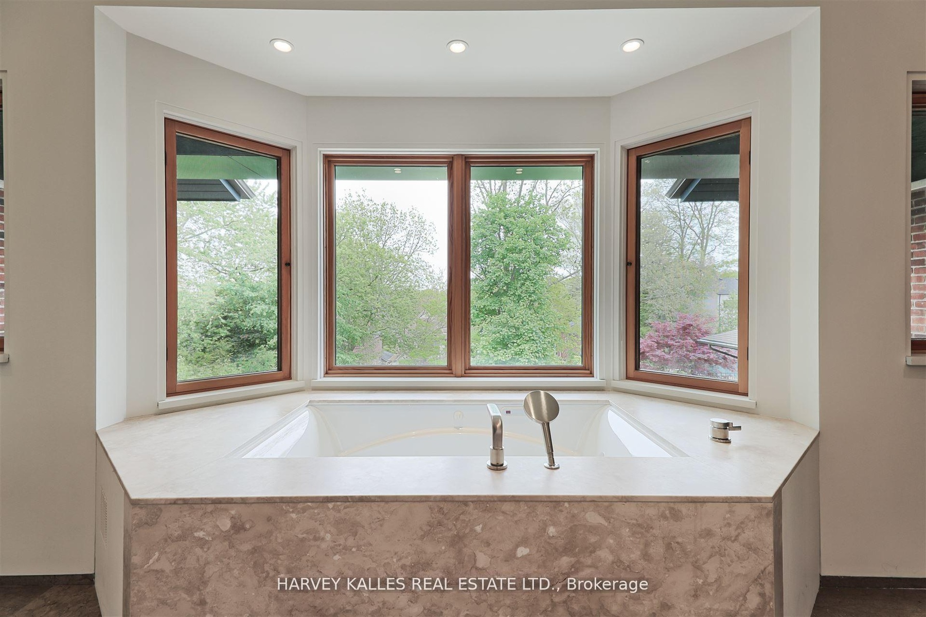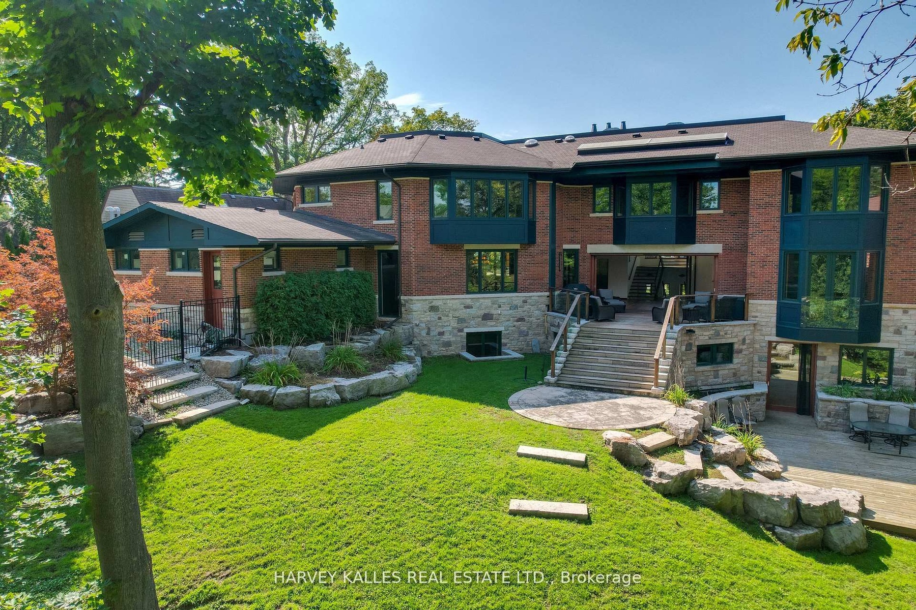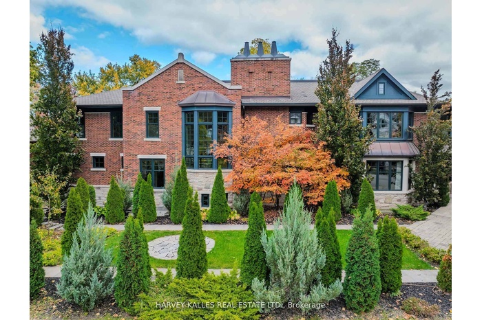 Discover a gem, custom-built as a multi-generational home, offering over 11,000 sq ft of luxurious living space on a rare 125ft double lot at the edge of the Humber Valley in the tree-lined Kingsway neighbourhood. This residence is a statement of contemporary elegance and sophistication, perfect for the discerning family.Inside, experience clean lines and exquisite details that enhance comfortable luxury living, including sound-isolated suites, Jatoba hardwood floors, stunning Persian serpentinite kitchen countertops, and heated stone floors for ultimate comfort.Accessibility is a key feature, with snow melt for the front porch, steps, ramp and driveway, a commercial 4x6 ft elevator, and 4 ft wide hallways to ensure effortless movement throughout the residence.The ground floor features a bright, open-plan living area that seamlessly integrates the chefs kitchen, dining, and living spaces, extending to a partially covered upper deck with a 17ft wide opening. A heated 3-car garage is cleverly positioned at the side of the house.The primary retreat is where luxury meets tranquility, featuring two generous walk-in closets and two ensuites one complete with a massage room and whirlpool tub offering tree-top views. Two additional spacious bedrooms, each with walk-in closets, share a thoughtfully designed bathroom suite with dual sinks, ample storage, and a separate area for added privacy. The oversized fourth bedroom also includes its own ensuite bathroom and walk-in closet, providing comfort and convenience for family or guests.The ground floor bedroom suite with a Juliet balcony offers a perfect retreat for guests.Venture to the finished lower level, where 10+ ft ceilings create a light and airy ambiance.This expansive space features a wide sliding door leading to the lower deck, ideal for entertaining.With multiple entertainment areas, including a stepped home theatre and sprawling park-like backyard, this home is designed for those who appreciate spacious comfort.