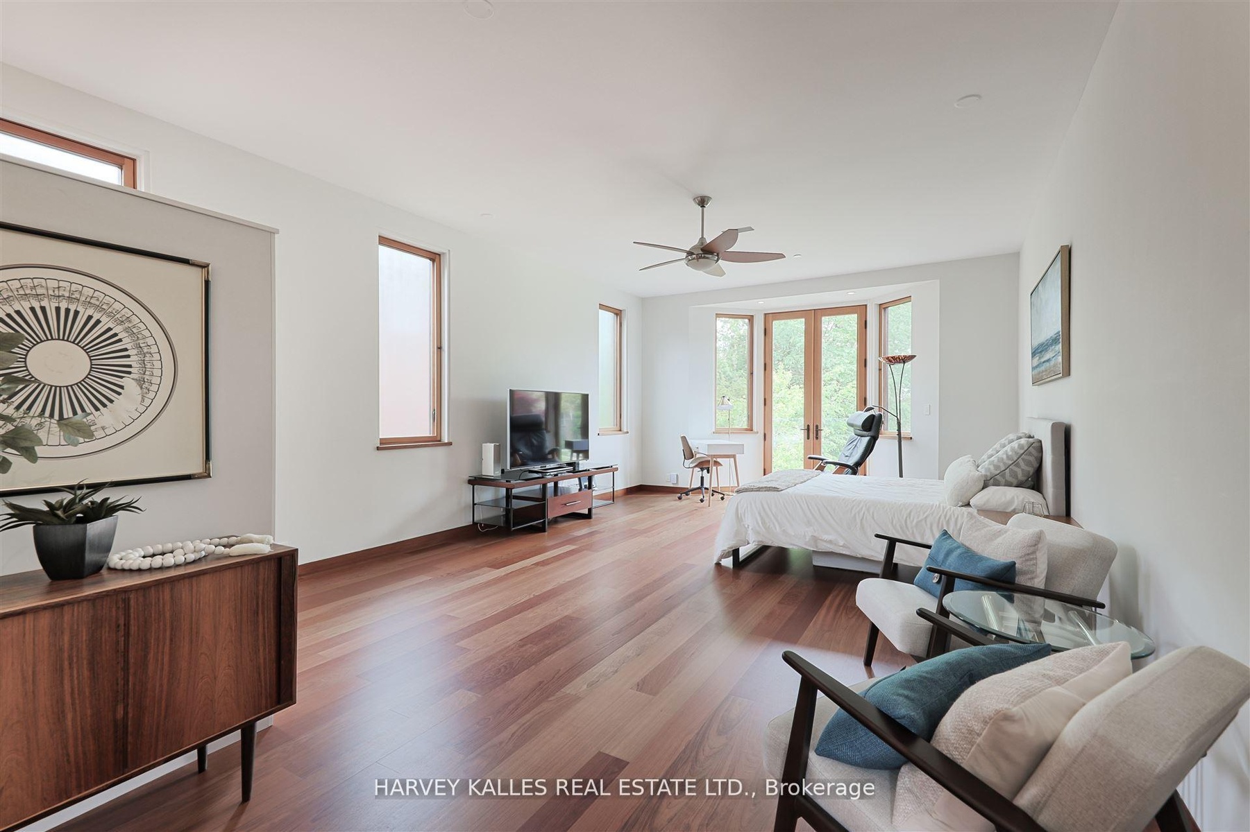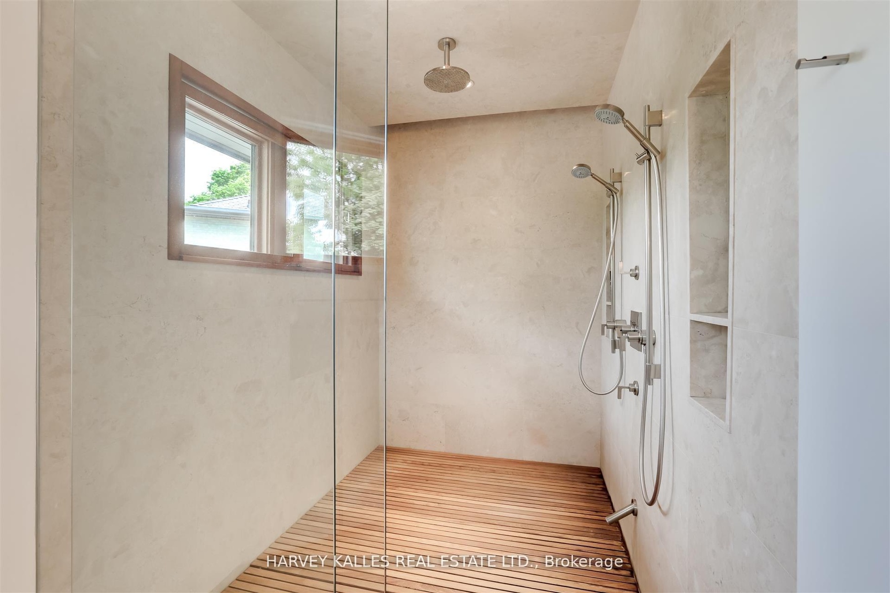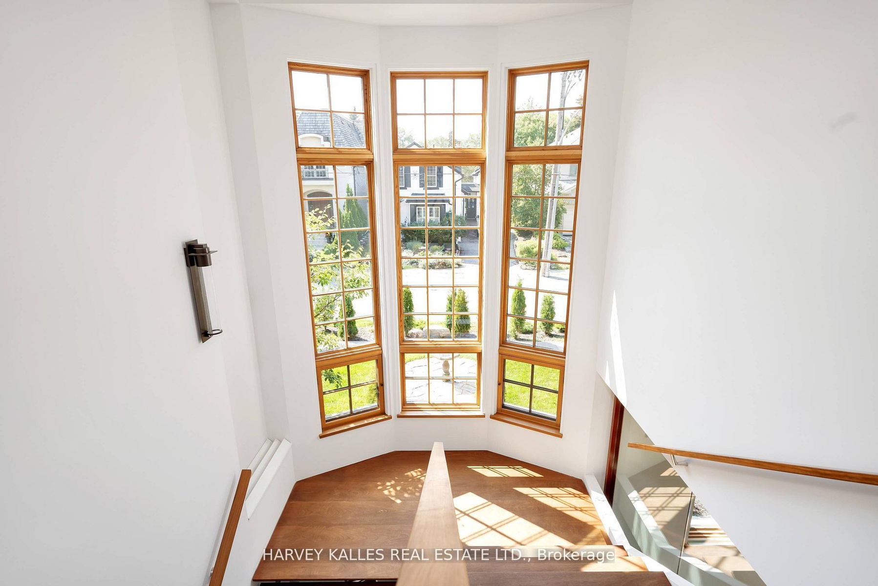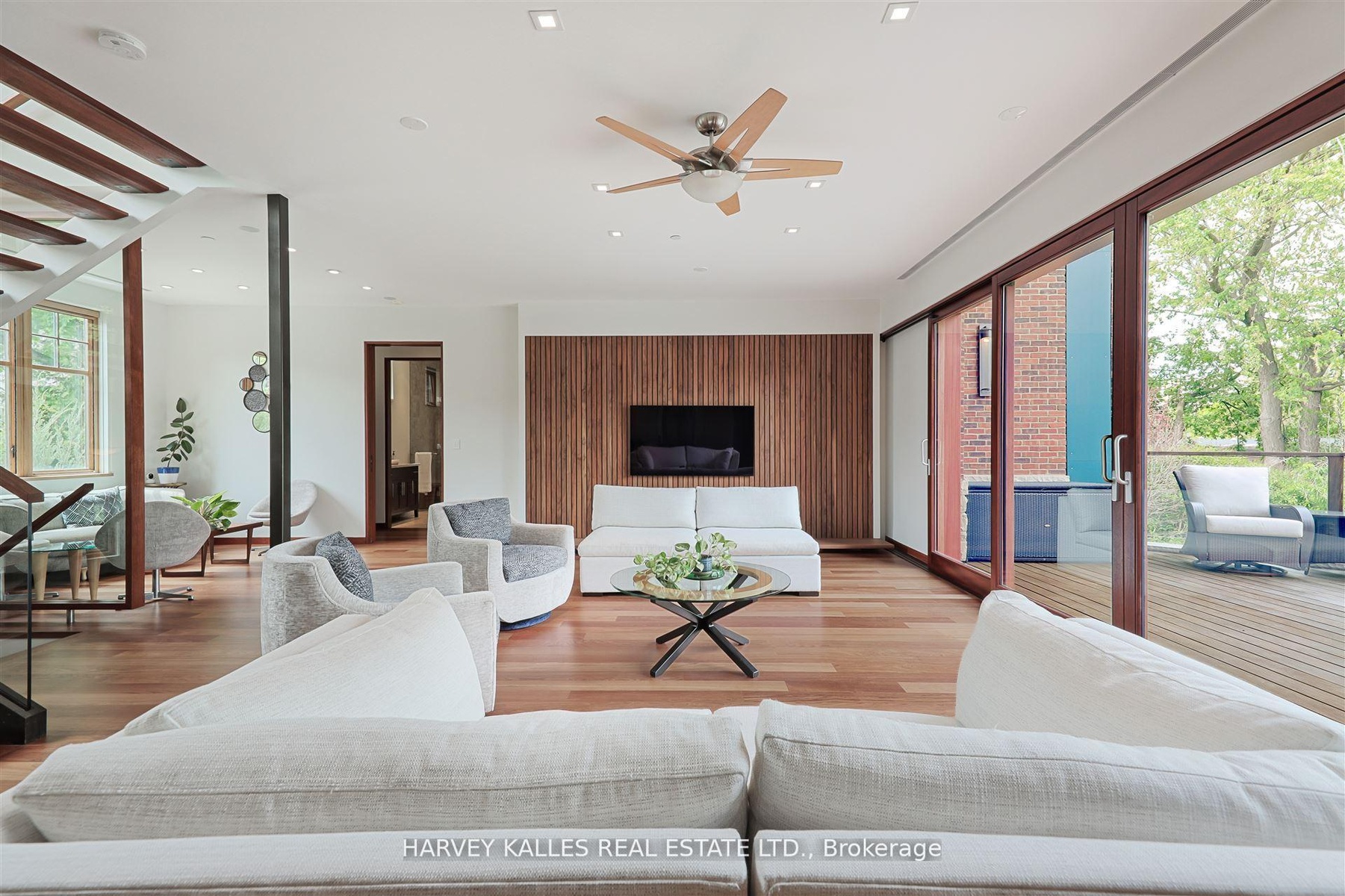 Discover a gem, custom-built as a multi-generational home, offering over 11,000 sq ft of luxurious living space on a rare 125ft double lot at the edge of the Humber Valley in the tree-lined Kingsway neighbourhood. This residence is a statement of contemporary elegance and sophistication, perfect for the discerning family.Inside, experience clean lines and exquisite details that enhance comfortable luxury living, including sound-isolated suites, Jatoba hardwood floors, stunning Persian serpentinite kitchen countertops, and heated stone floors for ultimate comfort.Accessibility is a key feature, with snow melt for the front porch, steps, ramp and driveway, a commercial 4x6 ft elevator, and 4 ft wide hallways to ensure effortless movement throughout the residence.The ground floor features a bright, open-plan living area that seamlessly integrates the chefs kitchen, dining, and living spaces, extending to a partially covered upper deck with a 17ft wide opening. A heated 3-car garage is cleverly positioned at the side of the house.The primary retreat is where luxury meets tranquility, featuring two generous walk-in closets and two ensuites one complete with a massage room and whirlpool tub offering tree-top views. Two additional spacious bedrooms, each with walk-in closets, share a thoughtfully designed bathroom suite with dual sinks, ample storage, and a separate area for added privacy. The oversized fourth bedroom also includes its own ensuite bathroom and walk-in closet, providing comfort and convenience for family or guests.The ground floor bedroom suite with a Juliet balcony offers a perfect retreat for guests.Venture to the finished lower level, where 10+ ft ceilings create a light and airy ambiance.This expansive space features a wide sliding door leading to the lower deck, ideal for entertaining.With multiple entertainment areas, including a stepped home theatre and sprawling park-like backyard, this home is designed for those who appreciate spacious comfort.