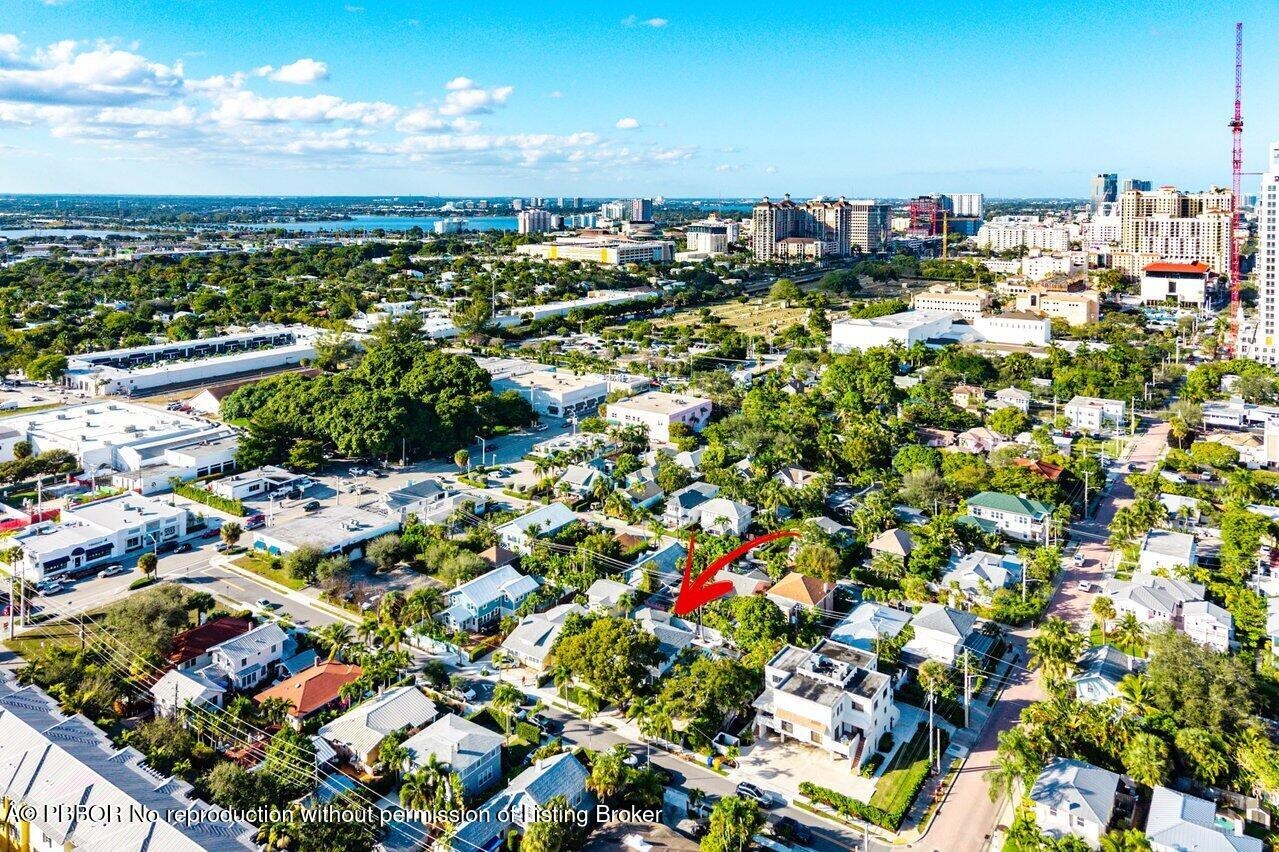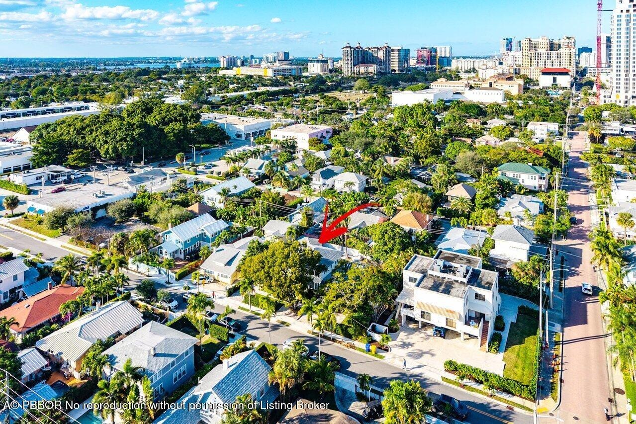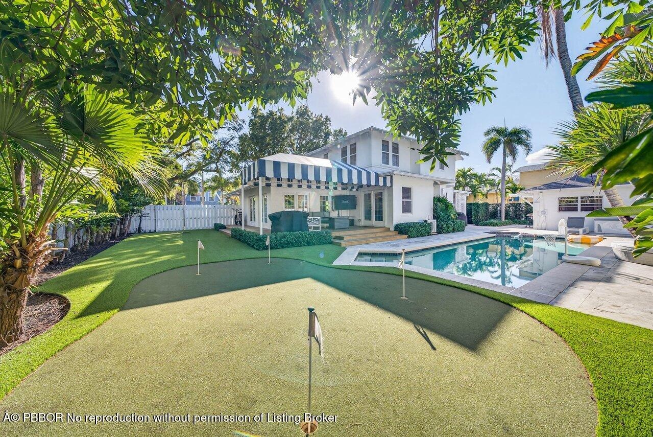 Premium location on an oversized lot of over 10,000 sq ft. Just one block from the waterfront and minutes from downtown, this exceptional property offers a rare blend of space and privacy in one of the city's most desirable neighborhoods. Surrounded by lush tropical landscaping, the home feels tranquil and secluded while remaining moments from everything West Palm Beach and Palm Beach Island have to offer. The main home features 5 bedrooms and 2.5 bathrooms, with a flexible layout allowing for a primary bedroom on the main level. A detached 1 bed/1 bath guest cottage adds versatility for guests, extended family, or a private workspace. The expansive outdoor space offers a heated pool, hot tub, putting green, covered patio, and ample room for both entertaining and everyday enjoyment. With walkable access to dining, arts, and shopping, plus close proximity to beaches, Palm Beach International Airport, the Brightline, and I-95, this property delivers an exceptional lifestyle defined by location, space, and flexibility.