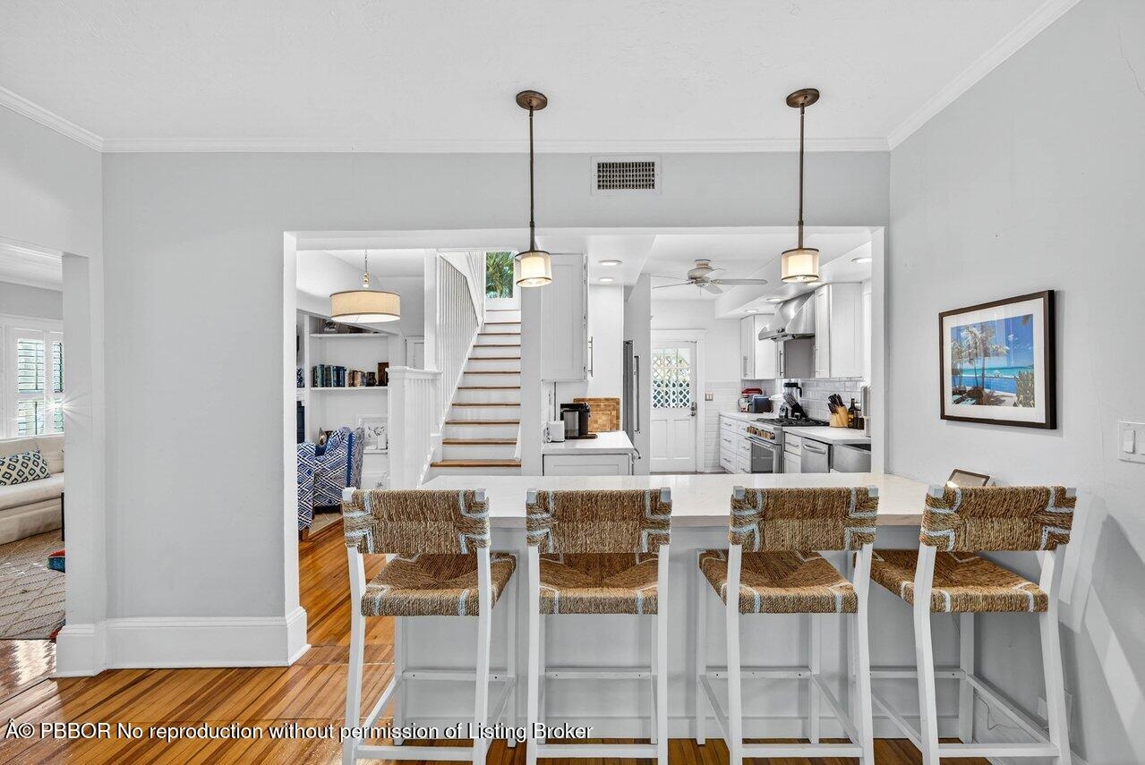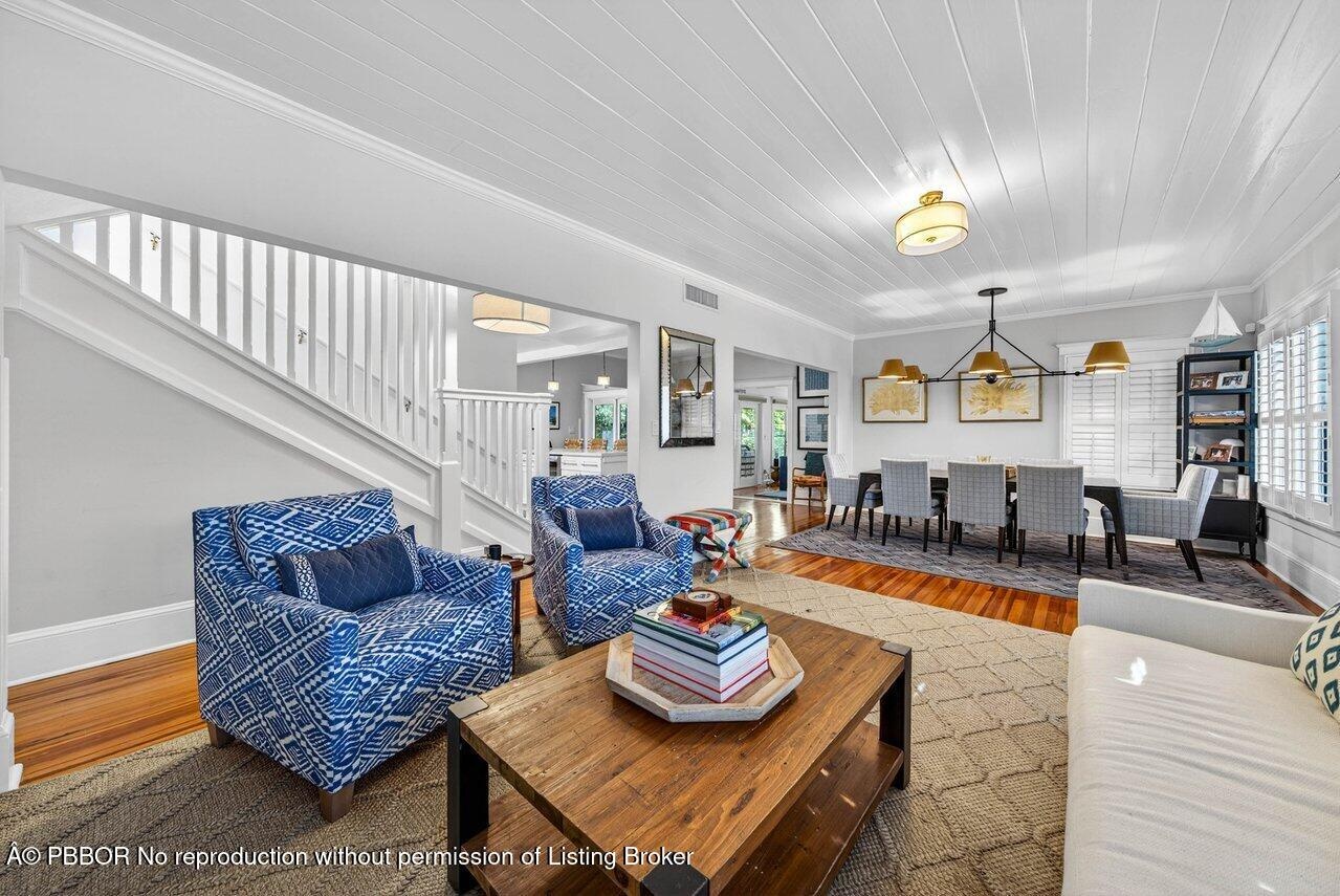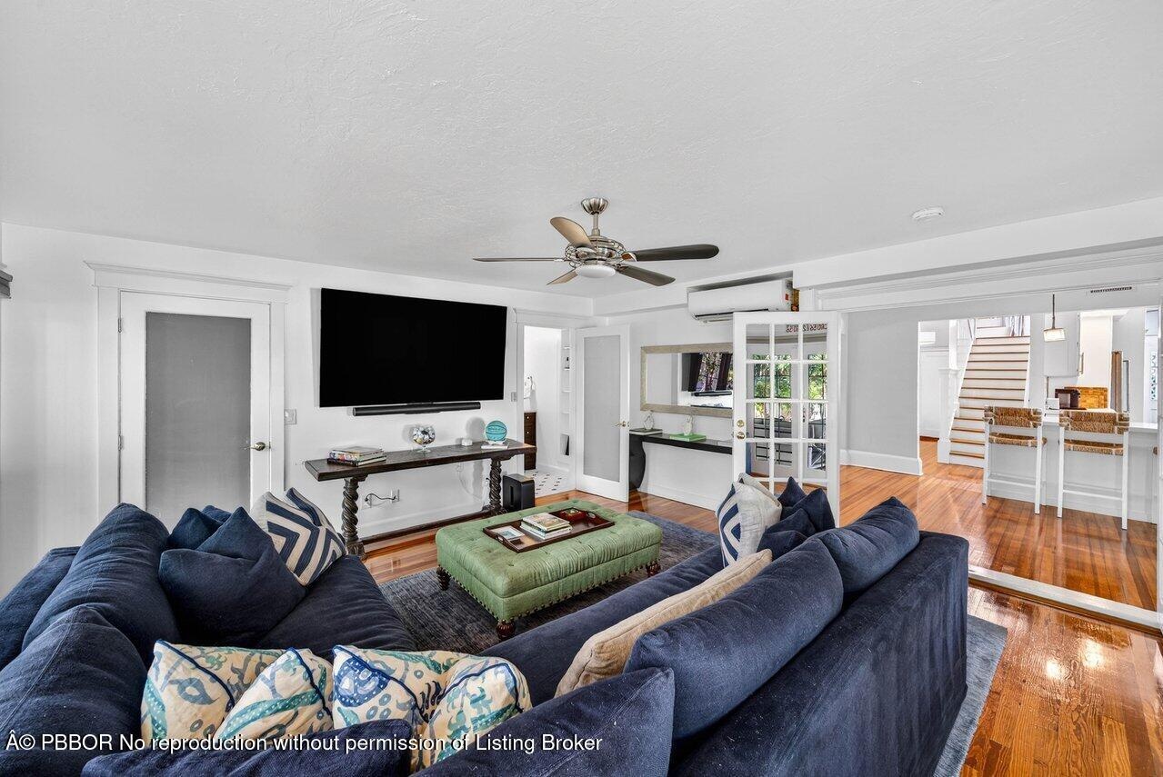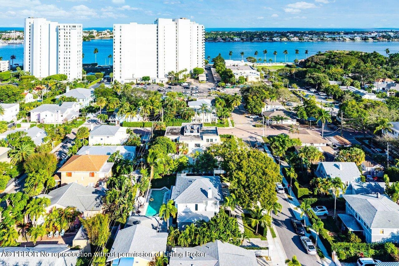 Premium location on an oversized lot of over 10,000 sq ft. Just one block from the waterfront and minutes from downtown, this exceptional property offers a rare blend of space and privacy in one of the city's most desirable neighborhoods. Surrounded by lush tropical landscaping, the home feels tranquil and secluded while remaining moments from everything West Palm Beach and Palm Beach Island have to offer. The main home features 5 bedrooms and 2.5 bathrooms, with a flexible layout allowing for a primary bedroom on the main level. A detached 1 bed/1 bath guest cottage adds versatility for guests, extended family, or a private workspace. The expansive outdoor space offers a heated pool, hot tub, putting green, covered patio, and ample room for both entertaining and everyday enjoyment. With walkable access to dining, arts, and shopping, plus close proximity to beaches, Palm Beach International Airport, the Brightline, and I-95, this property delivers an exceptional lifestyle defined by location, space, and flexibility.