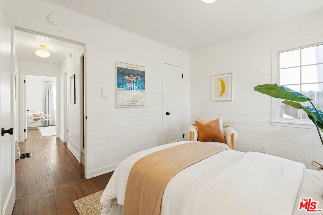 Located on a quiet cul de sac in Sunset Park, one of Santa Monica's most sought after neighborhoods, this two bedroom, two bathroom home also features a bright, sunny bonus room upstairs, offering timeless character and everyday comfort with room to expand in the future, set on an exceptionally generous and beautifully usable lot. The property remained with its original owners for decades until it was purchased by the current owners in 2020, who invested in both preserving its charm through kitchen and bathroom updates and completing meaningful behind the scenes improvements to major systems including sewer, electrical and plumbing. Original details that give the home its warmth and personality include wood paneling, a decorative fireplace, built in banquette seating and classic kitchen cabinetry that has been refreshed to complement the home's style, creating a welcoming and authentic atmosphere. The kitchen and bathrooms feature updated fixtures, finishes and quality appliances, offering functional and attractive spaces for daily living and entertaining, while interior updates including new hardware, closet doors and fresh finishes contribute to a comfortable, move in ready feel while maintaining the home's original character. The expansive outdoor spaces are a true highlight, offering multiple areas for entertaining, play, gardening or future expansion, with a welcoming front porch, mature fruit trees including orange, black mission fig and Hass avocado and open yard areas that create a private, peaceful setting rarely found in this location. For those considering long term possibilities, surveys, soils reports and conceptual architectural drawings are available as reference materials, offering a starting point for exploring future options while enjoying the home as it is today, and with its desirable Sunset Park location, safe cul de sac setting, classic details, exceptional lot and flexible layout, this property offers the opportunity to enjoy a well cared for home now with the option to grow over time.