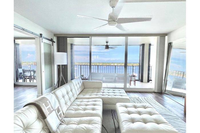 Welcome to luxury waterfront living in this beautiful 3-bedroom, 2.5-bath condo. Enjoy breathtaking panoramic views of the ocean, marina, and Intracoastal Waterway—with water views from every room in the condo. This residence has been completely updated, tastefully decorated, and is fully furnished, offering a turnkey rental experience. Step out onto the expansive 50-foot private balcony, the perfect place to take in spectacular sunrises and unforgettable sunsets while watching boats glide by. Resort-style amenities include a waterfront heated pool, fitness center, spa/sauna, clubhouse, Belle's Bar & Grill, marina, 2-mile waterfront walking path, and 24/7 gated security and underground parking garage. Luxury waterfront living at its best.
