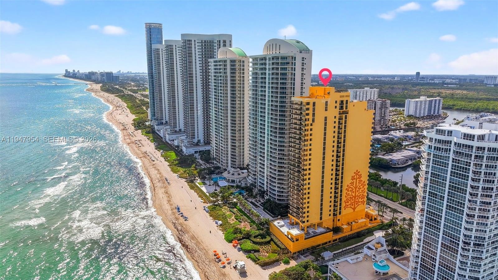 Sayan offers five-star amenities, including a private beach club with towel and food service, direct ocean access, a pool, and a jacuzzi. Residents have access to a fitness center, sauna, steam rooms, and 24-hour concierge and valet services. This unit includes two assigned valet parking spaces. The building is located near Bal Harbour Shops and Aventura Mall.