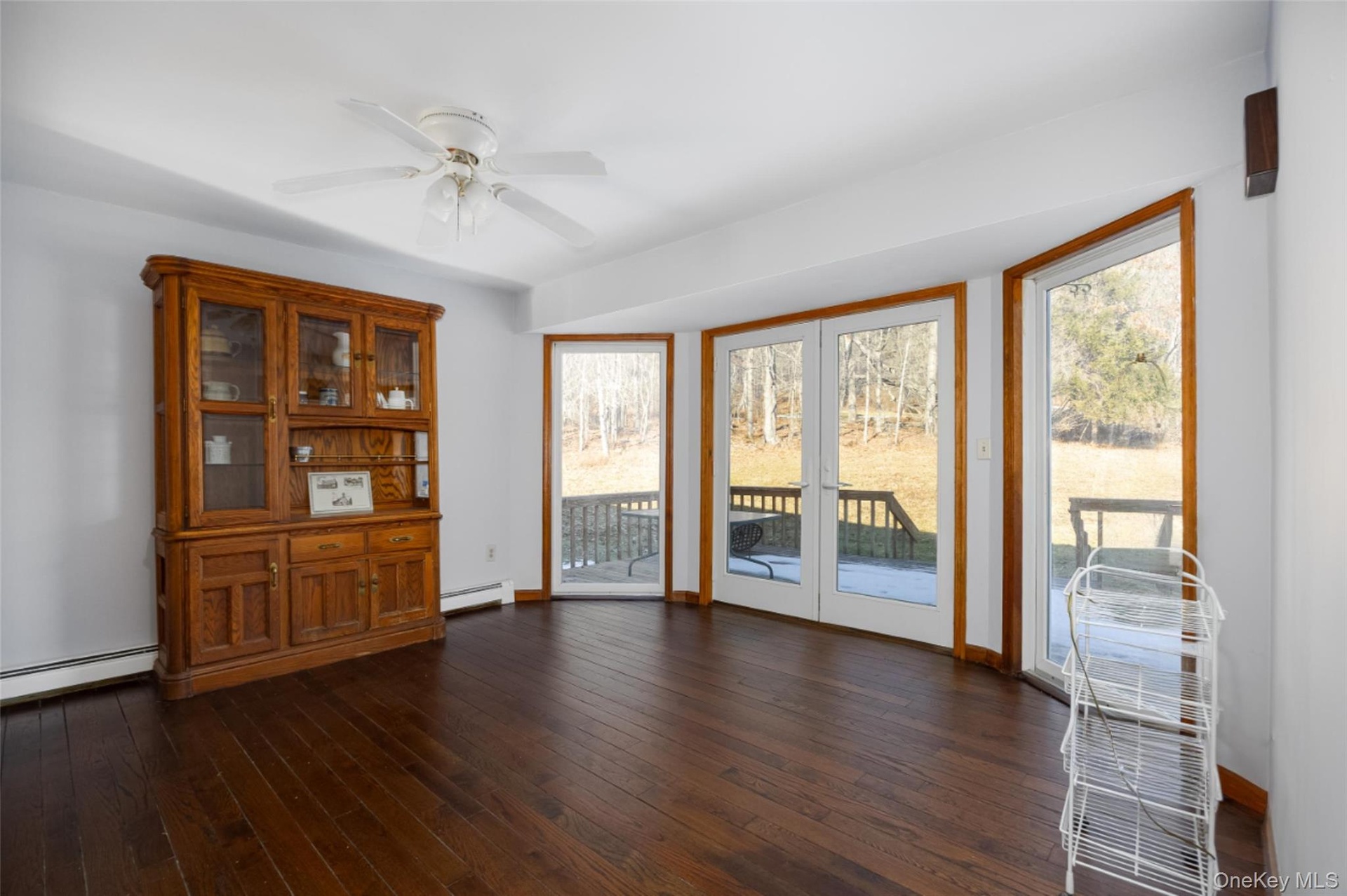 The main level has a great flow, starting with a spacious bedroom and ensuite bath, a large open eat-in kitchen with ceramic floors, brand-new stainless steel appliances, and lots of cabinet space. You’ll also find hardwood floors throughout, a sun-filled living room with a wood burning fireplace, an expansive family room warmed by a wood stove, and a formal dining room highlighted by oversized windows and new French doors opening to the deck. A convenient half bath, laundry/mudroom with new washer & dryer, and interior access to the two-car garage round out the first floor—and that’s just the beginning.