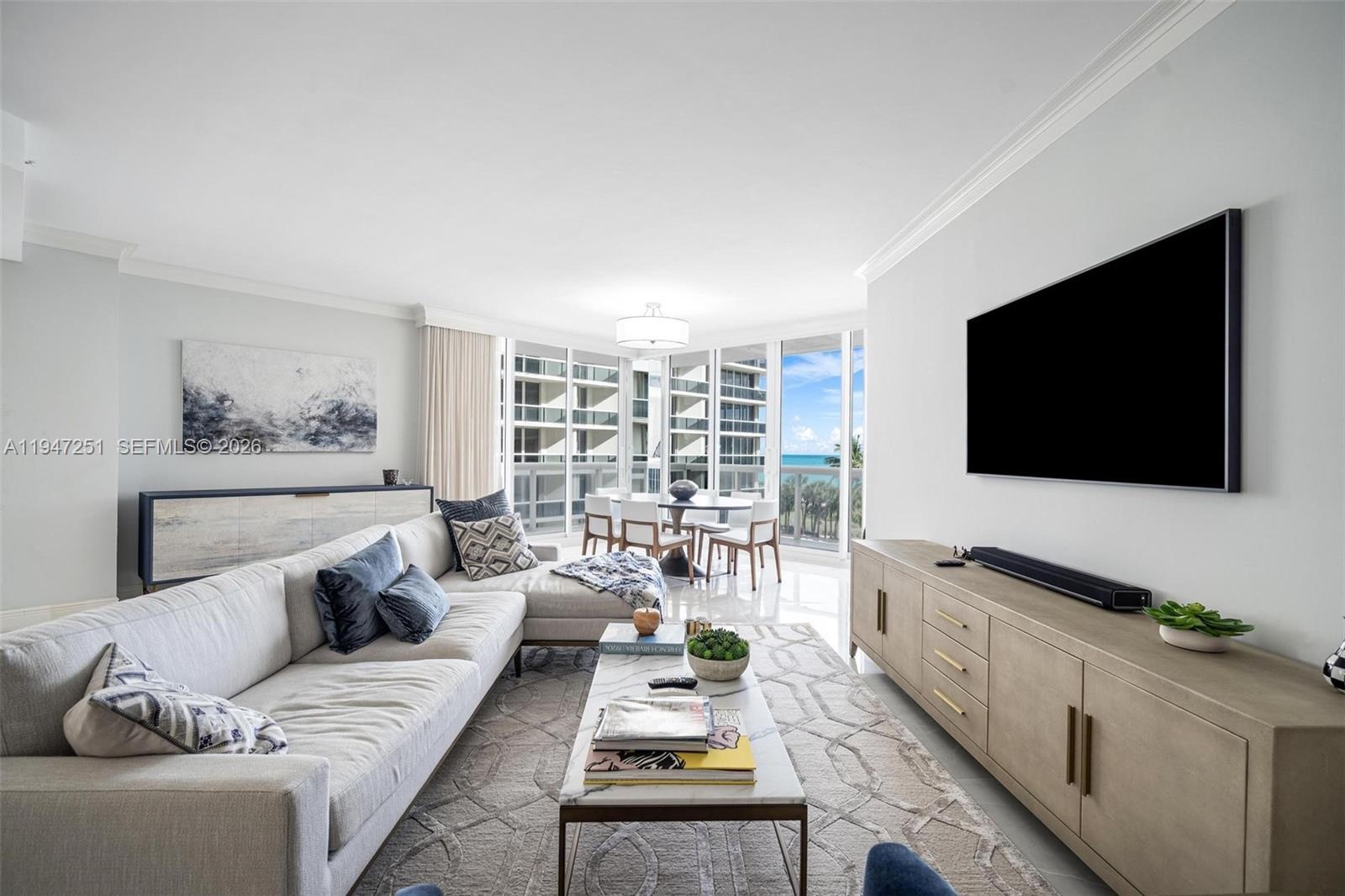 Spanning over 2,200 square feet, the unit has been fully renovated and features an open-concept layout with floor-to-ceiling windows and a deep, wrap-around balcony that captures direct views of the ocean and the pool deck. Built in 2002, the spacious and well designed home features a European kitchen with an Island designed by Leicht and equipped with Liebner and Bosh appliances, including a wine cooler. The Unit is equipped with Hurricane impact windows offering superior storm protection, enhanced security and exceptional sound insulation with no shutters required. The residence is accessible via a private elevator foyer including a separate service entry. Solimar is a full-service building, residents have access to well-maintained amenities including a heated pool, all inclusive beach service, a fitness center, and valet parking. Ideally located just minutes from Bal Harbour Shops and Boutiques, cafes and restaurants of Harding Avenue and in close proximity to the houses of worship, the residence offers a perfect balance of luxury and everyday convenience making it well suited for full time or seasonal living with a premier oceanfront address. Unique opportunity not to be missed for a discerning buyer.
