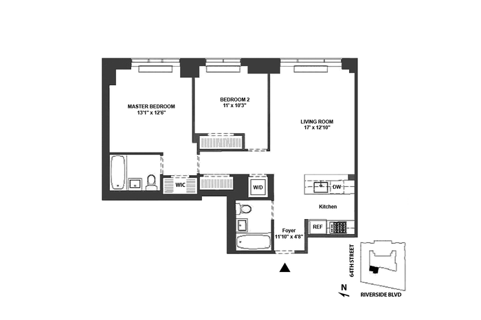 80 Riverside Blvd Unit 7A - High-Ceiling, Exceptionally Quiet 2BR with Private Storage at The Rushmore