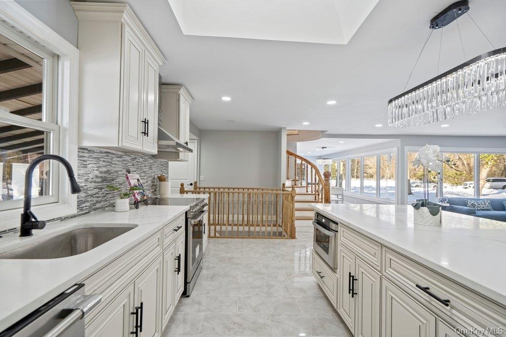 A Grand and Timeless High Ranch in the Heart of Cold Spring Harbor; Cold Spring Harbor School District. This Spectacular Totally Renovated House, Blends Classic Elegance with Modern Comfort. This Entertainer's Dream Home is Set on an Expansive Over 1.75 Acre Lot, Offering Privacy, Serenity and Plenty of Room to Entertain and Relax. First Floor, Featuring Grand Entry Foyer, Sun lit Living Room/Den with Fireplace, Formal Dining Room, Magnificent Chef Eat In Kitchen With Expansive Island and High End Stainless Steel Appliances, Butler Pantry, spacious Junior Suite With Ensuite Elegant Bathroom and Walk in Closet, 2 additional Bedrooms with Closets, Beautiful Guest Powder Room. The Second Floor is dedicated to a Magnificent Primary Suite, and a Beautiful Balcony overlooking the Front yard, Luxurious Ensuite Primary Bathroom. Full Basement with Potential to Make this Enormous Space Dream Come True For Entertainment, Gym, Play Room. Escape onto your own Park like property with Poolside Paradise and Backyard Oasis. This Incredible Home Offers an Unparalleled Living Experience Indoor and Outdoor With, It's Elegant and Entertainer's Friendly Design. Centrally Located, This Residence Is close to Historic Cold Spring Harbor and Huntington Village Which both offer a Myriad of Restaurants, Shopping, parks, Beaches, Golf and Boating Options (Eagle Rock Beach and Mooring Rights; w Fees)