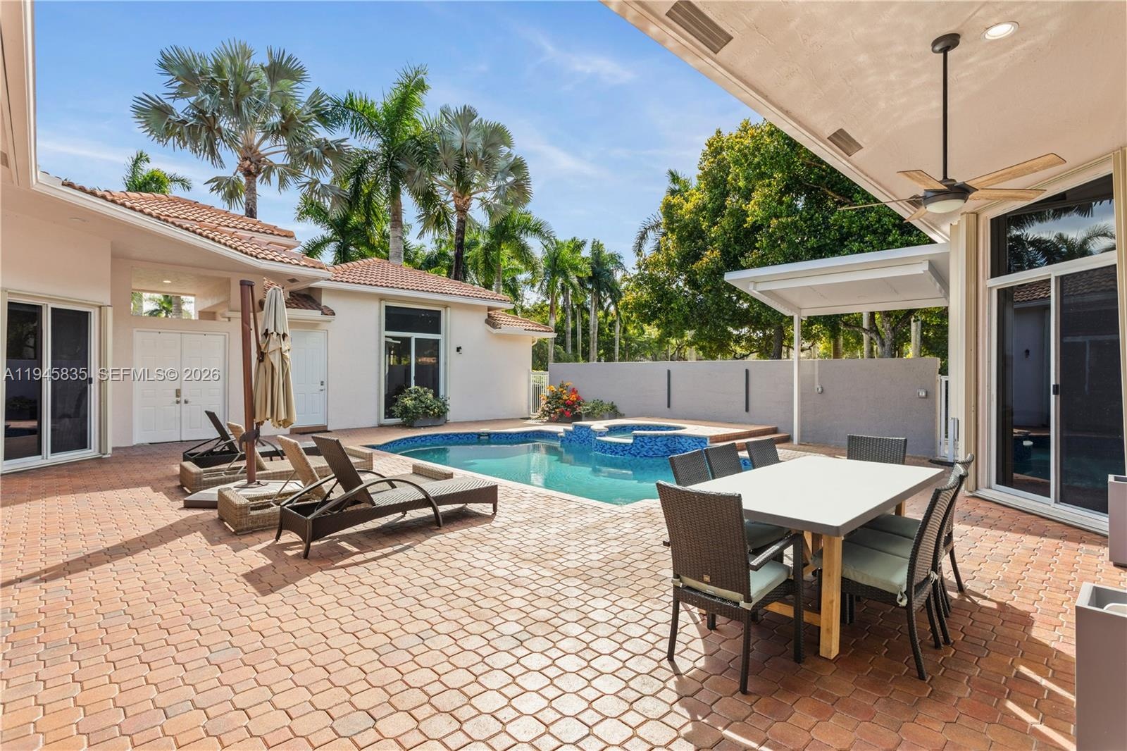 TOTALLY RENOVATED! Stunning one-story 5-bedroom residence, including a private guest quarter with kitchen, located in the prestigious Weston Hills Country Club. This exclusive gated community offers 24-hour security and features two championship 18-hole golf courses. Situated on a spacious corner lot, just STEPS FROM THE COMMUNITY PARK and conveniently located near school bus stops. IMPECCABLY MAINTAINED and MOVE-IN READY, the home showcases a spectacular modern kitchen and bathrooms, with extensive custom cabinetry, and several upgrades throughout. The open floor plan offers soaring ceilings, oversized windows, and lots of natural light. Solar panels offer significant energy savings. Located in a highly sought-after A-rated school district. A RARE FIND IN WESTON!