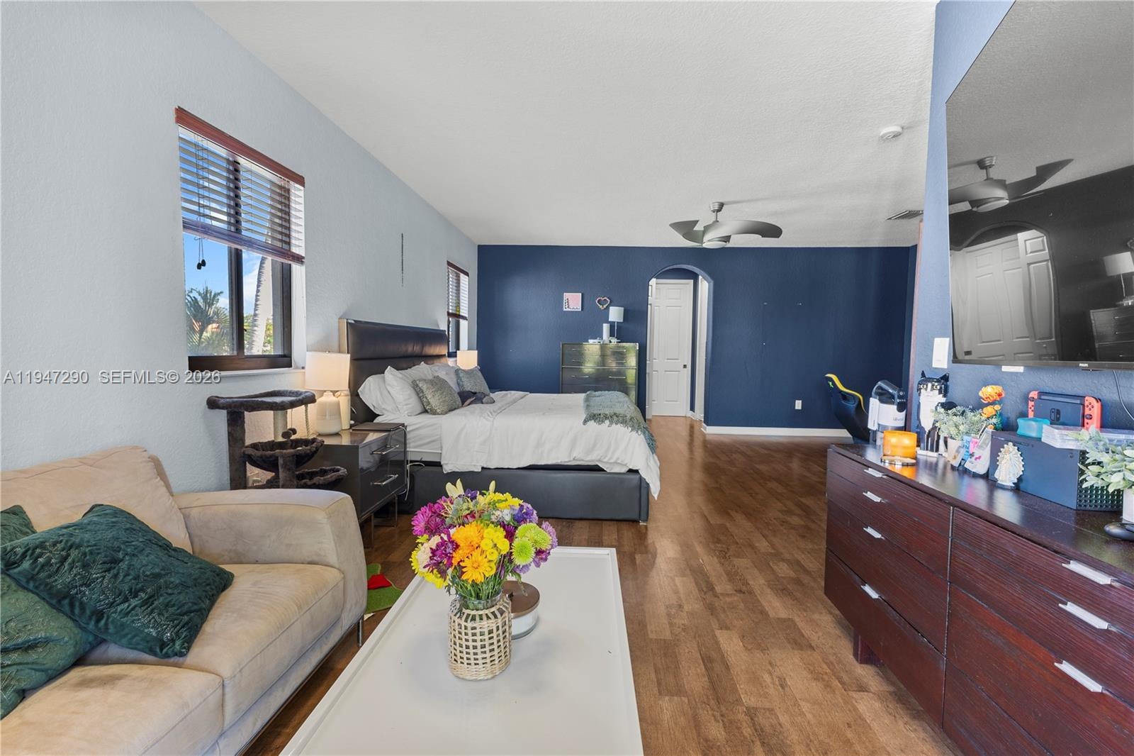 Exceptional lakefront living defines this elegant 5-bedroom, 4.5-bath pool home, nestled within the prestigious guard-gated community of Cutler Cay. Located on a quiet cul-de-sac and set on an expansive 12,561-square-foot lot, the residence offers breathtaking lake views, soaring ceilings, and a seamless open-concept layout ideal for both everyday living and entertaining.