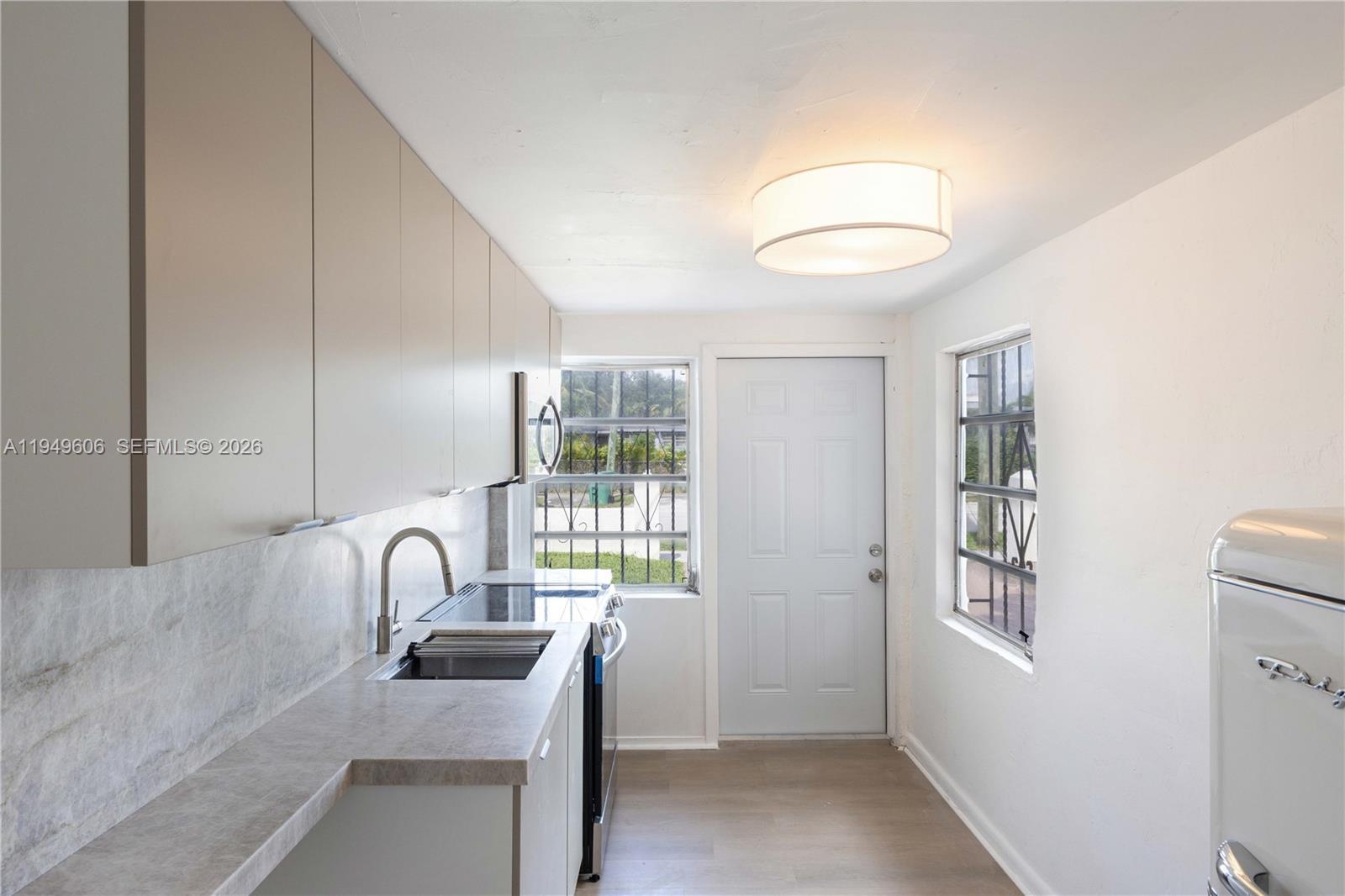 Well-located duplex offering flexibility and income potential, conveniently situated near I-95 for easy access throughout the city. The property features two separate units: a rented 2-bedroom/1-bath residence in the rear and a vacant 1-bedroom/1-bath unit in the front that has been fully remodeled. The front unit showcases wood-look vinyl flooring throughout, a contemporary kitchen with modern cabinetry and Taj Mahal countertops, new appliances, and a beautifully updated bathroom finished in stylish microcement for a spa-like feel. The renovation has never been lived in, providing a turnkey opportunity for an owner-occupant or tenant. Ideal for investors seeking rental income, owner-occupants looking to offset expenses, or buyers planning to lease both units. Strong layout, recent upgrades, and a convenient location make this property a compelling opportunity.