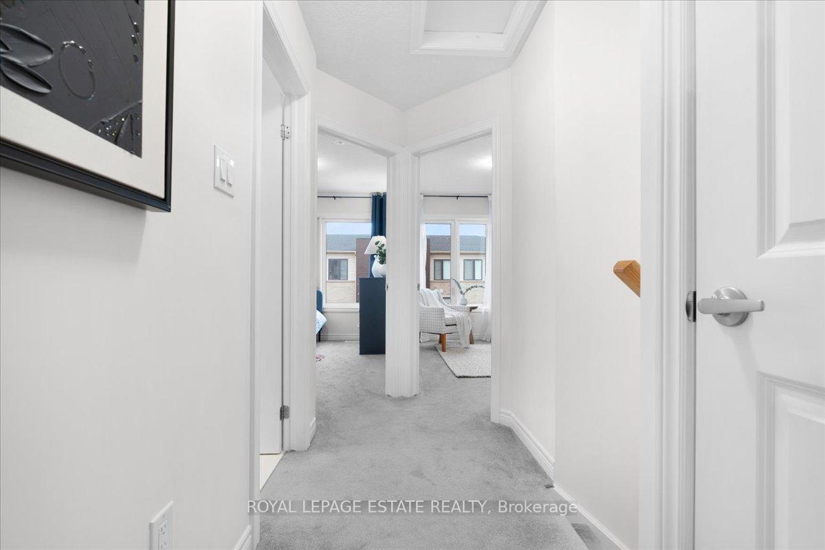 Welcome to this beautiful 3-bedroom, 2-bathroom townhome, built in 2023, and featuring over 1200 Sq ft. of contemporary living space. Located in the vibrant McQuesten West neighbourhood, this home is perfect for those looking for a move-in-ready property that offers both style and convenience. From the moment you step inside, you'll be impressed by the open concept design with tons of natural light pouring through large windows on every floor. The recently updated backsplash and fresh paint provide a modern, airy feel, complemented by updated light fixtures that brighten every room. The Large primary bedroom is a retreat boasting his and hers private closets. The spacious second and third bedrooms offer plenty of room for family or guests. The ground level features a flexible space, perfect for a home office, den, or rec room, with a double-pane glass walkout leading to a new sod backyard ideal for outdoor entertaining or quiet relaxation. Keep your belongings organized with a large storage room tied into the garage. Convenience is key with direct garage access, complete with a remote-controlled and cellphone-compatible garage door, making your daily comings and goings a breeze. Quick access to the Red Hill Valley Parkway makes this location ideal for those who need to stay connected while enjoying a peaceful neighbourhood. Just steps away from Roxborough Park and minutes from Parkdale Park, you'll enjoy green space and outdoor activities year-round. Plus, the home is close to local amenities, public transit, and schools, ensuring you have everything you need within easy reach. This one-owner, meticulously maintained home is ready for its next chapter. Whether you're a first-time buyer, a growing family, or someone looking for a low- maintenance home with all the modern features, this townhome is sure to impress. Don't miss your chance to own this stunning property!