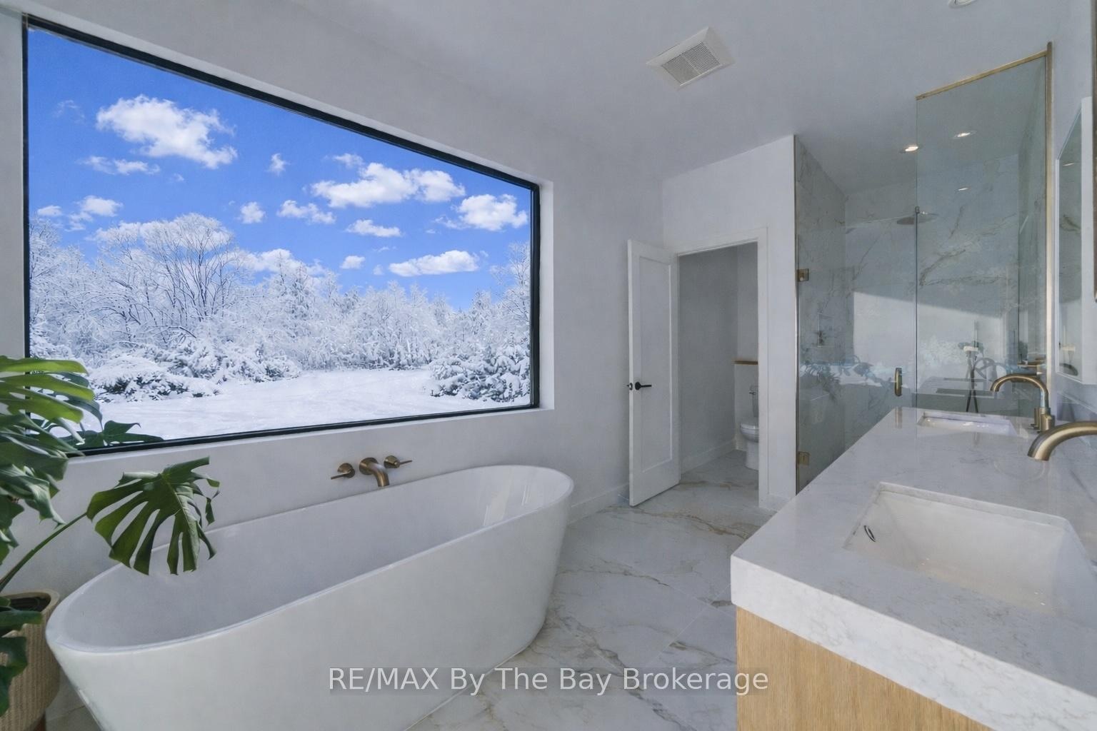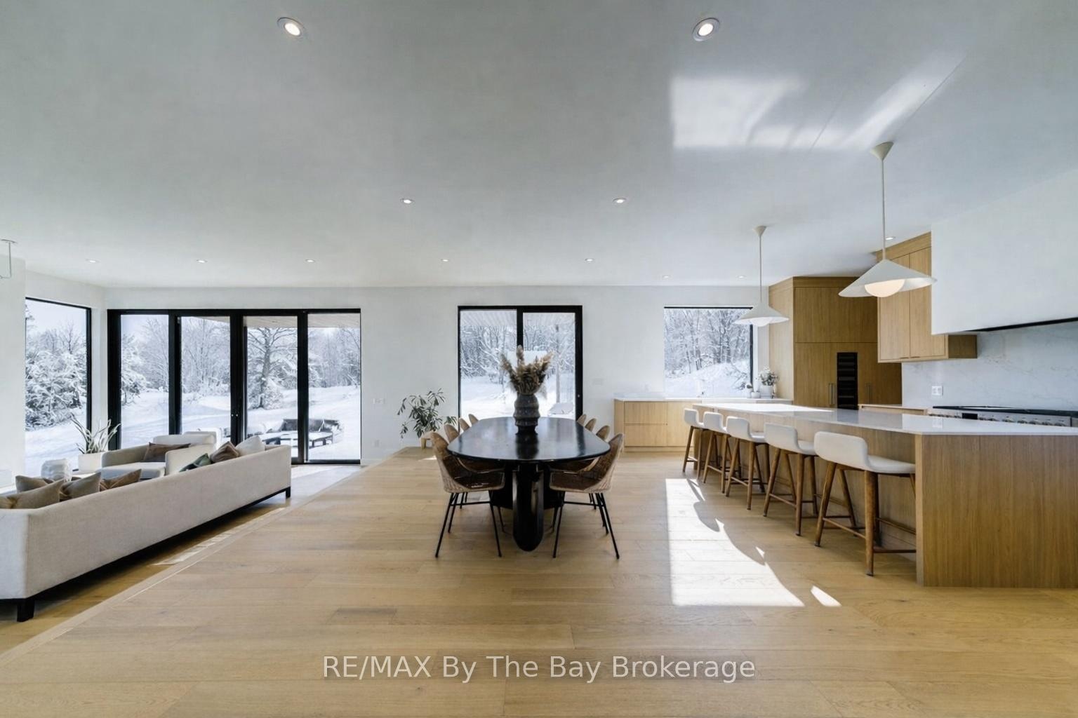 Experience elegance and timeless luxury in this stunning custom-built residence, situated in the prestigious WindRose Estates community. Set on a private 1.79-acre lot, this exceptional property offers 5,830 sq. ft. of meticulously designed living space, seamlessly blending sophistication, comfort, and functionality.The home's grand design showcases floor-to-ceiling windows and doors, flooding each room with natural light and offering serene views of the surrounding landscape. The custom chef's kitchen is a true showpiece-crafted with premium finishes, cabinetry, and top-end appliances perfect for both everyday living and entertaining on a grand scale. The open-concept main floor exudes an effortless flow, connecting elegant living and dining areas ideal for gatherings and quiet moments alike.With a total of nine bedrooms and six bathrooms, this home provides ample space for family and guests. The lower level is equally impressive, featuring a state-of-the-art fitness studio enclosed by a floor-to-ceiling glass wall and a spacious recreation or games room for leisure and entertainment. An exceptional feature of this property is the completely self-contained 1,100 sq. ft. apartment, offering two bedrooms, 1.5 bathrooms, a full kitchen, Private covered deck and a separate entrance-perfect for extended family, guests, or luxury rental opportunities. The main 3 car garage provides abundant space for vehicles and equipment, with an additional 1 car garage for the apartment completing this rare offering. Located just minutes from Osler Bluff Ski Club, Blue Mountain Resort, Georgian Bay's crystal waters, and the historic charm of downtown Collingwood, this home is surrounded by endless opportunities for recreation and relaxation-golfing, cycling, boating, and hiking all within reach. Every detail of this exquisite estate reflects thoughtful design and exceptional craftsmanship, making it a truly distinguished residence in one of the region's most sought-after communities.