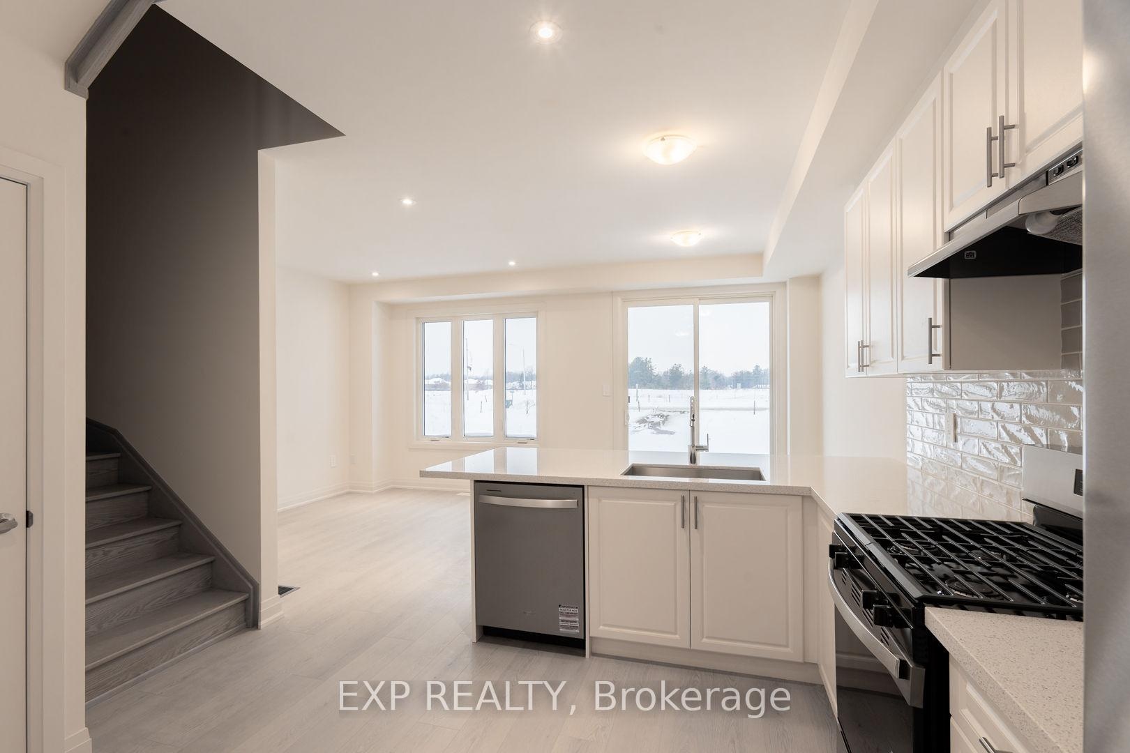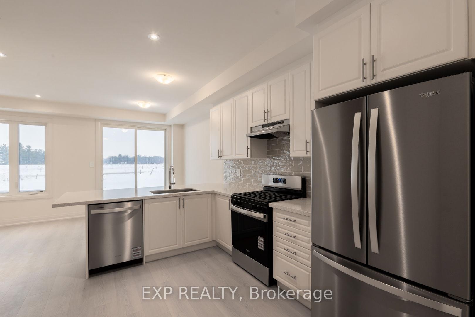 Welcome to this pristine, brand-new 3-bedroom, 3-bathroom townhouse in one of Barrie's most sought-after communities. The open-concept main floor features 9-foot ceilings, a generous dining area, and a bright great room designed for everyday living and effortless entertaining. The modern kitchen combines style and function with white maple cabinetry, a centre island with a breakfast bar, a sleek backsplash, stainless steel appliances, and a walkout to the backyard. Upstairs, enjoy sun-filled bedrooms, including a spacious primary suite with a 3-piece ensuite and large walk-in closet. Two additional bedrooms feature oversized windows and ample closet space, plus the convenience of second-floor laundry. Modern grey vinyl flooring flows throughout the home with no carpet anywhere. The full unfinished basement provides excellent storage or future potential. Two parking spaces, including the garage, with an interior access door to make daily life easy. Minutes to South Barrie GO Station, Costco, top-rated schools, shopping, parks, Lake Simcoe beaches, and quick access to Highway 400. A smart choice for families and professionals who want modern living in a prime Barrie location.