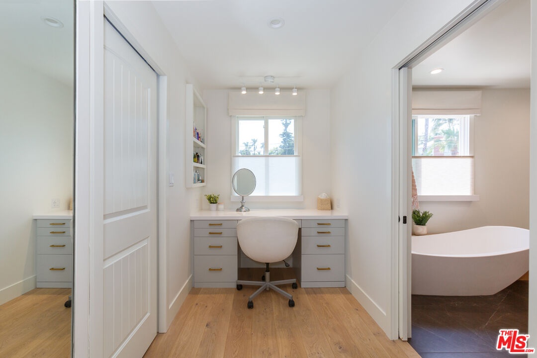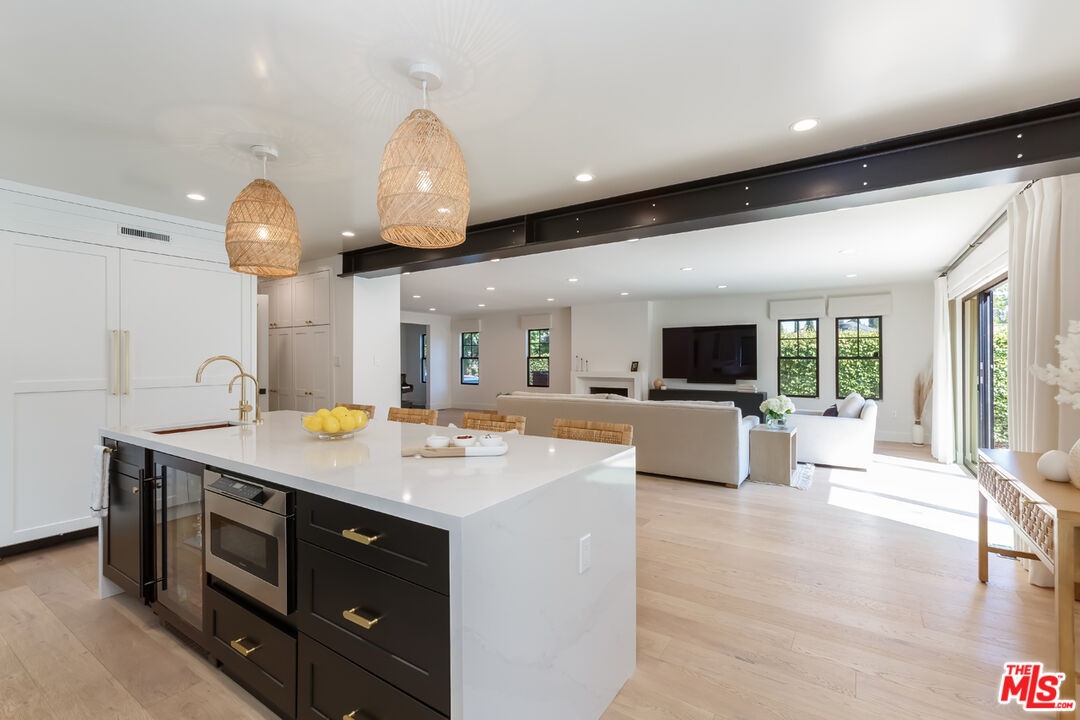 Welcome to this stunning modern farmhouse in the heart of Mar Vista hilltop. This newer construction, open-concept home features 4 bedrooms plus an additional downstairs room that can serve as a 5th bedroom, office, or playroom, along with a private workout studio. As you step inside, you'll be impressed by three gorgeous fireplaces, soothing farmhouse decor, and a chef's eat-in kitchen with a Wolf stove, Thermador refrigerator, walk-in pantry, extra beverage fridge, and waterfall island. The home comes equipped with a complete smart home system designed for ease and convenience. The primary ensuite offers heated floors, a smart steam shower with chroma light therapy, a soaking tub for ultimate spa-like relaxation, custom closets including a walk-in, a lighted makeup station, and access to a second-floor deck with beautiful city views. Additional features include an alarm system and multi-camera security system, dual-zone central air, abundant natural light and closet space throughout, a dedicated media closet, motorized shades, extra-large custom storage including an attic, and a spacious second-floor laundry room with a brand-new washer, dryer, and prep sink. The privately gated front and backyard provide ample space for entertaining, complemented by an oversized five-car driveway and garage. The two story garage has been retrofitted with plumbing and electrical for a potential ADU conversion making it ideal for an in-law suite, office or pool house. Ideally located near parks, top-rated Mar Vista schools, a social neighborhood hosts Halloween and Santa's Parade, shopping, dining, and LA's best farmers market, this home offers luxury living in a highly desirable central location to freeways, beaches and all of LA. Don't miss the opportunity to make this exceptional westside modern farmhouse your next home.