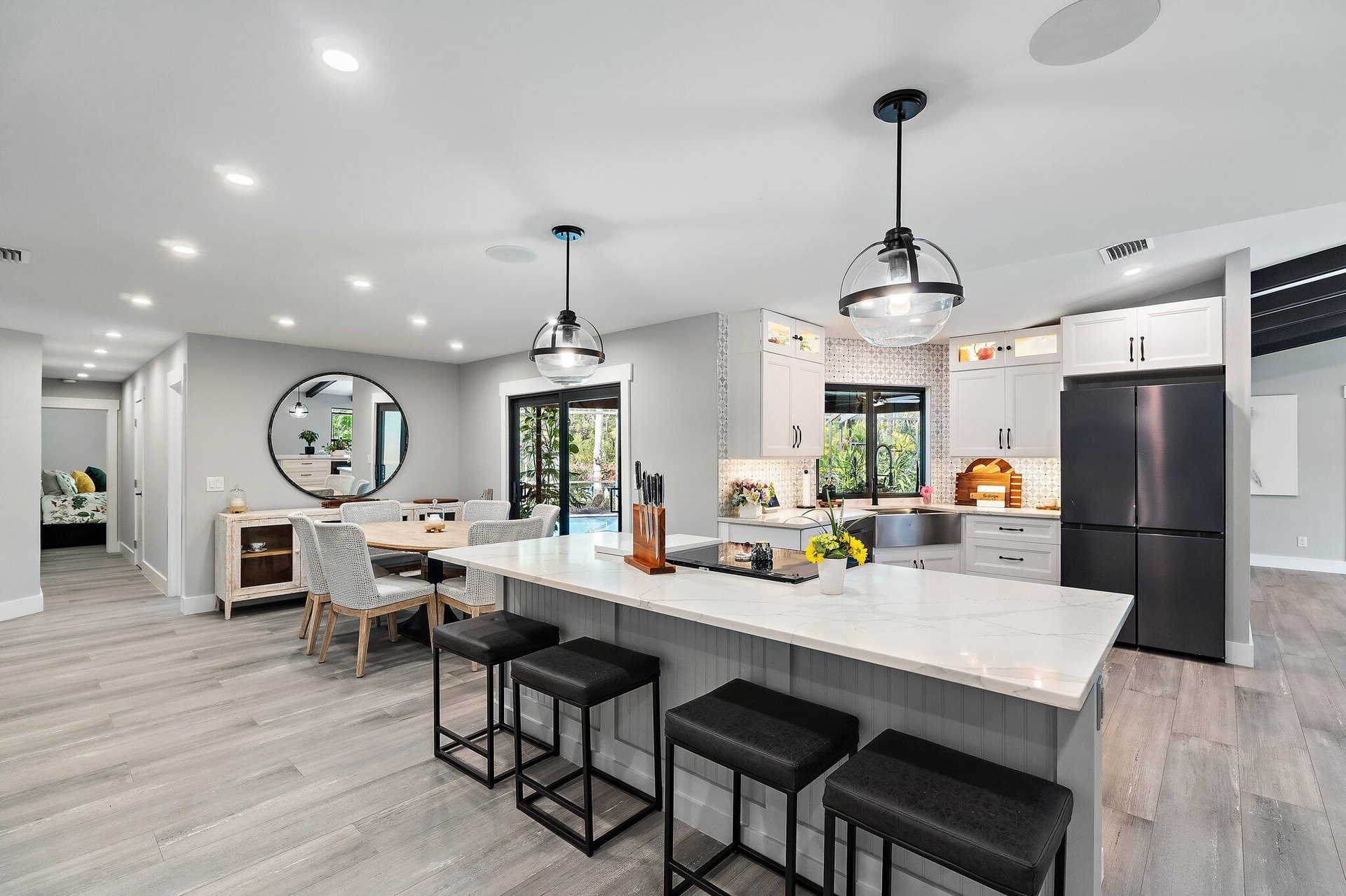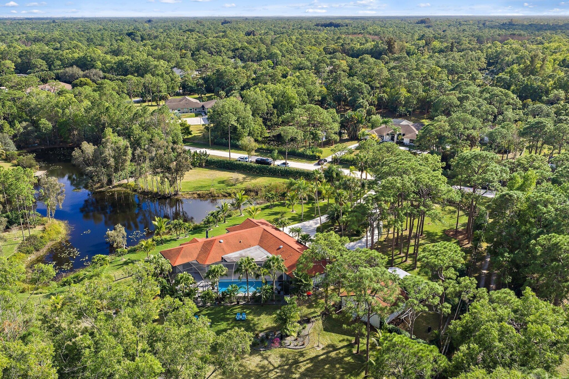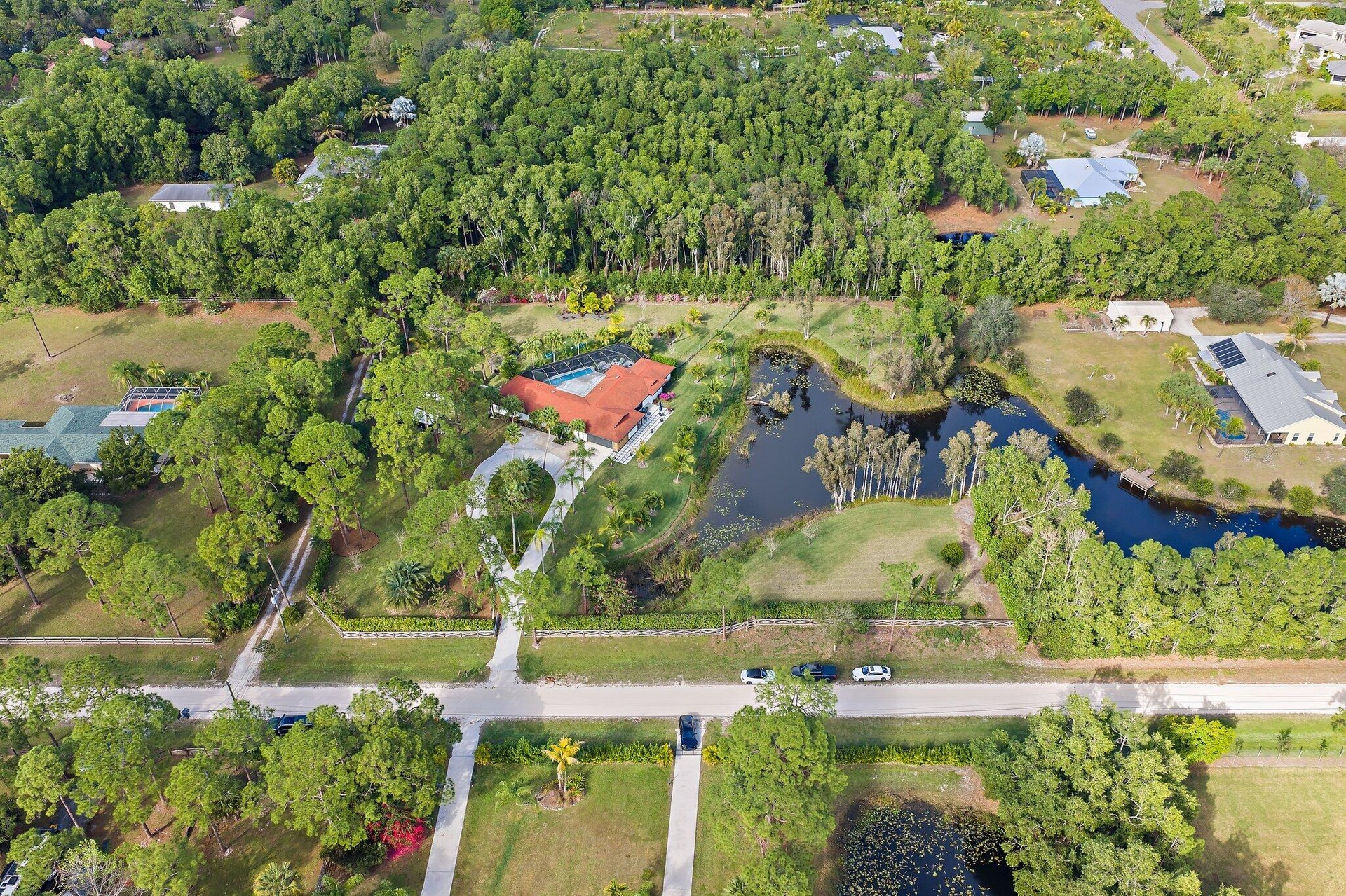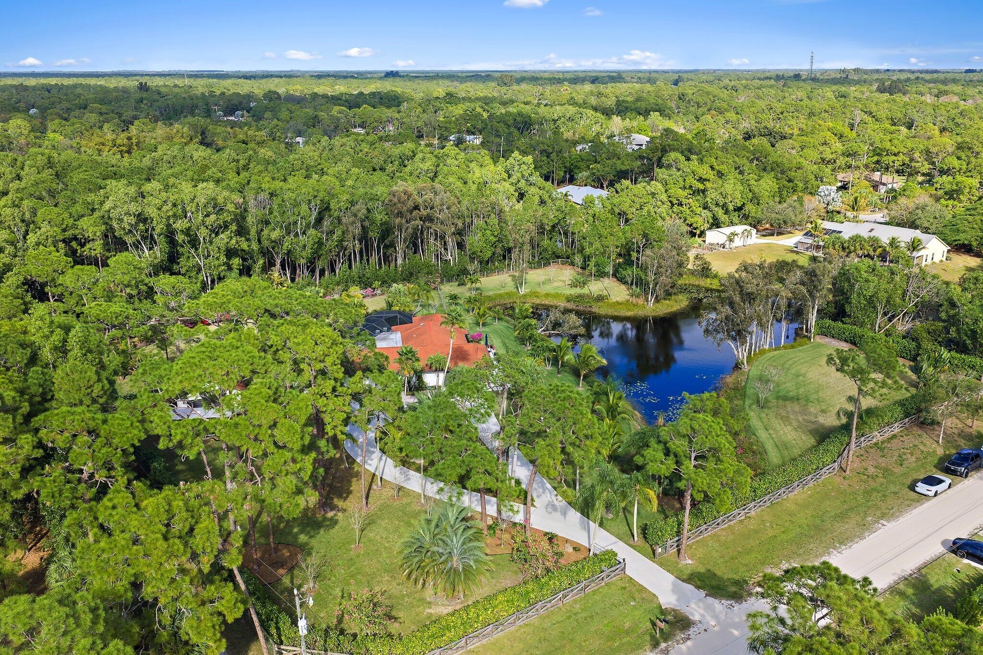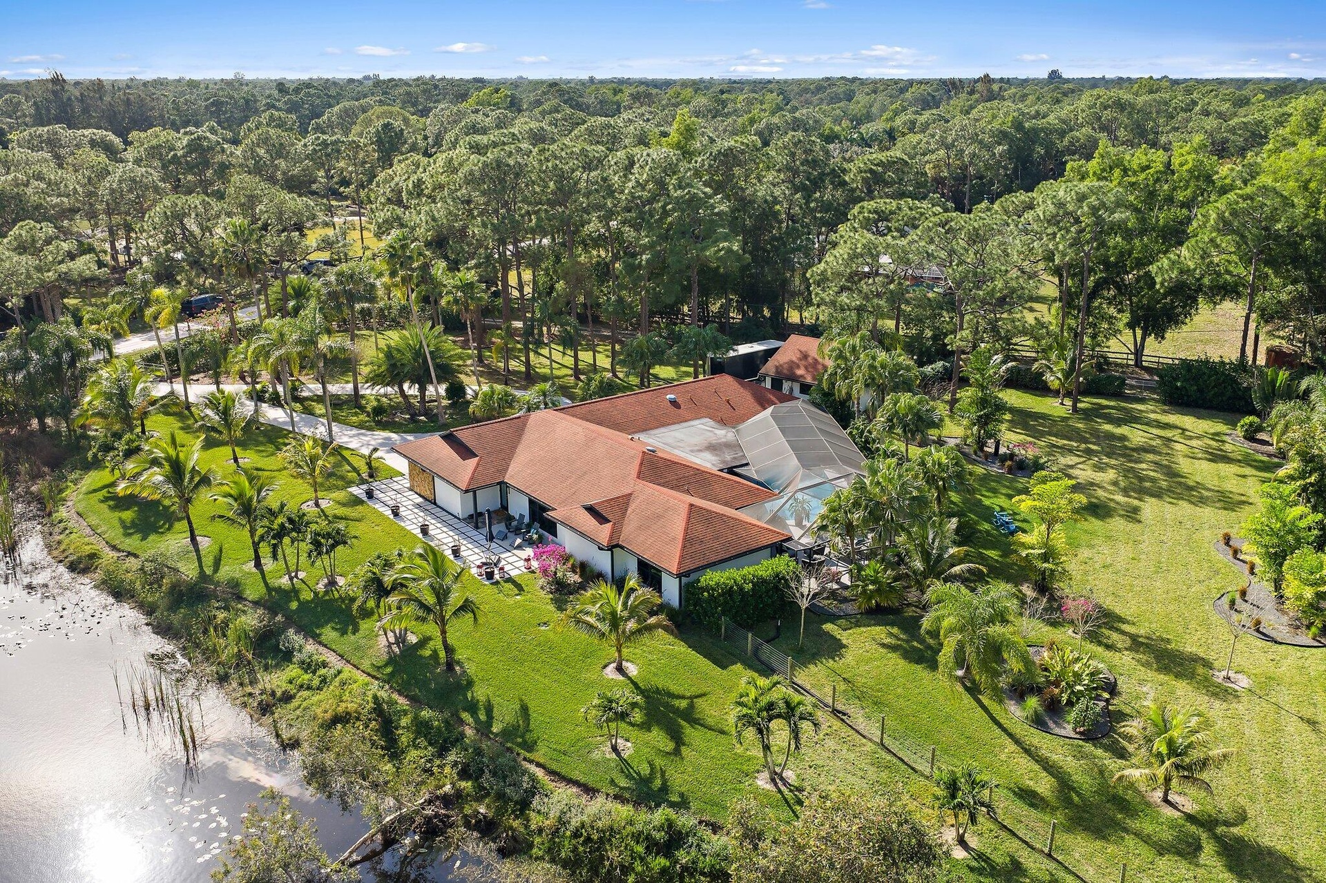 Set on a breathtaking 2.5-acre fully fenced parcel in Jupiter Farms, this completely gutted and exquisitely renovated 5-bedroom, 3-bathroom residence offers rare privacy, serenity, and refined indoor-outdoor living. Adjacent to a tranquil pond filled with fish, the property delivers a true private retreat surrounded by perfectly manicured grounds and lush tropical landscaping.