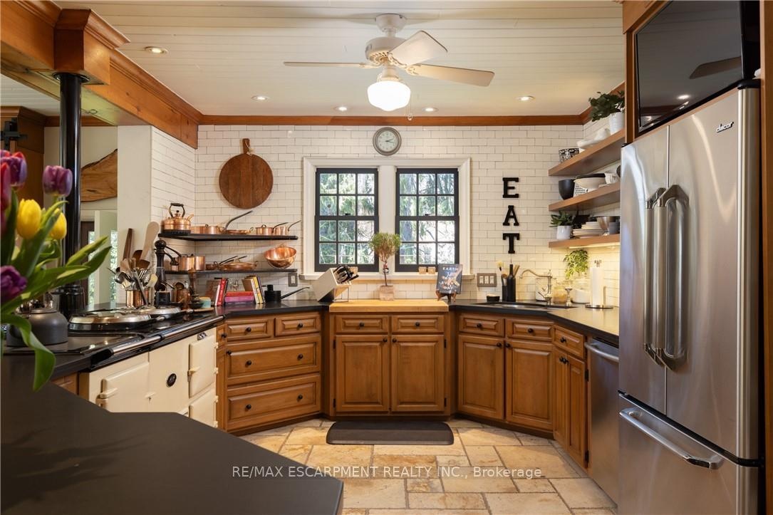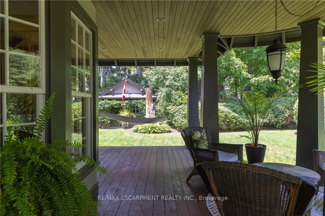 Nestled at the end of a private laneway on .996 acre in sought-after South East Oakville, tranquility awaits. This Arts and Crafts-style home, boasting a wrap-around veranda, sits amidst nearly an acre of meticulously manicured gardens, complete with a stunning addition designed by Gren Weis.Step inside this charming 4-bedroom residence, offering over 3600 sqft of living space, and be enveloped in its timeless character.The sun-drenched kitchen is a chefs dream, featuring an AGA stove, step down to the breakfast area with multiple walkouts to the gardens, seamlessly blending indoor and outdoor living. The great room is the perfect place to relax in front of the fire at any time of the day.Entertain with ease in the expansive living and dining room, while a tucked-away main floor office provides privacy.Upstairs, the large principal bedroom overlooks the backyard and gardens, boasting a b/i vanity area, bookcase, custom w/i closet, and a luxurious 3-piece ensuite. Two additional generously sized bedrooms share a timeless 4-piece bath, while the fourth bedroom, currently used as a gym and laundry area, offers flexibility to suit your needs. Outside, is a dining gazebo and stone patio area, complete with a wood f/p, that set the stage for al fresco entertaining amidst the natural beauty of majestic evergreens and perennials.A vegetable garden provides a farm-to-table experience, while a potting shed stands ready to house all your gardening tools. An oversized detached double car garage offers ample storage, with an unfinished coach house space above, roughed in for plumbing and electrical, awaiting your vision to become a work at home office, gym, guest suite, or in-law quarters.Experience the rare tranquility this home brings as you relax in nature,listening to the birds sing on your estate-sized lot. Ideally located steps from the lake, parks, and a short distance to all Downtown Oakville has to offer, including great public and private schools. Luxury Certified.