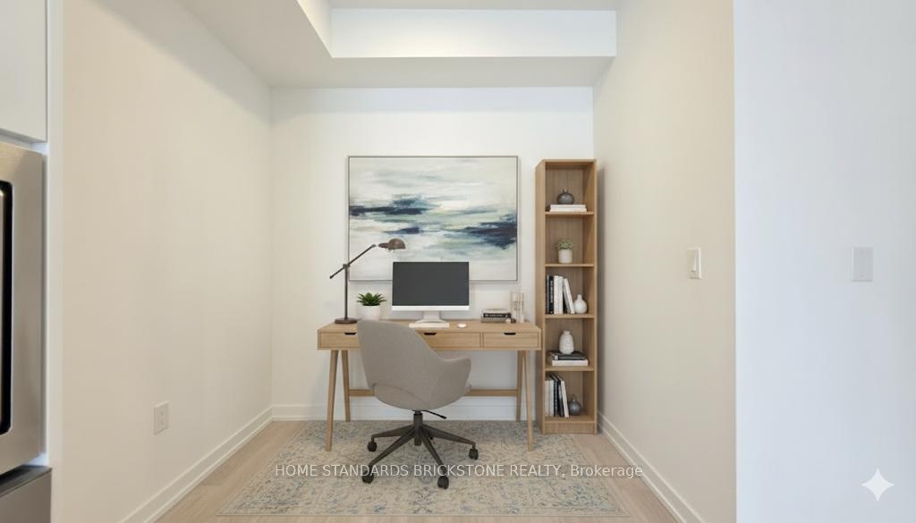 Welcome to Joystation. Located in Markham and steps away from convenient transportation. This 1 Bedroom + Den & 2 Full Bathroom Unit offers a bright South Exposure. Unit has Laminate Flooring throughout, 9 Ft Ceilings, Spacious open-concept Living Area, and Large Floor to Ceiling Windows. The Spacious Den provides versatile extra living space. Kitchen area is appointed with Quartz Counters & complimenting Tiled Backsplash. Primary Bedroom features an Ensuite Bathroom & Walk In Closet. Building Amenities include a 24hr Concierge, State-of-the-Art Gym, Golf Simulator, Business Centre, & Stunning Rooftop Terrace with BBQs. Location offer's easy access to Mount Joy GO Station (Direct Go Train to Union). 1 Parking included
