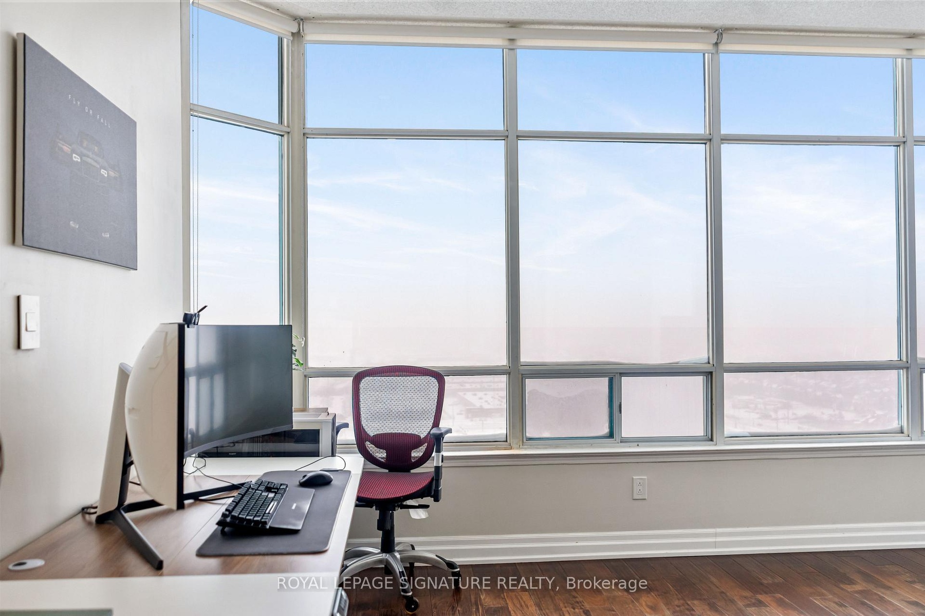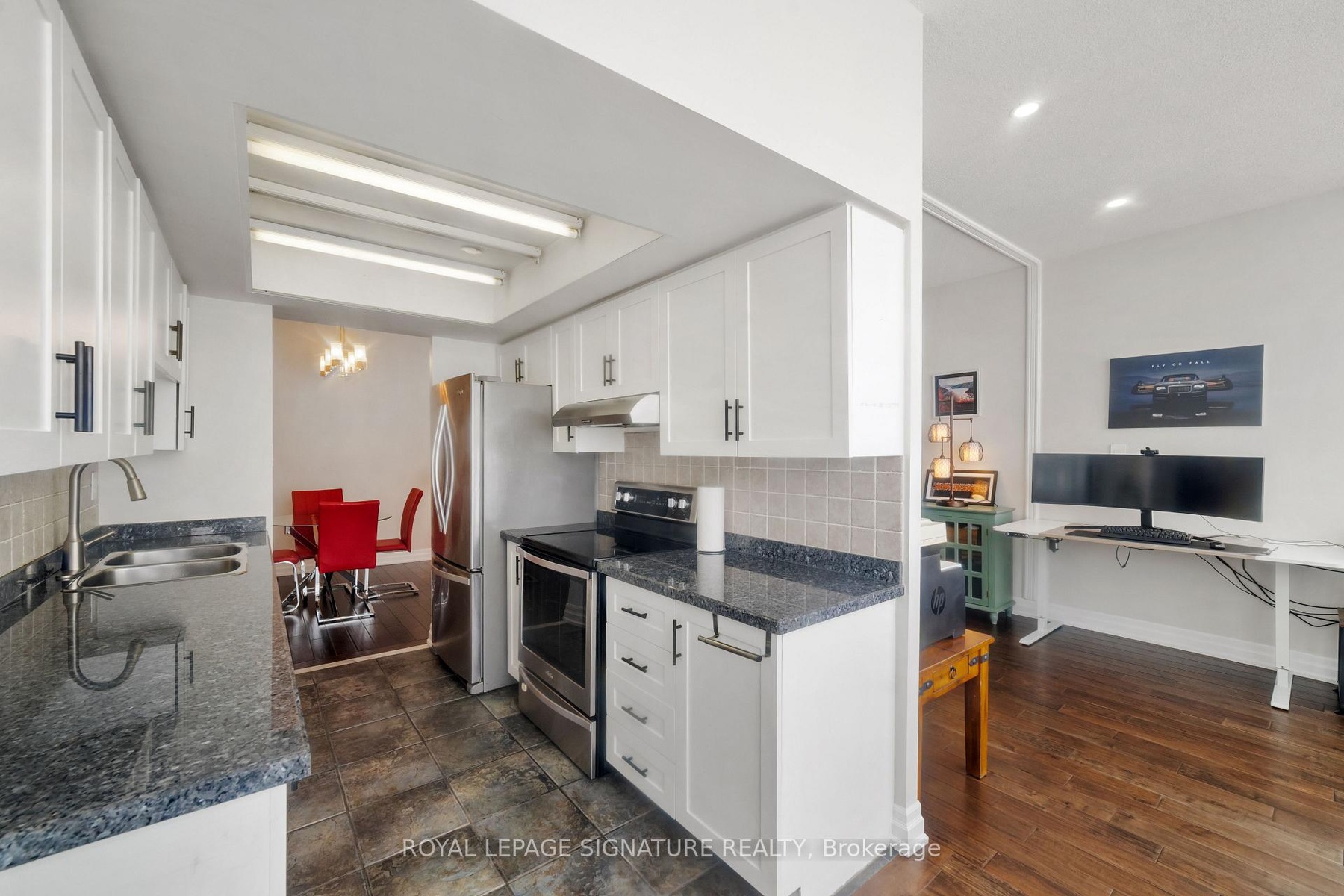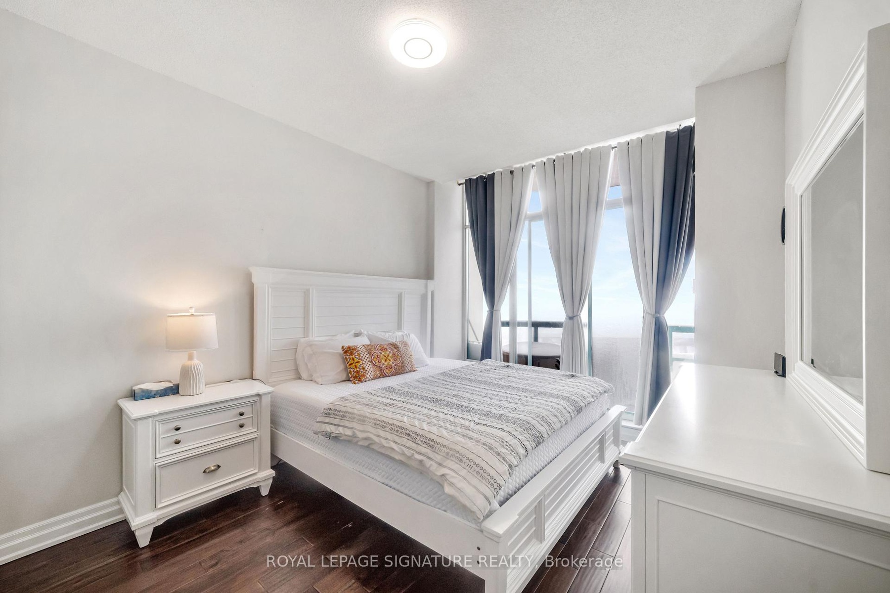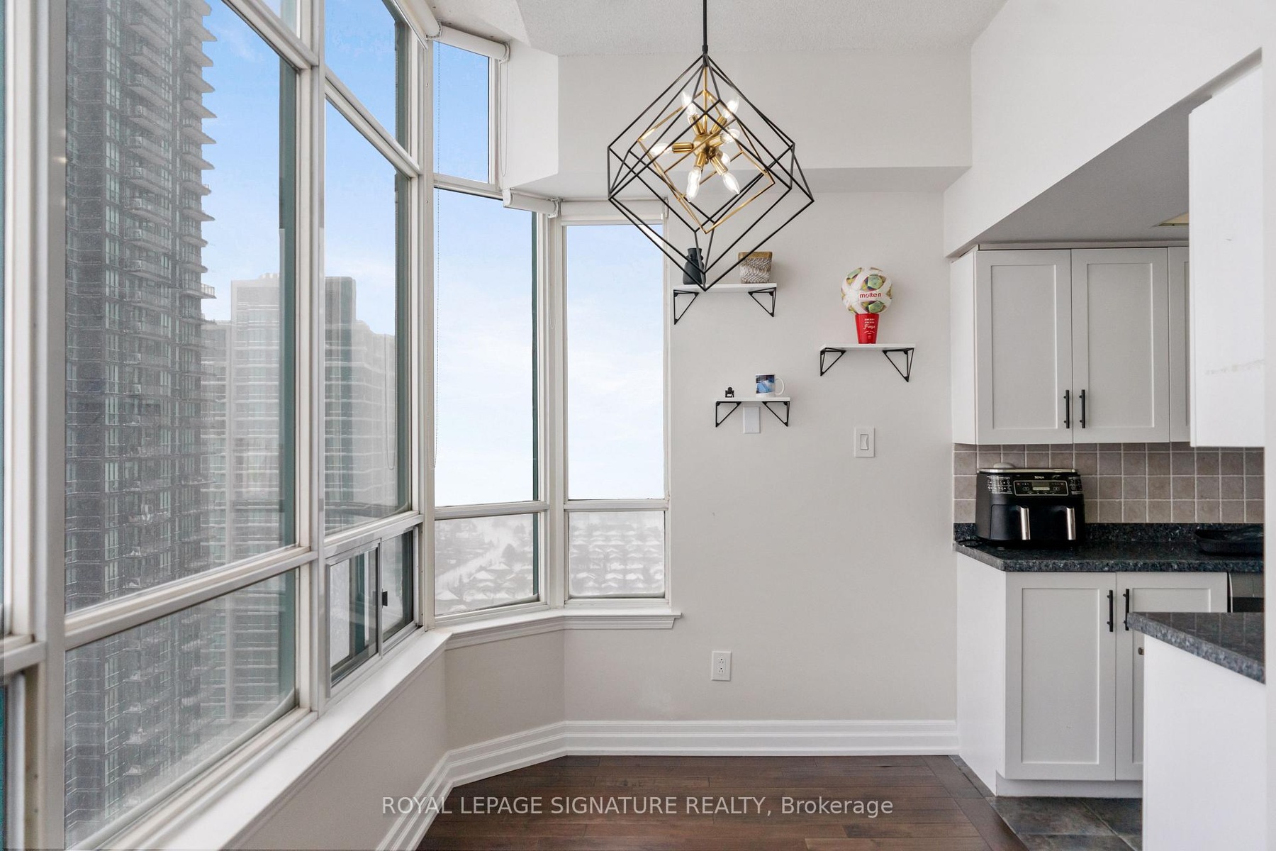 Absolutely spacious and bright Upper Penthouse PH1-9 featuring 10-foot ceilings and breathtaking north-east city views. This sun-filled, Fully furnished residence offers exceptional space, privacy, and sweeping panoramic vistas in one of Mississauga's most connected communities. All utilities are included (hydro, water, and heat), providing outstanding value and convenience.This expansive 2-bedroom, 2-bathroom suite offers approximately 1,100 sq. ft. of move-in-ready living space. The thoughtfully updated layout showcases a bright open-concept living and dining area, enhanced by the integration of the former den-ideal for both everyday living and entertaining. Hardwood flooring runs throughout, while the modern eat-in kitchen is equipped with stainless steel appliances and complemented by large windows that flood the home with natural light.Step out onto the private balcony to enjoy panoramic skyline views-perfect for morning coffee or relaxing evening sunsets. The generous primary bedroom features two large closets and a private ensuite. Additional highlights include ensuite laundry, two entry closets, one locker, and two parking spaces & extra Storage Space.