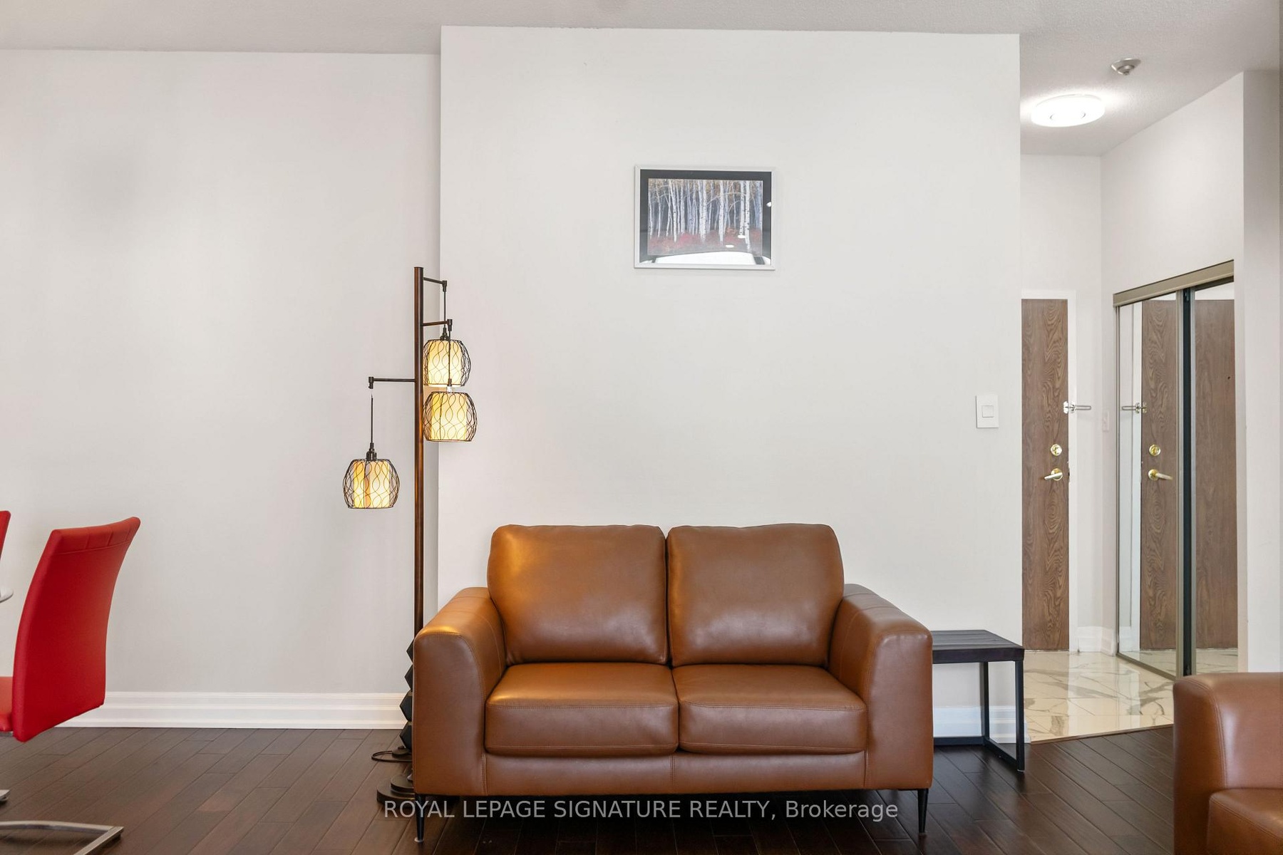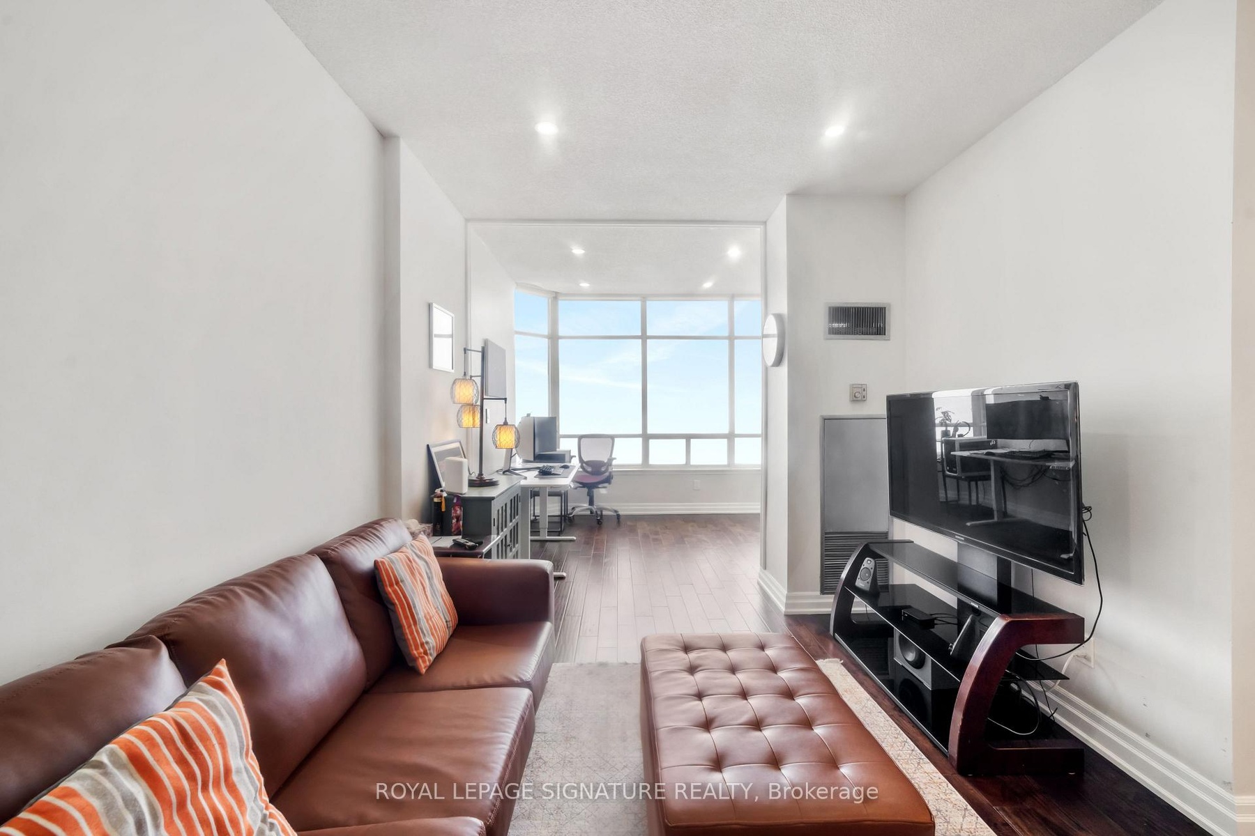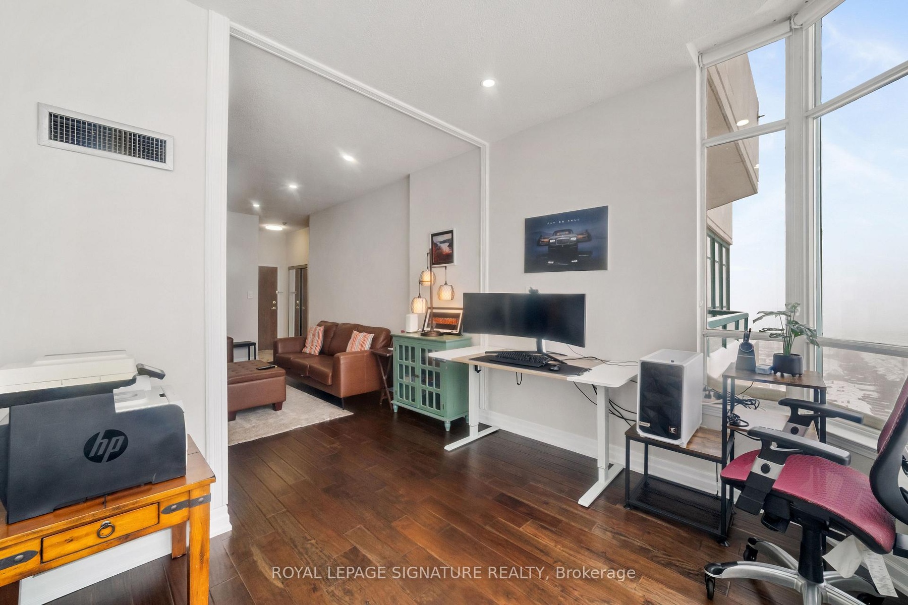 Absolutely spacious and bright Upper Penthouse PH1-9 featuring 10-foot ceilings and breathtaking north-east city views. This sun-filled, Fully furnished residence offers exceptional space, privacy, and sweeping panoramic vistas in one of Mississauga's most connected communities. All utilities are included (hydro, water, and heat), providing outstanding value and convenience.This expansive 2-bedroom, 2-bathroom suite offers approximately 1,100 sq. ft. of move-in-ready living space. The thoughtfully updated layout showcases a bright open-concept living and dining area, enhanced by the integration of the former den-ideal for both everyday living and entertaining. Hardwood flooring runs throughout, while the modern eat-in kitchen is equipped with stainless steel appliances and complemented by large windows that flood the home with natural light.Step out onto the private balcony to enjoy panoramic skyline views-perfect for morning coffee or relaxing evening sunsets. The generous primary bedroom features two large closets and a private ensuite. Additional highlights include ensuite laundry, two entry closets, one locker, and two parking spaces & extra Storage Space.