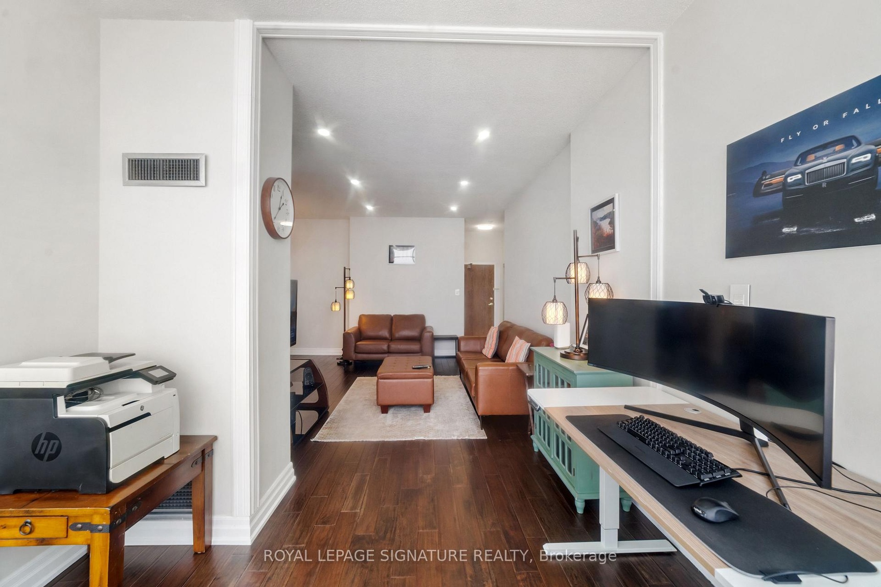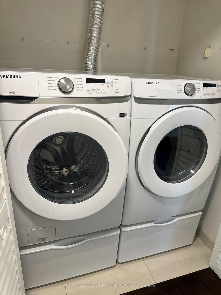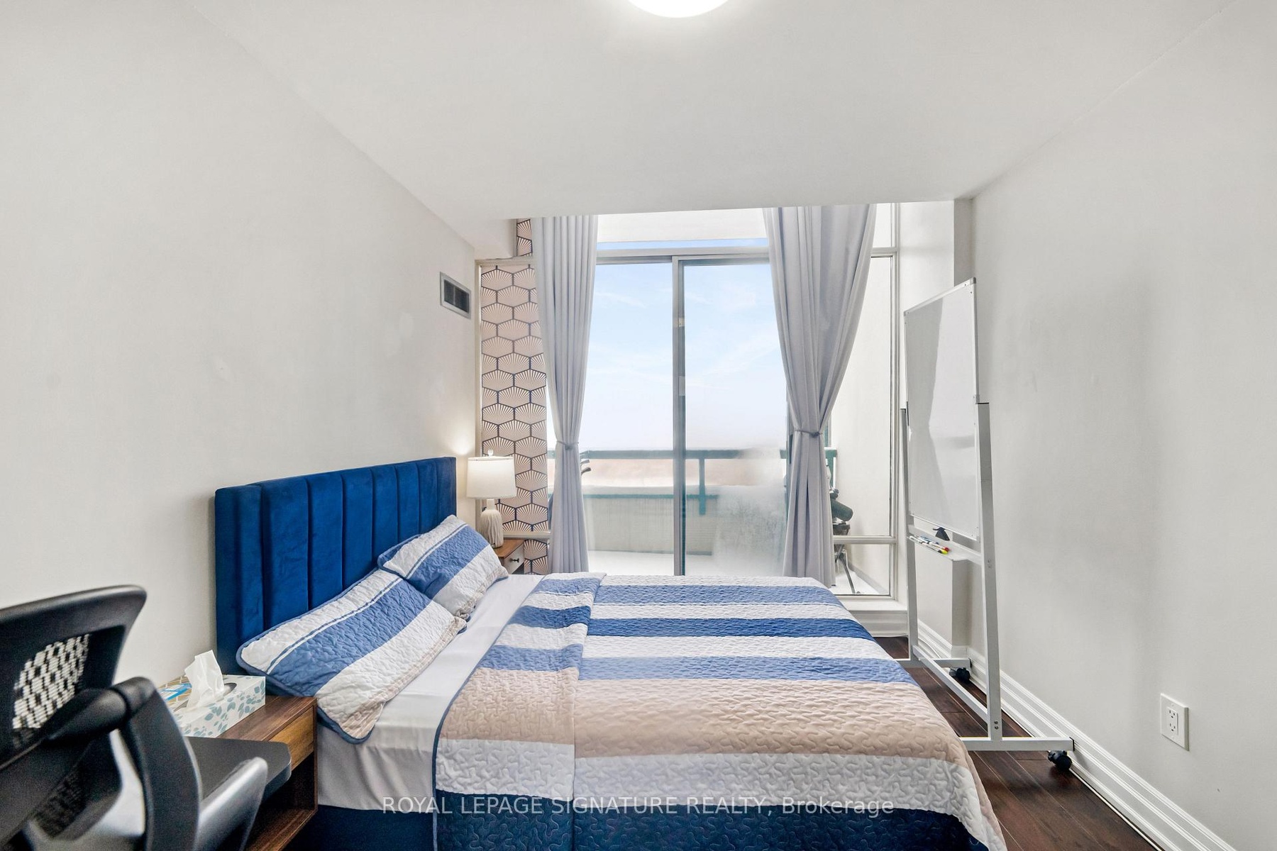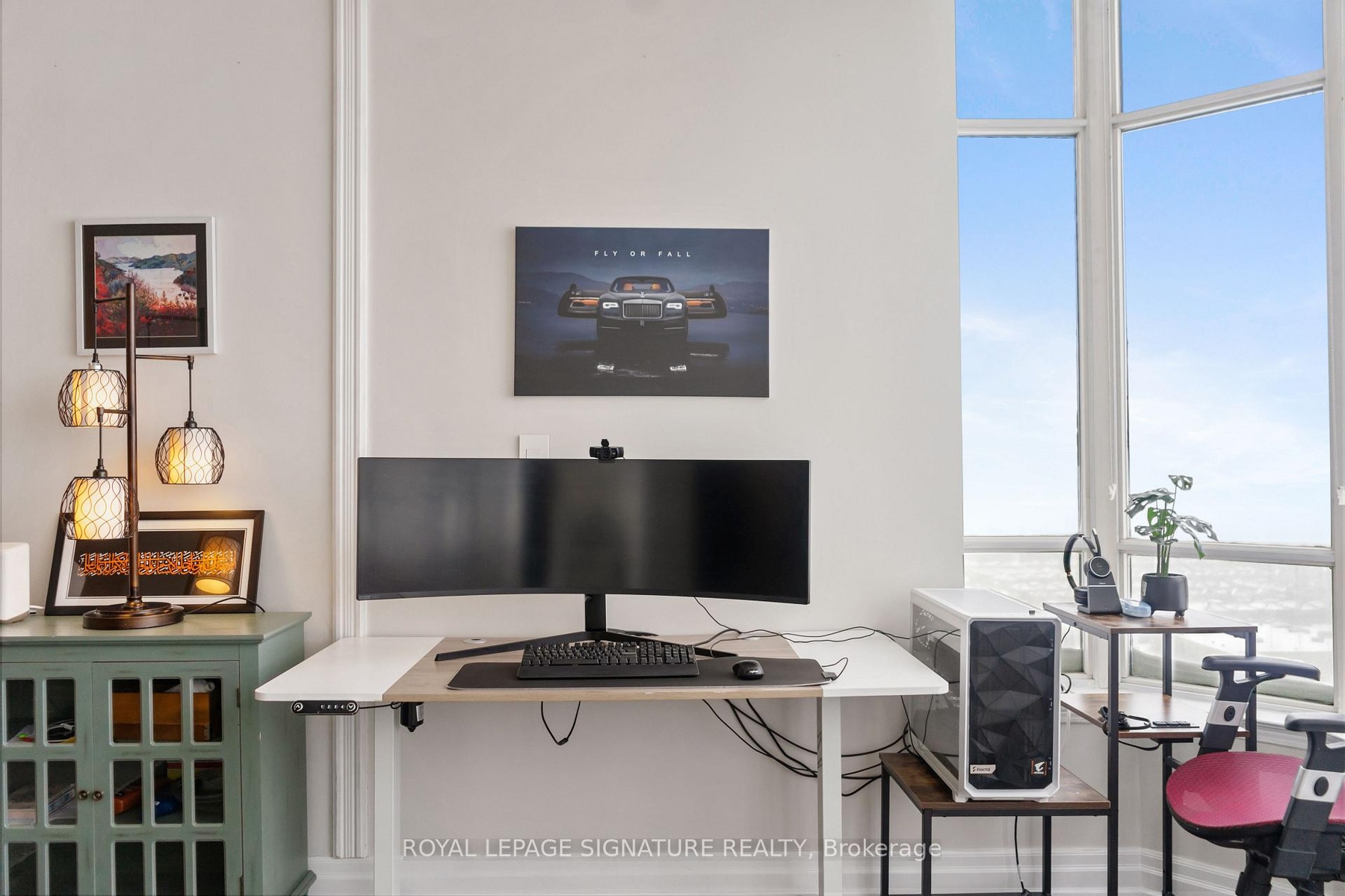 Absolutely spacious and bright Upper Penthouse PH1-9 featuring 10-foot ceilings and breathtaking north-east city views. This sun-filled, Fully furnished residence offers exceptional space, privacy, and sweeping panoramic vistas in one of Mississauga's most connected communities. All utilities are included (hydro, water, and heat), providing outstanding value and convenience.This expansive 2-bedroom, 2-bathroom suite offers approximately 1,100 sq. ft. of move-in-ready living space. The thoughtfully updated layout showcases a bright open-concept living and dining area, enhanced by the integration of the former den-ideal for both everyday living and entertaining. Hardwood flooring runs throughout, while the modern eat-in kitchen is equipped with stainless steel appliances and complemented by large windows that flood the home with natural light.Step out onto the private balcony to enjoy panoramic skyline views-perfect for morning coffee or relaxing evening sunsets. The generous primary bedroom features two large closets and a private ensuite. Additional highlights include ensuite laundry, two entry closets, one locker, and two parking spaces & extra Storage Space.