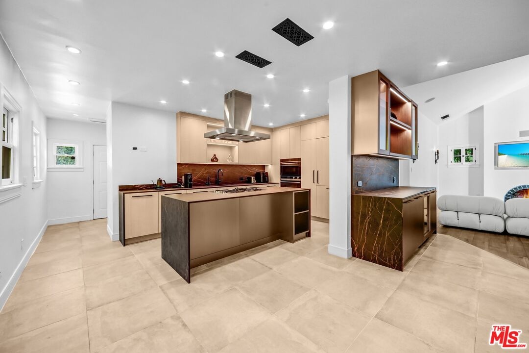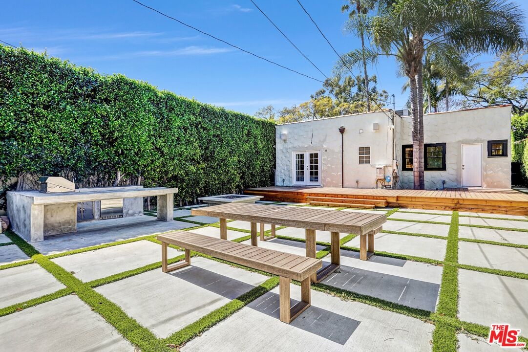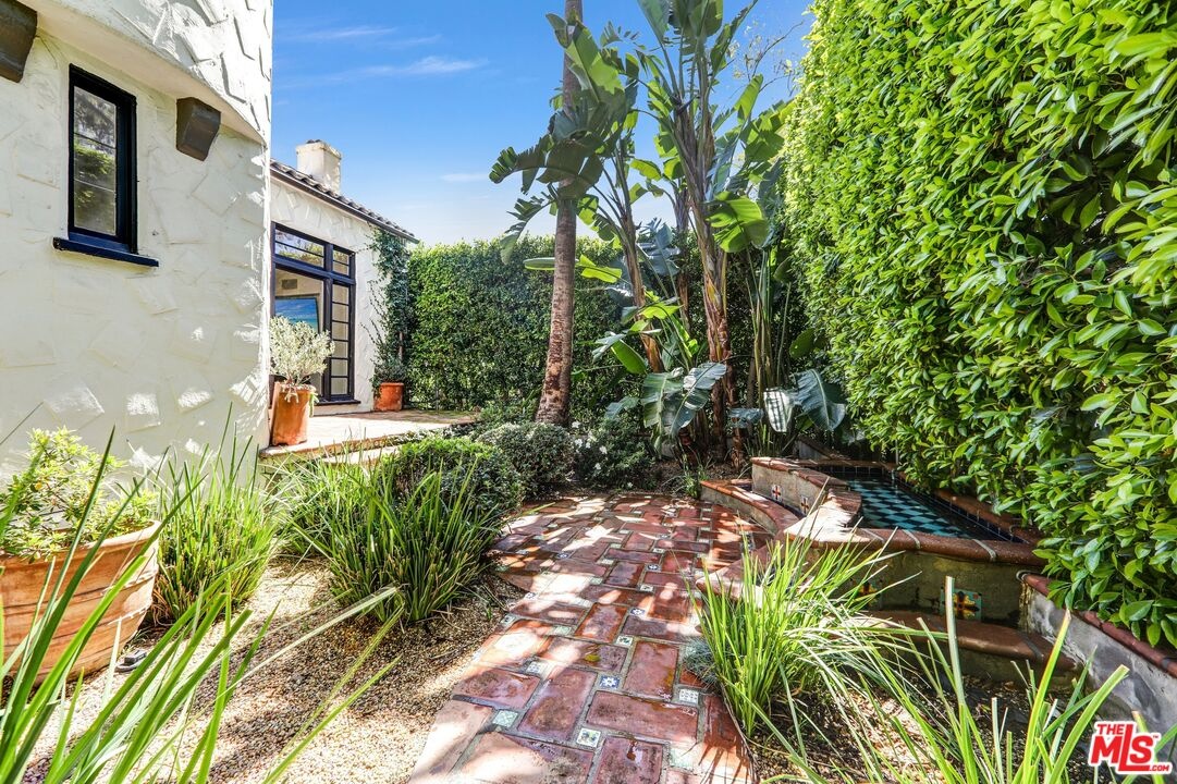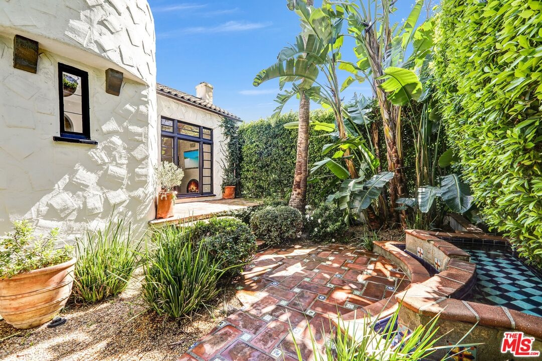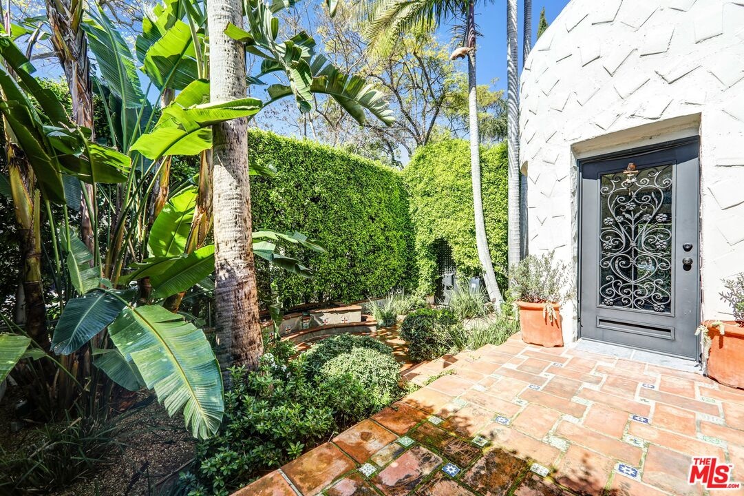 PRIME LOCATION! Just steps from West Hollywood's premier shopping and dining, this exceptional property sits on a huge, park-like lot adorned with gorgeous, mature trees. The expansive 48' x 148' R1B-zoned lot offers exciting potential to build or simply enjoy the property the way it is. The fully gated and secure grounds provide total privacy, enhanced by tall hedges surrounding the entire property. A charming Spanish fountain welcomes you as you enter the tiled courtyard, setting the tone for this warm and inviting home. Inside, you'll find beautiful architectural details, including graceful, curved ceilings, a separate dining area, and space ideal for a home office. Additional features include a laundry room conveniently located off the Kitchen, and a primary bedroom that opens through French doors onto a large wood deck. Enjoy views of the expansive, private backyard, complete with BBQ area outdoor bar and multiple seating areas and ample space to add a pool. Fully remodeled kitchen and bathrooms. Ready to move in.