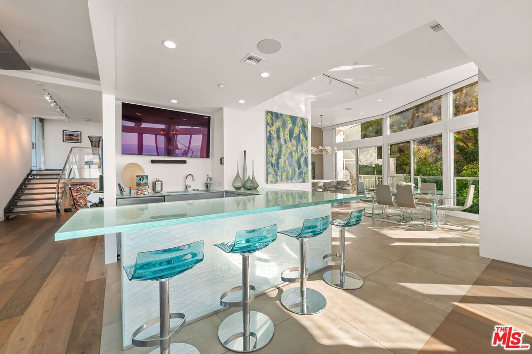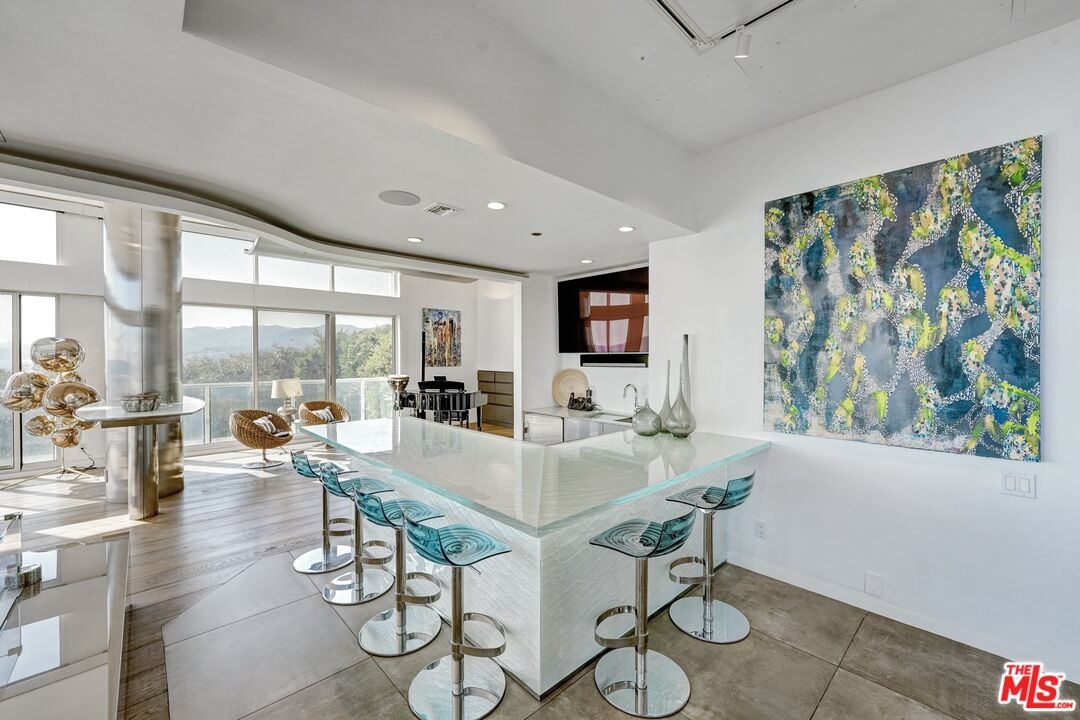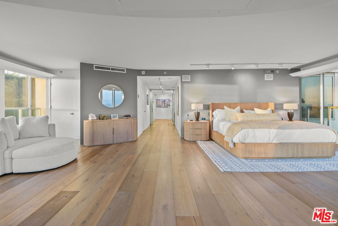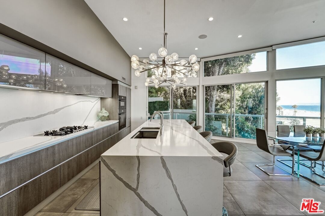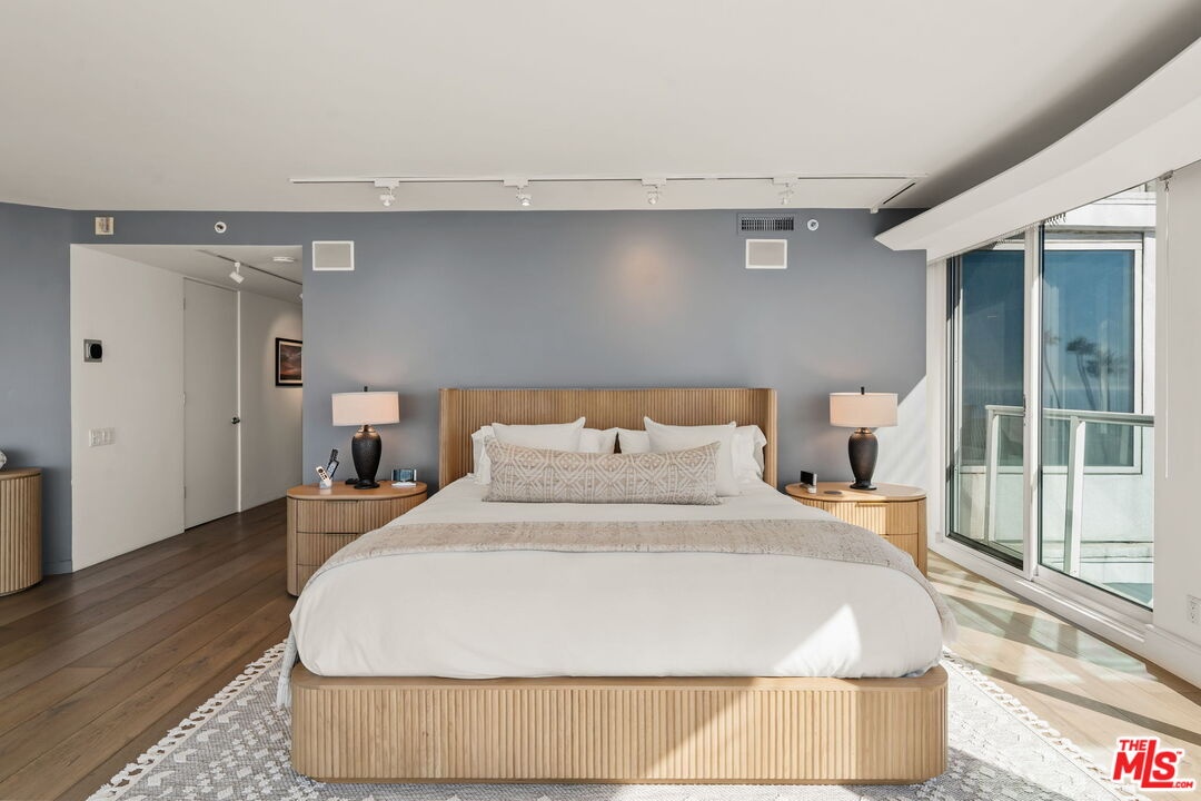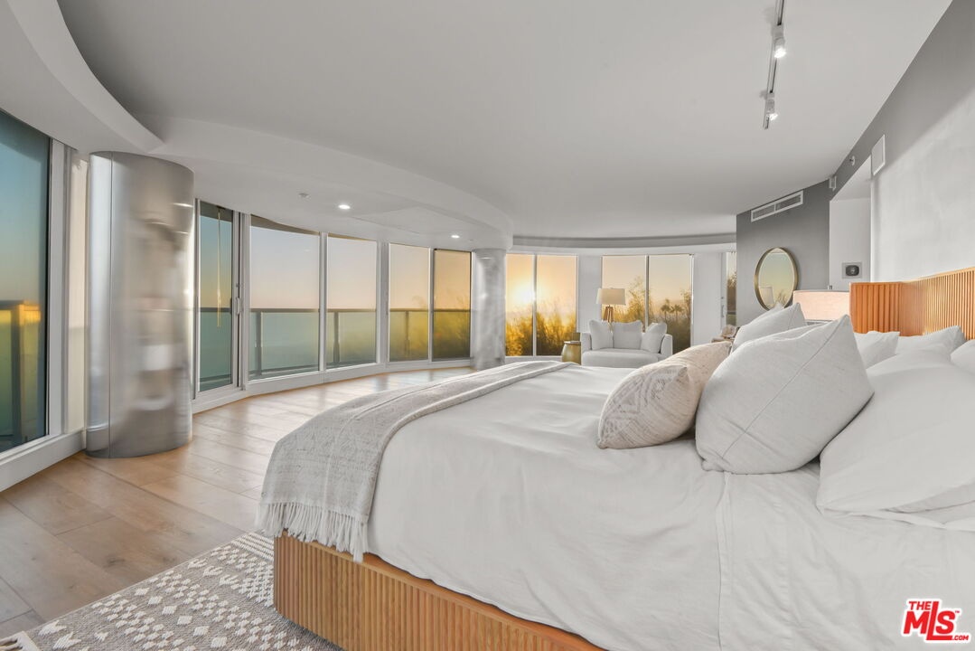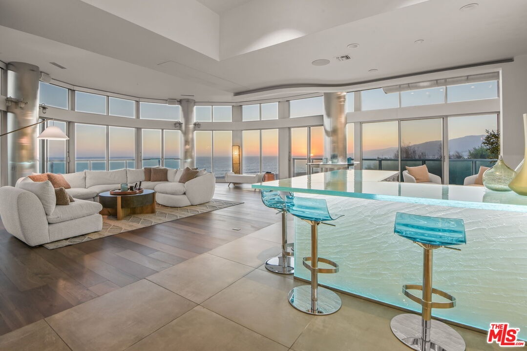 An irreplaceable residence and the only two-story home in the building, offering full 180 ocean frontage, 12-foot ceilings on the main level flooding the space with natural light and endless blue horizon views, and a layout that simply does not exist elsewhere on Ocean Avenue. Unlike standard single-story units, A100 lives like a private oceanfront home with separation of spaces, dramatic volume, and uninterrupted views from both living areas and the primary suite. This is a rare opportunity to acquire the most architecturally and positionally significant residence in one of Santa Monica's most iconic buildings. From sunrise to sunset, watch sailboats drift by, dolphins play, and the Santa Monica Pier Ferris wheel glow against the night sky. In July, fireworks illuminate the coastline best enjoyed from your private ocean-view deck or the custom sea-glass light-up bar inside.Step through the private tunnel for a walk on the sand, or stroll to nearby restaurants for world-class seaside dining. Inside, every detail has been curated for comfort, elegance, and effortless living. Each of the three bedrooms includes an ensuite bath, plus a chic powder room for guests. The primary suite offers the same 180-degree ocean panorama as the living room with dual walk-in closets and a spa-inspired bath featuring a BainUltra hydro-jetted tub with heated backrest, chromatherapy, and aromatherapy.The chef's kitchen boasts top-of-the-line Miele and Viking appliances, quartz countertops, and a 150-bottle Viking wine cooler. A spacious laundry room includes a full sink and custom cabinetry. One bedroom has been transformed into a private media lounge with seven leather recliners easily converted back to a bedroom or home office. Lutron solar shades adorn every window. Three parking spaces and two EV chargers add convenience to coastal luxury.The building's resort-style pool area has just completed a multi-million-dollar renovation.Welcome home to 101 Ocean Avenue where every day feels like vacation. Link to 3D walkthru: Https://my.matterport.com/show/?m=pkDQUQsxUtx&