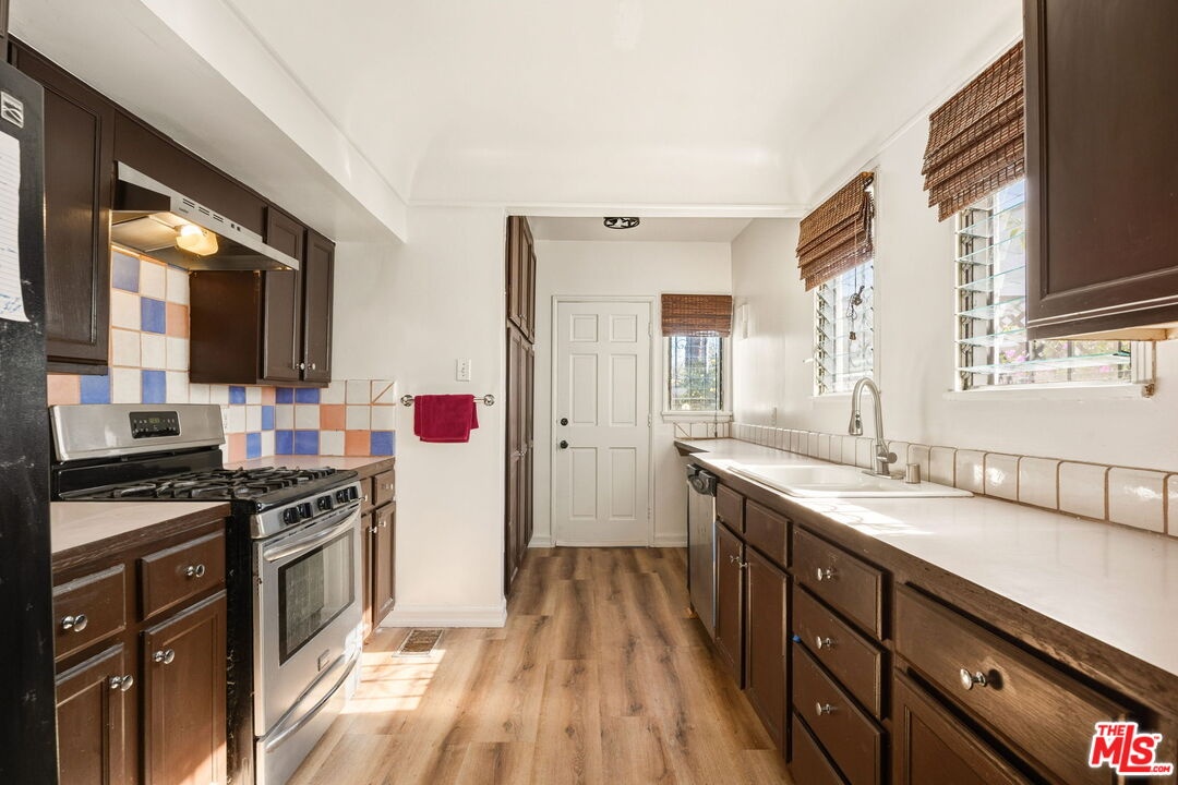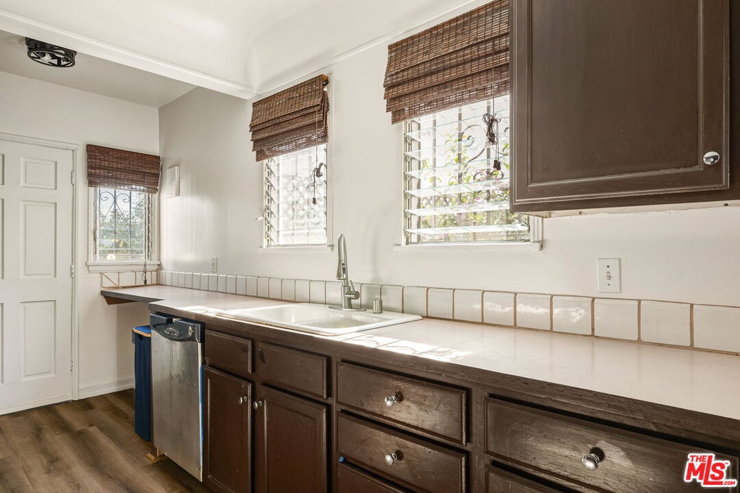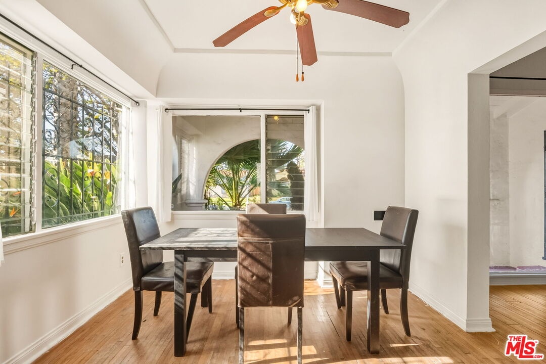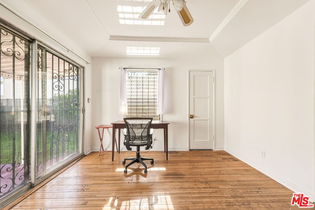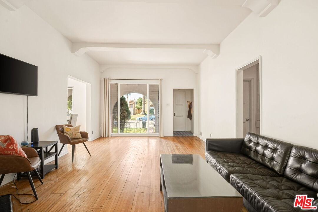 Situated on an expansive 5,000-sqft lot in the heart of Faircrest Heights, 1562 Crescent Heights is a captivating Spanish-style residence that beautifully showcases timeless architectural character and effortless indoor-outdoor living. A lush front yard and paved pathway lead to an enclosed porch framed by graceful archways, immediately setting the tone for the home's classic appeal. Inside, the sun-filled interior presents original moldings, classic ceiling beams, and a thoughtful layout that feels both warm and welcoming. Preserved details are found throughout, including original wall sconces in the bedrooms and distinctive Spanish tile accents in the bathrooms, adding an authentic sense of elegance and heritage. The home features two well-proportioned bedrooms and bathrooms, along with a versatile third room ideal for a home office, den, or creative space. The formal dining room flows seamlessly into a bright kitchen with ample cabinetry and custom tile backsplash, creating a comfortable setting for everyday living and entertaining alike. The expansive backyard is a standout feature - a combination of lush greenery, mature citrus trees and an open grass area offers exceptional space for al-fresco dining, entertaining, or relaxation. The detached, spacious garage further enhances the property, presenting excellent ADU potential for those seeking additional living space, guest accommodations, or income opportunities. Thoughtfully maintained and rich in character, this Spanish gem offers a rare combination of architectural charm, substantial outdoor space, and versatility in a highly sought-after neighborhood - perfectly capturing the best of Southern California living.