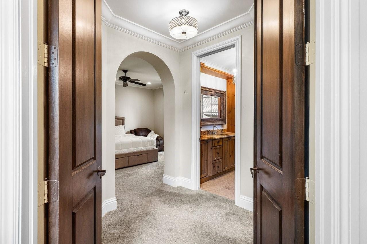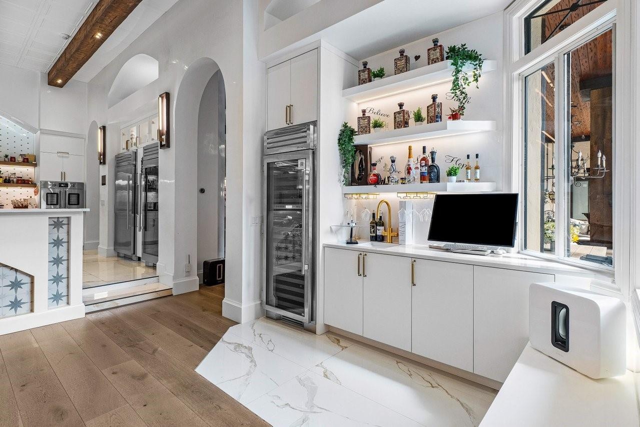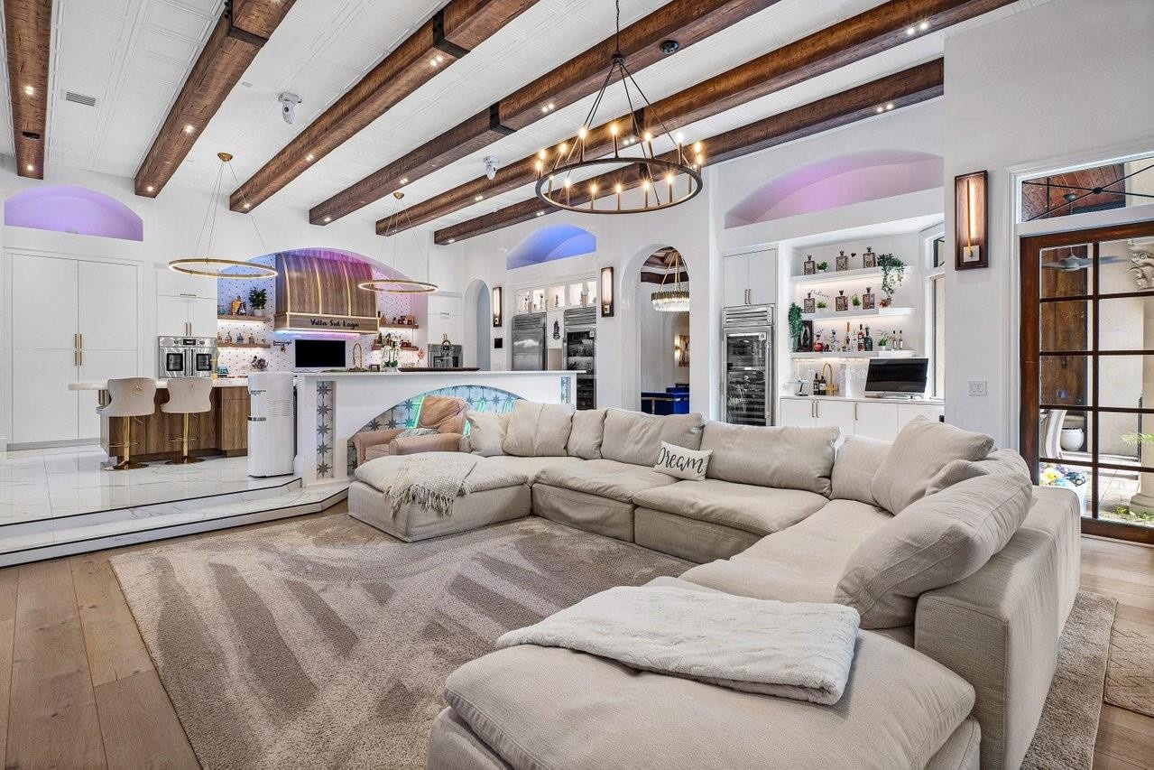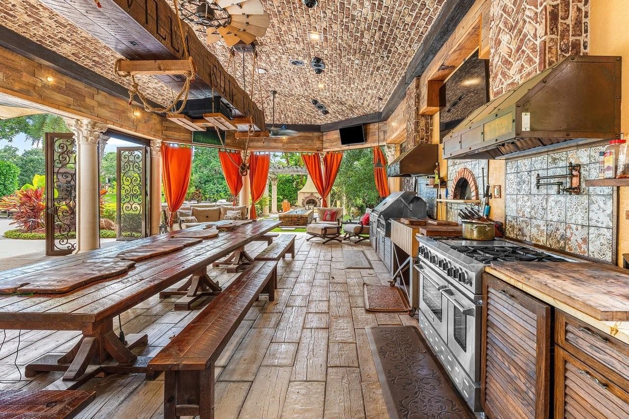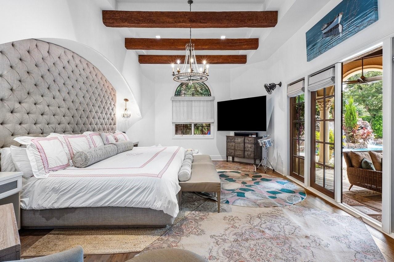 Welcome to 16389 Bridlewood Circle — a timeless lakefront estate tucked behind the gates of one of Delray Beach’s most exclusive enclaves, Foxe Chase. Situated on a coveted 1.1-acre lot with 185 feet of lake frontage, this custom-built residence delivers unmatched privacy, scale, and refined South Florida living.Designed by acclaimed architect Shane Ames, the home features 6 bedrooms, 7 baths, a grand executive office, and a series of elegant living spaces with soaring ceilings, cast-stone columns, and walls of French doors framing panoramic water views. Recent updates throughout the interior reflect today’s luxury tastes while preserving classic architectural integrity (SEE ADDITIONAL REMARKS) The heart of the home is a newly reimagined chef’s kitchen — a true showpiece featuring dramatic waterfall-edge countertops, dual islands, custom wood cabinetry, and sleek brass hardware. A statement hood anchors the space, flanked by floating shelves, a built-in coffee bar, and top-tier appliances including double wall ovens, Sub-Zero refrigeration, and dual sinks. Designer pendant lighting, wood beam ceilings, and polished porcelain flooring complete the look — making this space as functional as it is unforgettable.Step outside to your own private resort. The backyard is an entertainer’s dream, complete with a saltwater pool, summer kitchen, covered loggia, and multiple lounge areas — all overlooking tranquil lakefront scenery. Beyond the pool, the sprawling fenced yard includes a basketball court, playground, cold plunge, infrared sauna, beach area, and a private dock for the ultimate relaxation.Foxe Chase is a gated community known for estate-sized lots, mature tree-lined streets, and a peaceful, no cut-through setting — all just minutes from downtown Delray Beach, top-rated schools, top-tier golf and fitness clubs, and the beach. With 24/7 security, a scenic community lake, and proximity to everything from Atlantic Avenue to Mizner Park, this is where luxury meets lifestyle.This is a rare opportunity to own a fully loaded lakefront compound in one of Delray’s most coveted neighborhoods.