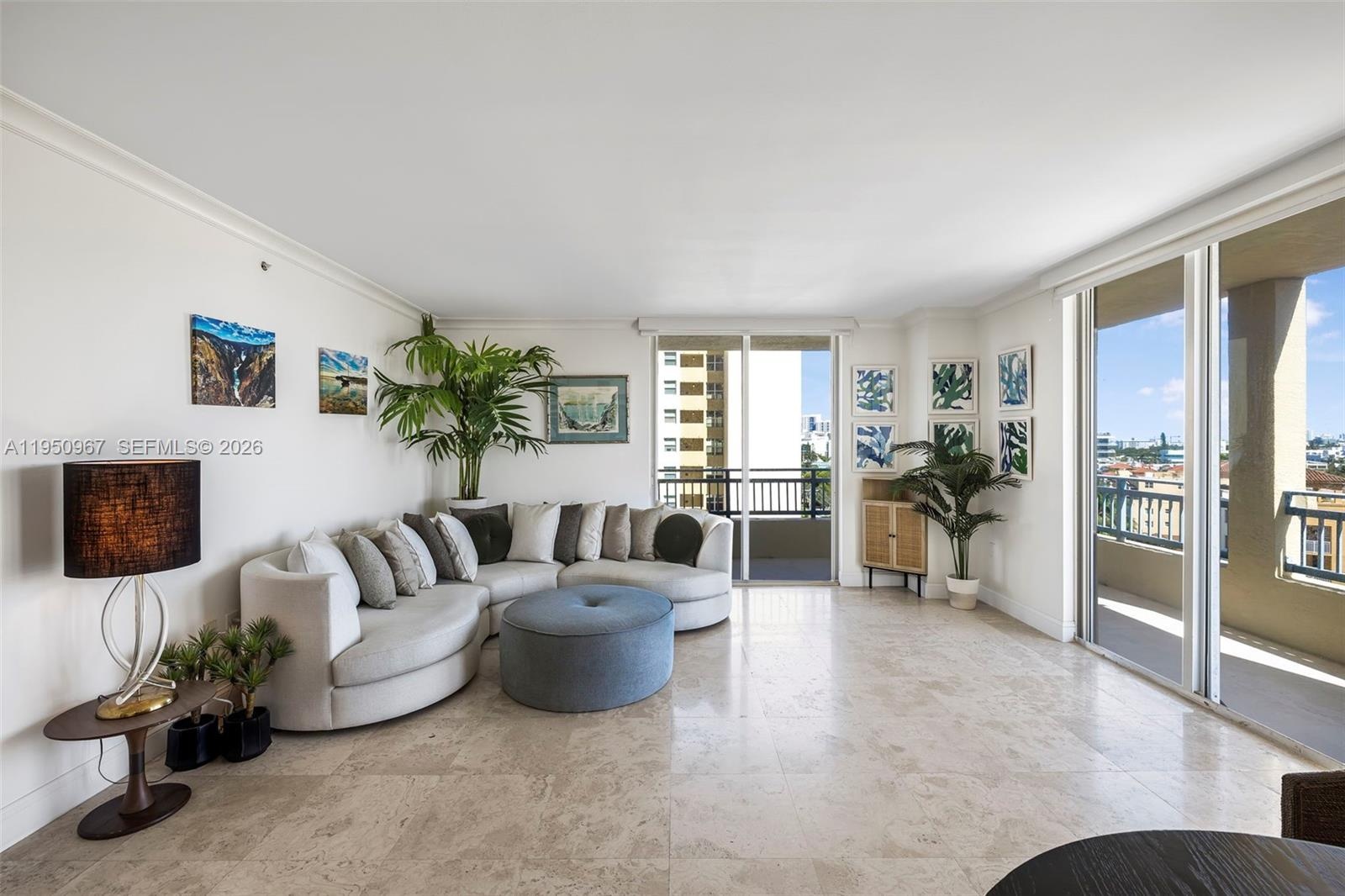 Rare corner residence at The Yacht Club featuring a wraparound balcony with Marina views in the coveted South of Fifth neighborhood.