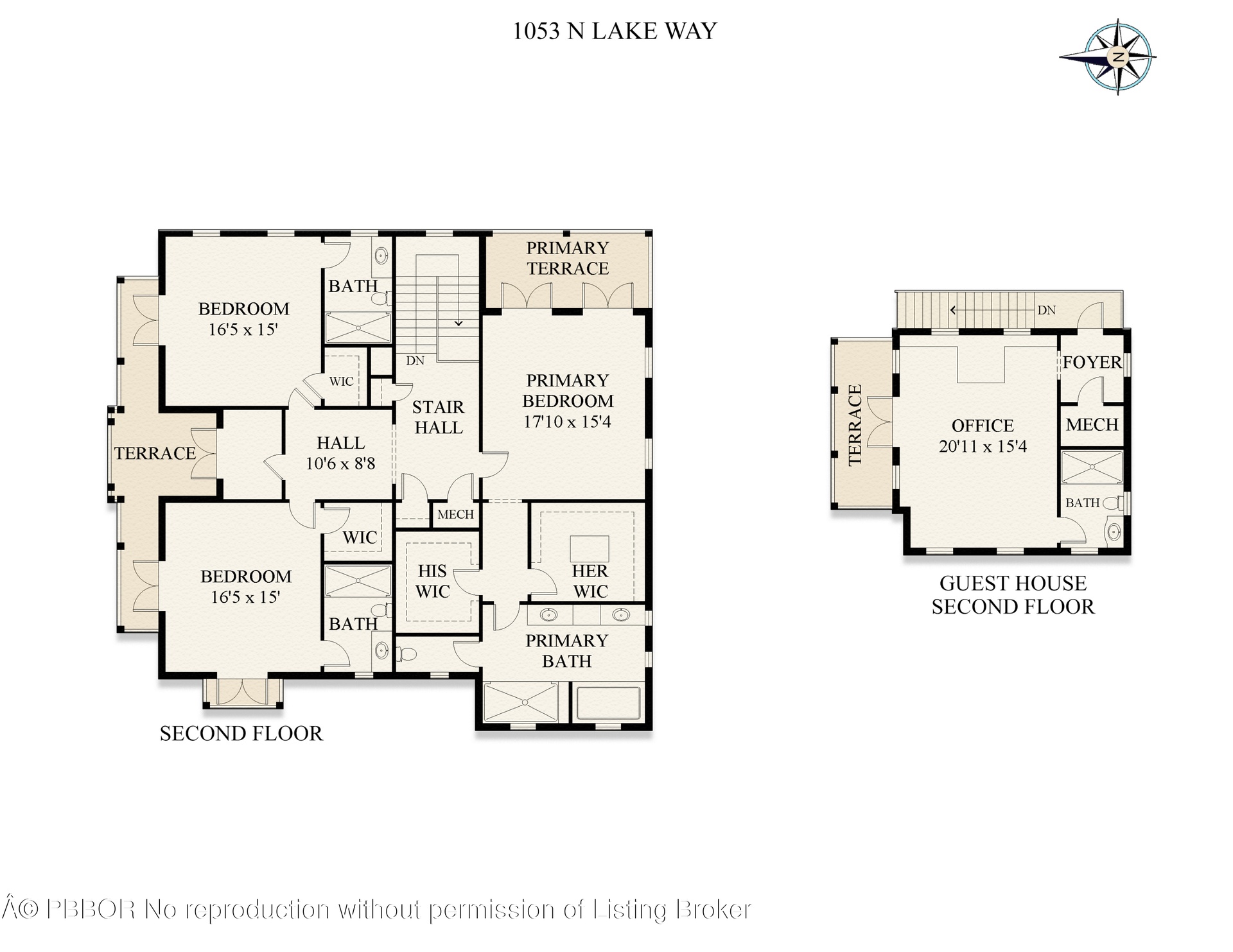 Welcome to 1053 N Lake Way, a stunning 5 bedroom plus office North End Estate with two structures - main house and guest house - all situated on an oversized lot on the sunny South side of the street. Built new in 2016, this incredible sanctuary was built to the highest quality. The custom residence features a 1,300 bottle wine cellar, library, and stunning architectural finishes throughout. Offering an excellent floor plan, designed by Michael Perry, with three bedrooms plus an office in the main house and a completely separate guest house with 2 bedrooms. Doors in the dining room were sourced originally from the New York City Public Library. The intricately landscaped outdoor spaces boast stunning loggias, bougainvillea accented pool, a bonsai garden, fire pit, and multiple options for al fresco dining. With an immaculate attention to detail, this home is a turn-key gem on an A+ North End street, with Via Marila having both the Laurie Lane alley as a service entrance and Via Marila offering beach access to some of the most desirable beaches in Palm Beach.