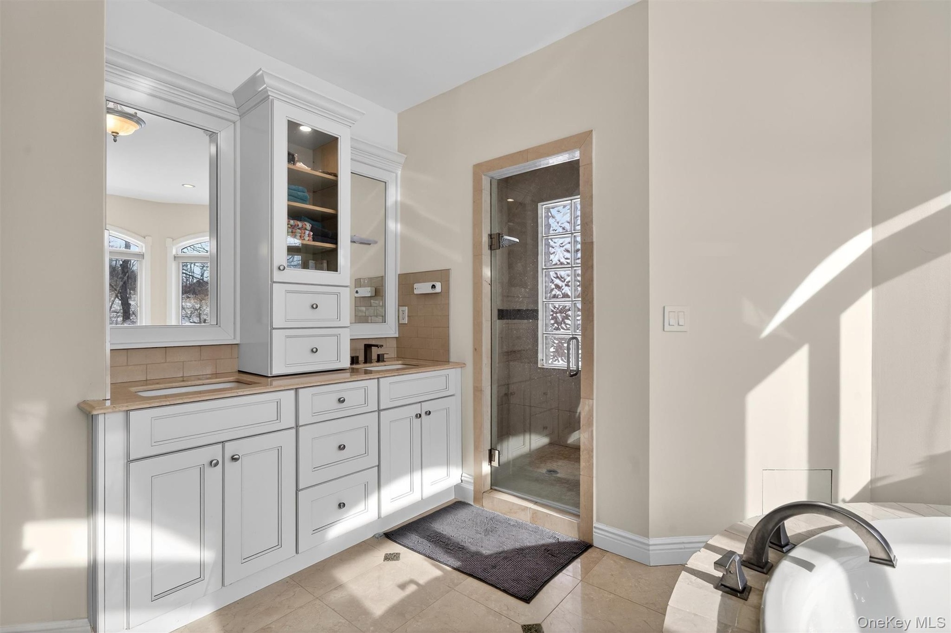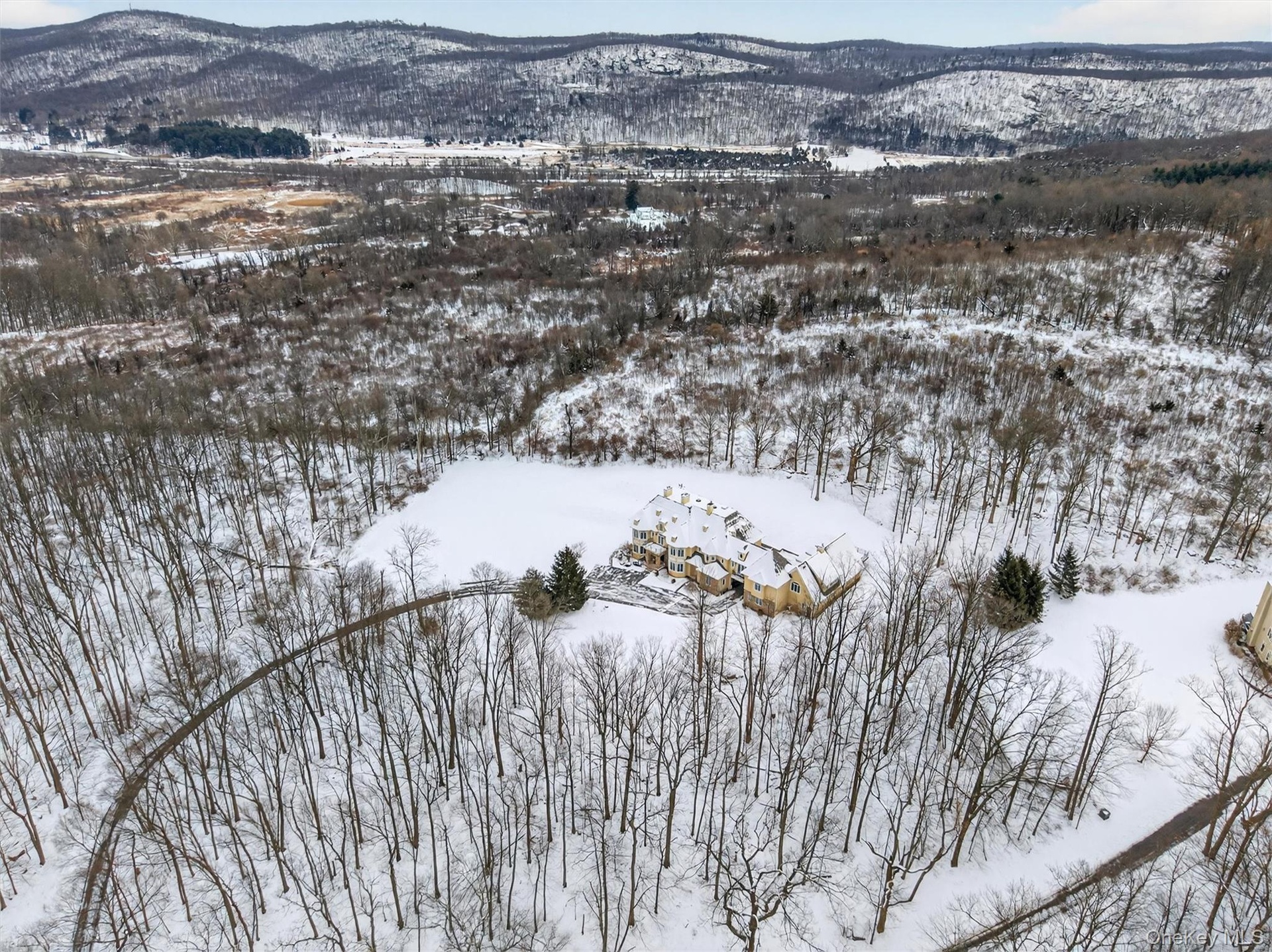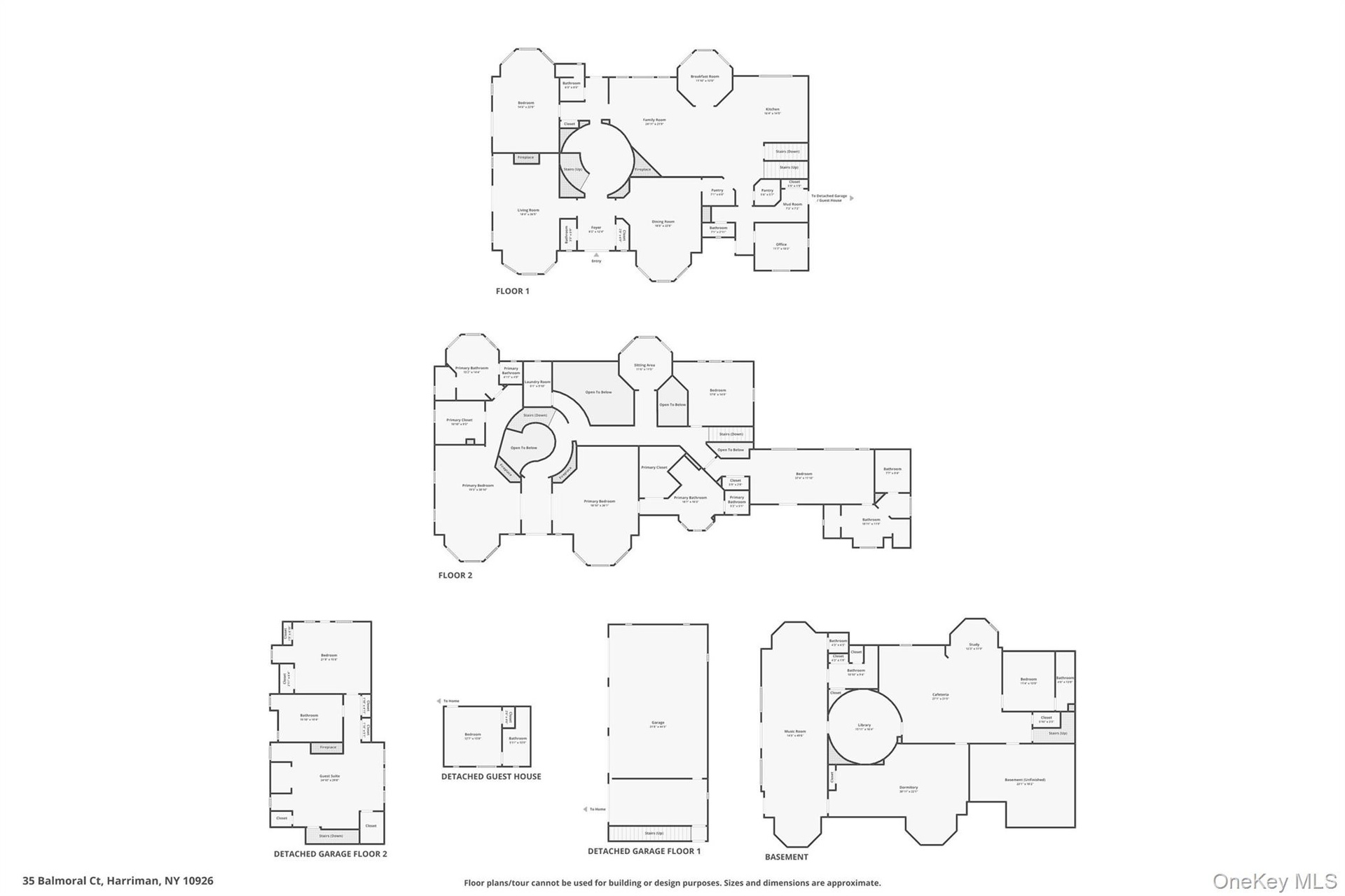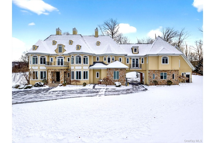 A delight awaits! Do you need space, privacy, and a prime location with top-of-the-line luxury upgrades? The house is a masterpiece and includes 2 apartments: one above the 4-bay garage and the other a ground-level efficiency apartment. Both have full kitchens and full bathrooms. The apartment above the garage has a nice deck overlooking the backyard. The views of the Schunnemunk Mountain Range are framed in the formal living room and first-floor bedroom. The first floor has 10 ft. ceilings, custom crown molding, trey ceilings,(heavy-thick) impressive leaded glass double doors, curved archway doorframes, hardwood and marble floors, a custom medalion inlay, custom stairway, floor-to-ceiling windows, bay windows, the largest dining room ever, bultlers pantry, and 2 fireplaces. Upstairs, the ceilings are also 10ft tall, and you will find TWO master suites with bay windows and a fireplace in each room. This is important - you have 2 laundry rooms, one in the basement and one on the second floor. There is a really cool circular room accessed by a catwalk overlooking the grand 2-story family room below. Let's go to the basement now: Oh My! 11 -12 FT ceilings, a wall of windows, 2 bedrooms, 2 full bathrooms, a media room, an exercise room, a huge room that can be a game room, a private entrance from outside, a library room, and so much storage room, you'll be lost. The property sits privately at the end of the cul-de-sac and shares the first part of the driveway with the neighbor (35 Balmoral is to the left). Nature is happy with the mature landscaping, beautiful trees, wildlife visits, and displays of stunning mountain views. The house was made to handle a lot of people. The mechanical systems, water treatment systems, and water storage/distribution were carefully planned and are impressive. The total number of bedrooms, bathrooms, and sq. ft. includes the 2 apartments. All interested visitors must be pre-approved financially before appointments.