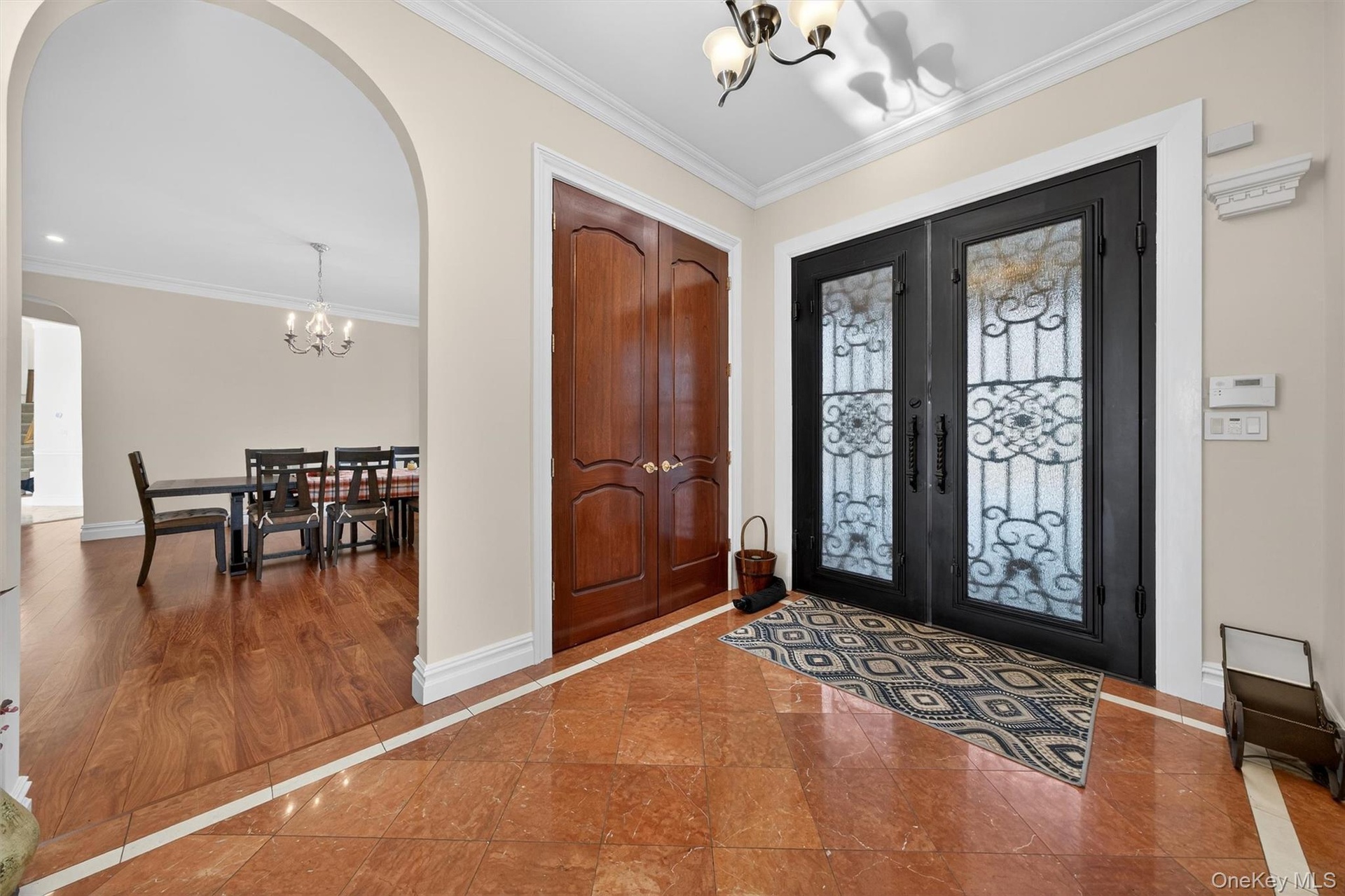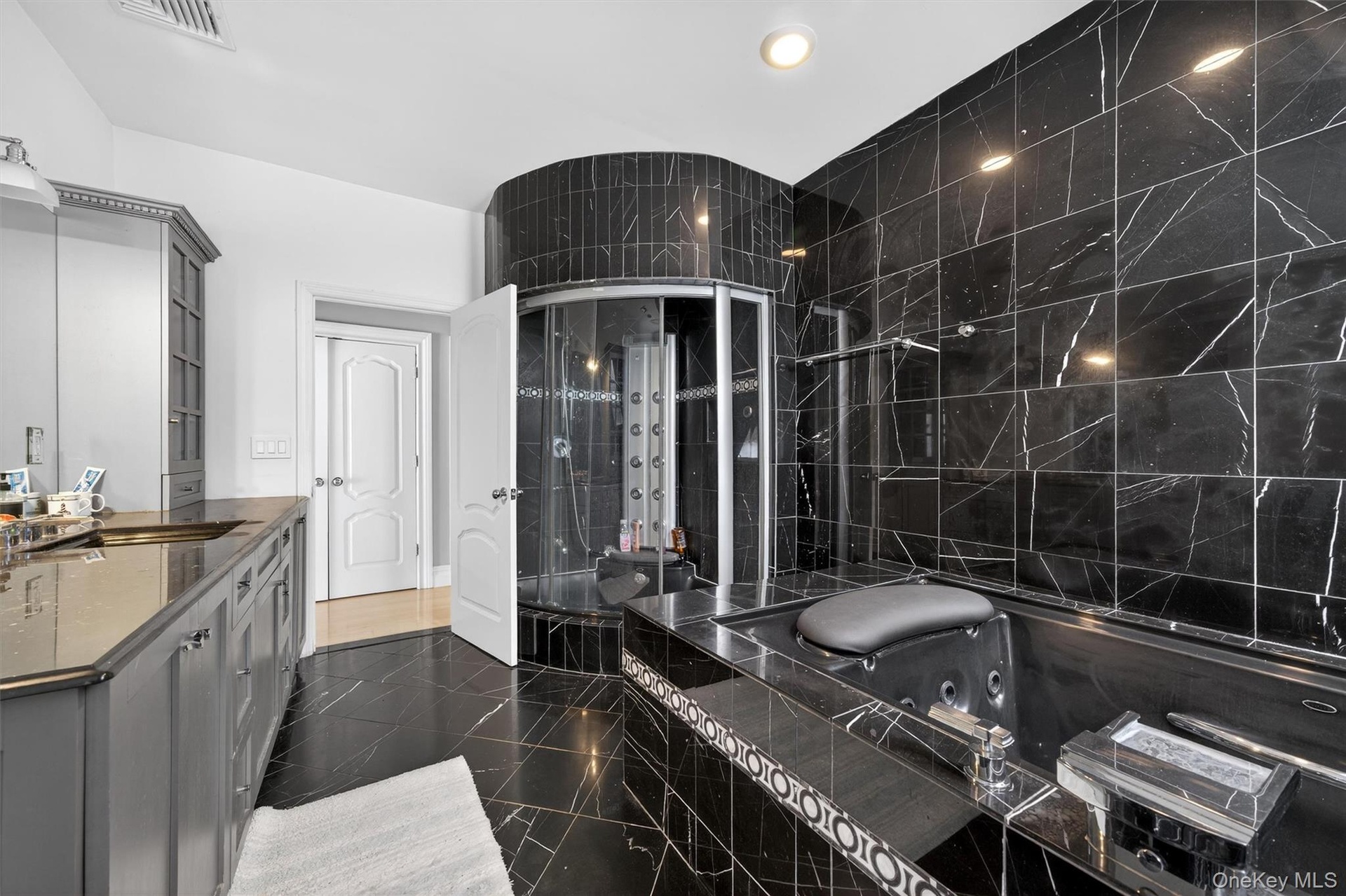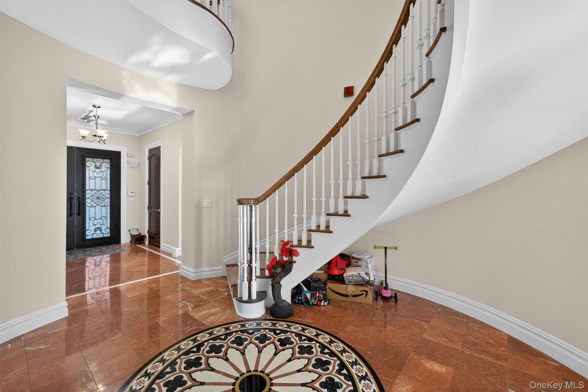 A delight awaits! Do you need space, privacy, and a prime location with top-of-the-line luxury upgrades? The house is a masterpiece and includes 2 apartments: one above the 4-bay garage and the other a ground-level efficiency apartment. Both have full kitchens and full bathrooms. The apartment above the garage has a nice deck overlooking the backyard. The views of the Schunnemunk Mountain Range are framed in the formal living room and first-floor bedroom. The first floor has 10 ft. ceilings, custom crown molding, trey ceilings,(heavy-thick) impressive leaded glass double doors, curved archway doorframes, hardwood and marble floors, a custom medalion inlay, custom stairway, floor-to-ceiling windows, bay windows, the largest dining room ever, bultlers pantry, and 2 fireplaces. Upstairs, the ceilings are also 10ft tall, and you will find TWO master suites with bay windows and a fireplace in each room. This is important - you have 2 laundry rooms, one in the basement and one on the second floor. There is a really cool circular room accessed by a catwalk overlooking the grand 2-story family room below. Let's go to the basement now: Oh My! 11 -12 FT ceilings, a wall of windows, 2 bedrooms, 2 full bathrooms, a media room, an exercise room, a huge room that can be a game room, a private entrance from outside, a library room, and so much storage room, you'll be lost. The property sits privately at the end of the cul-de-sac and shares the first part of the driveway with the neighbor (35 Balmoral is to the left). Nature is happy with the mature landscaping, beautiful trees, wildlife visits, and displays of stunning mountain views. The house was made to handle a lot of people. The mechanical systems, water treatment systems, and water storage/distribution were carefully planned and are impressive. The total number of bedrooms, bathrooms, and sq. ft. includes the 2 apartments. All interested visitors must be pre-approved financially before appointments.