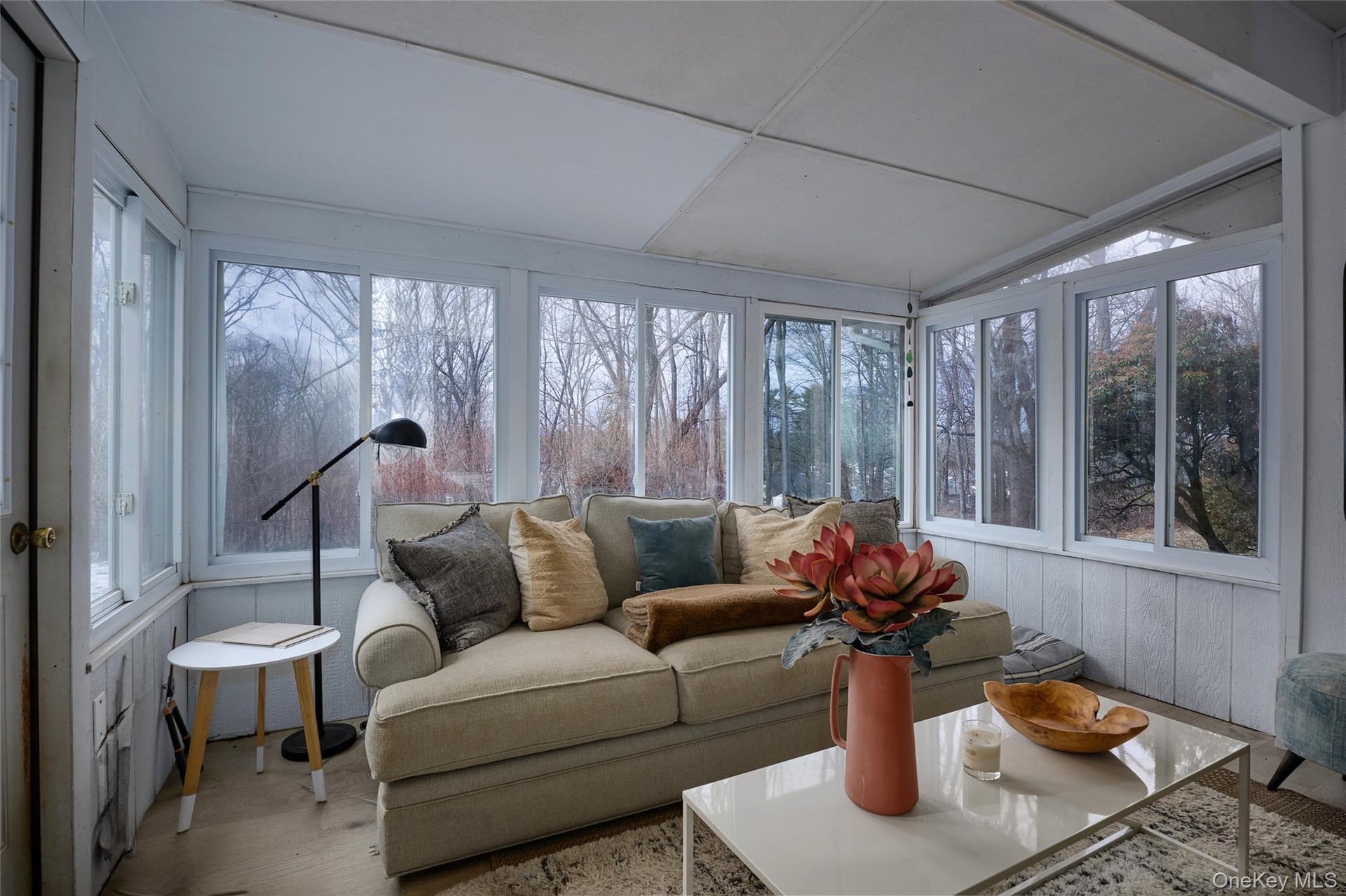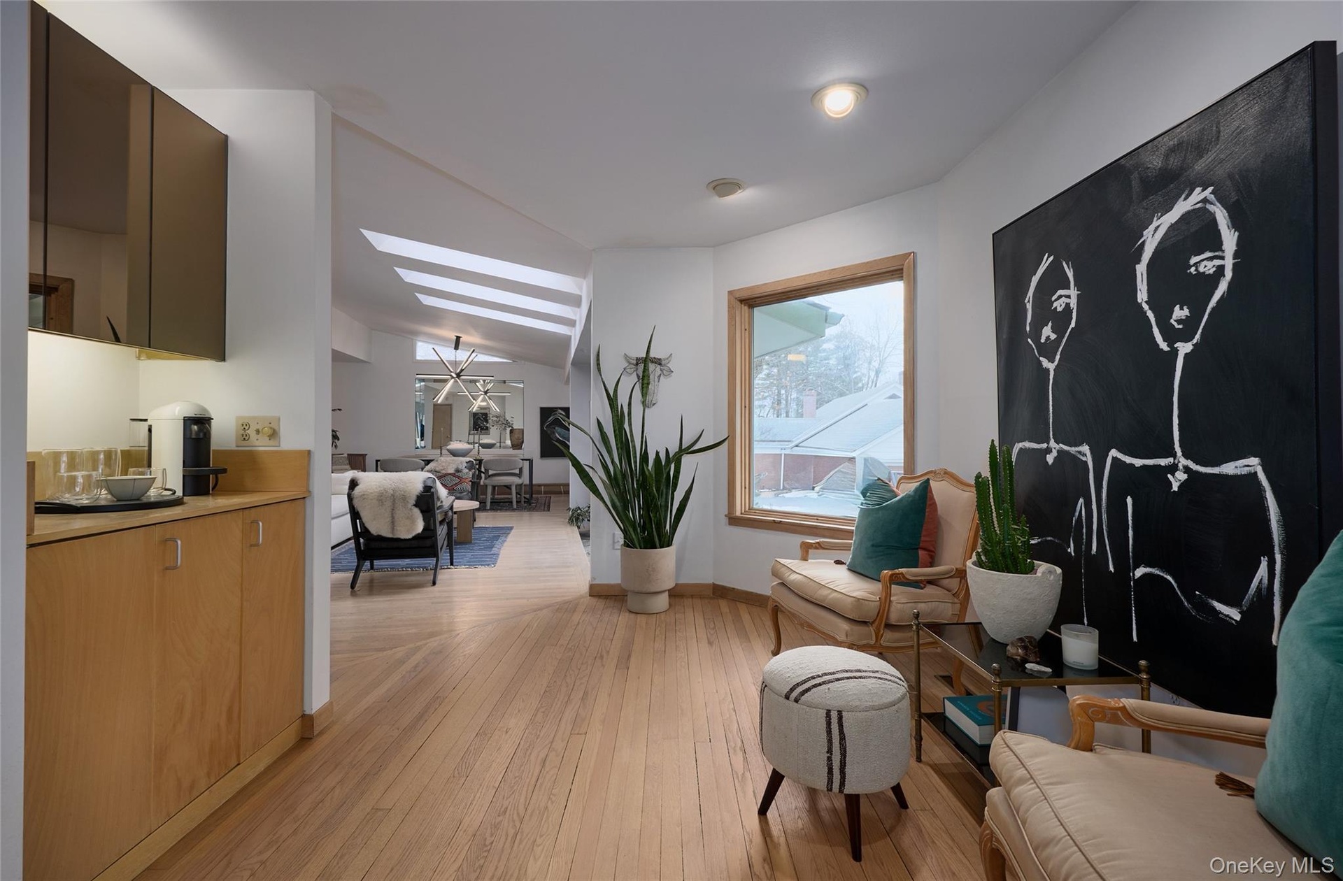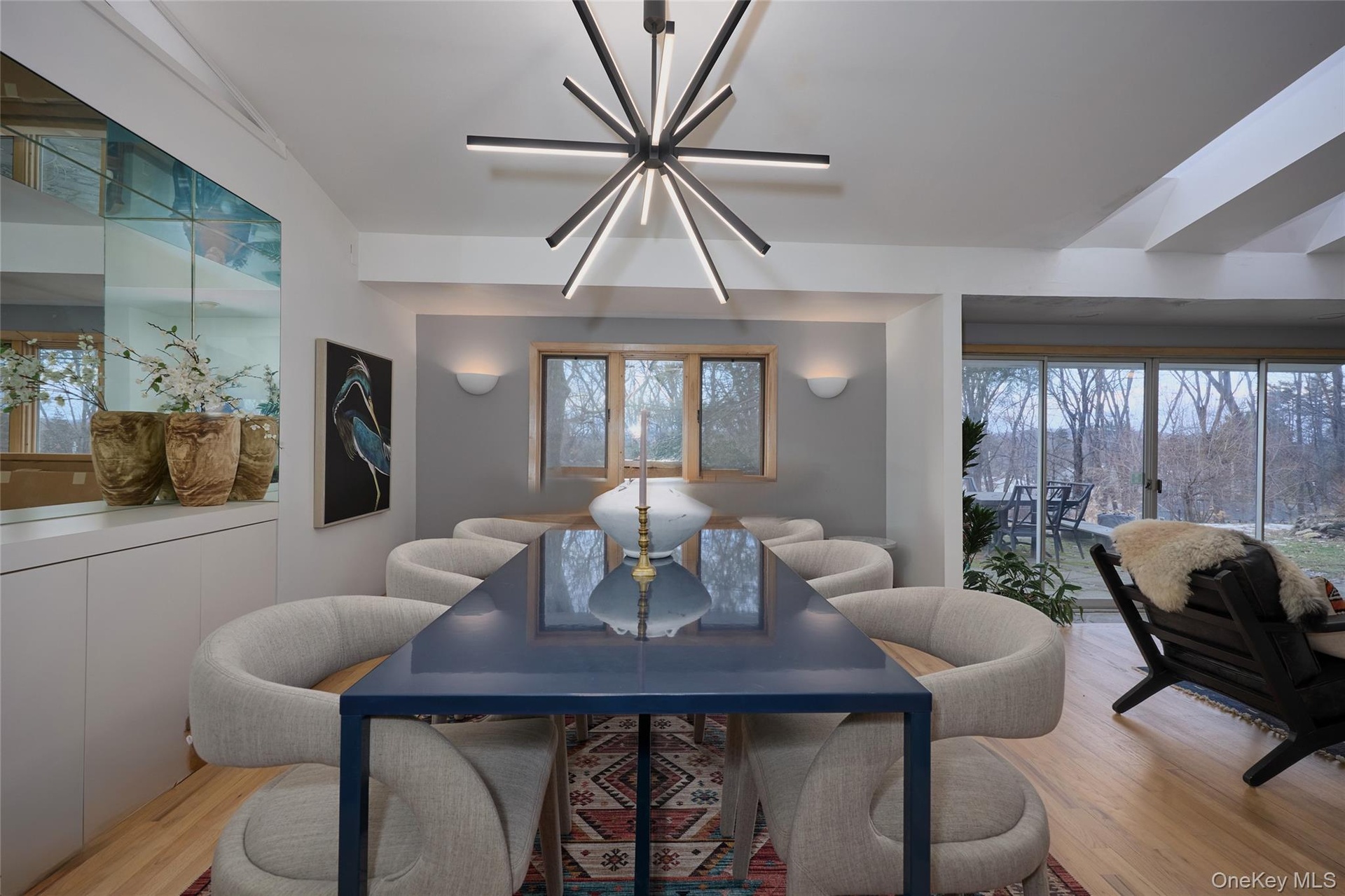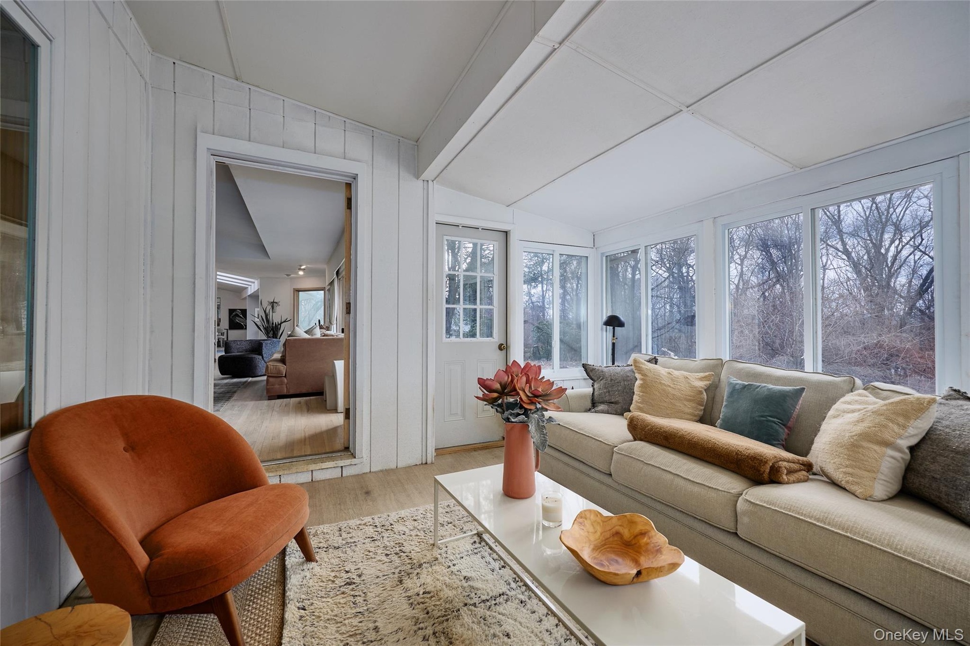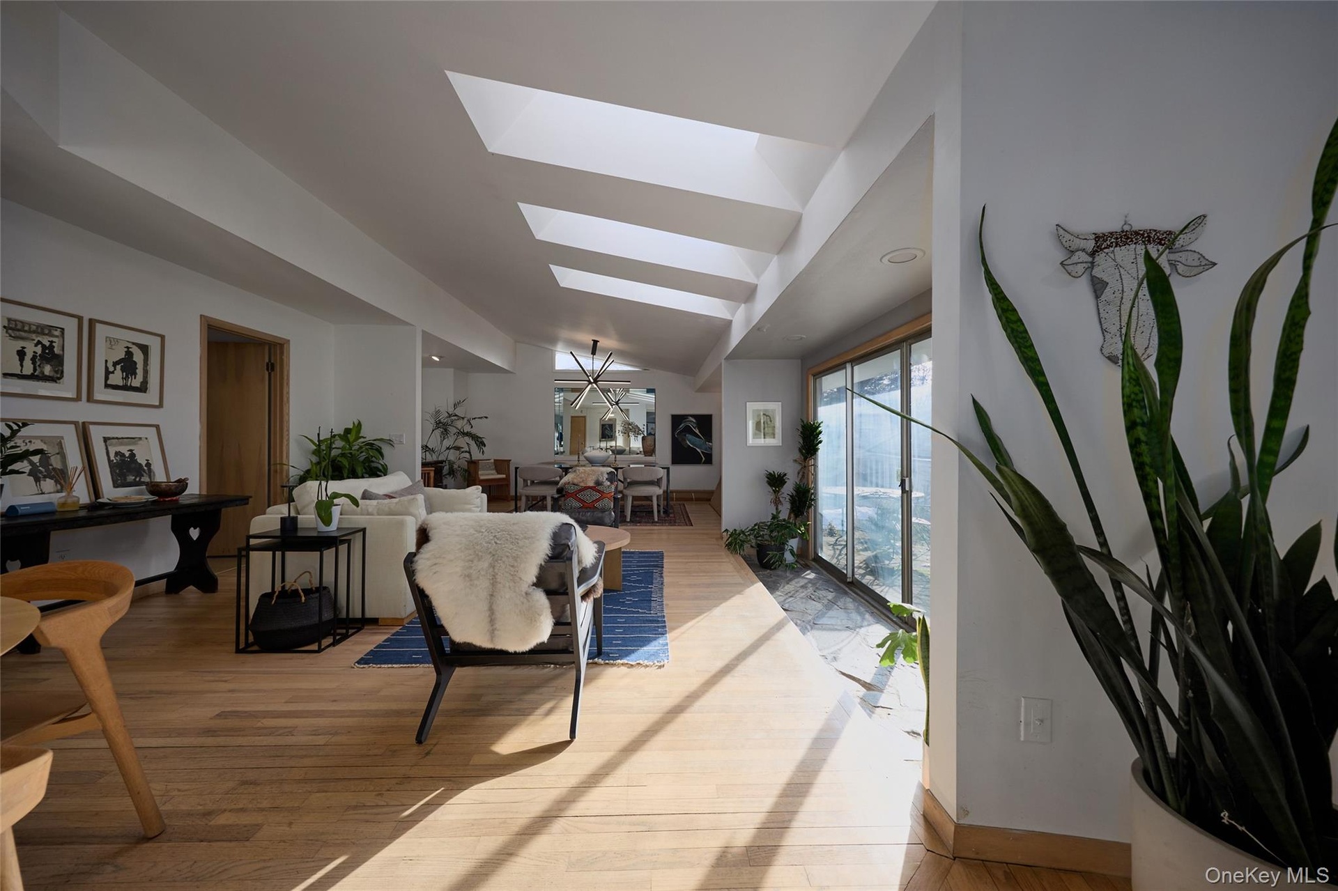 You could be living the dream on Poughkeepsie’s south side! Enjoy one level living in this expanded ranch with a Mid Century Modern vibe. The striking design harmoniously blends with nature, creating a private outdoor retreat. Situated on 1.5 acres with an in-ground pool, this home offers 4 bedrooms, 2 full and 2 half baths. This home perfectly balances space and privacy for you and your nearest and dearest. The open layout offers flexible space for entertaining, while smaller, thoughtfully placed nooks provide options for quiet retreat. The open floor plan showcases the oversized windows, sliders and skylights, filling the home with natural light and enhancing the connection between indoor and outdoor spaces. A separate entrance leads to a large room and 1/2 bath (can easily be adapted to a full bath), providing flexible space suitable for a home office, exercise area or additional living space. The living area, centered around a brick, gas fireplace, invites you to gather and create cherished memories during those chilly evenings. A well designed home office, complete with built-ins creates a functional work from home setting. The kitchen offers ample cabinet space, newer appliances, recessed lighting, tile countertops and a stone backsplash. The spacious primary bedroom suite includes access to the sun porch, built-in features, a large walk-in closet and both a full and half bath. The outdoor features include a stone patio ideal for entertaining or relaxing along with an in-ground pool surrounded by newly installed fencing. The views evolve with the seasons, with mature rhododendron and andromeda plantings enhancing the pool area. In the cooler months the landscape opens to reveal views of the mountains. All this plus municipal water, sewer and natural gas! Recent updates include updated electrical service, a converted gas fireplace with replaced flue, gas furnaces and high efficiency central air conditioning system, pool fencing and addition of a generator panel. Conveniently located near shopping, dining with close proximity to Rt. 9, Taconic State Parkway, Metro -North train station, Culinary Institute of America, colleges and hospitals.