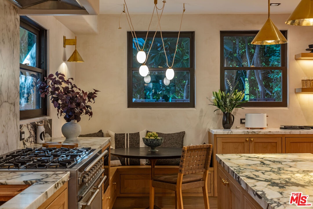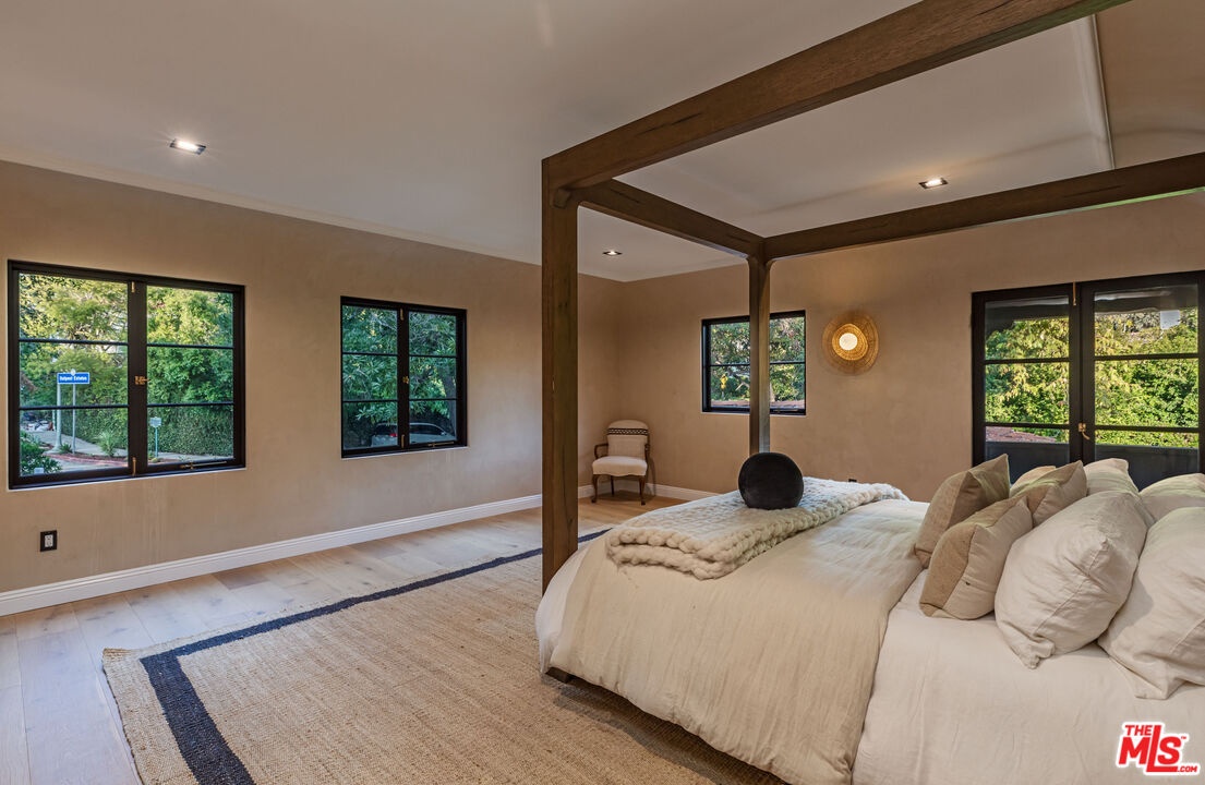 Perched within the coveted enclave of Outpost Estates, this extraordinary 1929 Spanish Colonial Revival is a living piece of Hollywood history, once the longtime home of Bob Barker and now exquisitely re-envisioned by renowned interior designer Julia Dempster, whose tasteful, timeless aesthetic spans international projects. Meticulously and historically restored over the course of two years, the renovation honors the home's original architectural integrity while seamlessly introducing modern-day luxury. Set on the legendary site of The Outpost, the adobe that marked Hollywood's very first residence, the property holds the rare distinction of Los Angeles Historic-Cultural Monument No. 673, representing an irreplaceable convergence of heritage, artistry, and refinement. Behind its timeless faade, the estate unfolds to include six bedrooms, six bathrooms, and a main-level powder room, along with an approximately 601-square-foot lower level featuring two flexible rooms ideal for guest or maid accommodations, gym, office, or creative use. Original architectural elements remain defining features throughout: arched doorways, stained-glass windows, a hand-painted fresco ceiling, a dramatic living room fireplace, and a richly wood-paneled library with a classic built-in bar. The interiors are layered with natural texture and warmth, incorporating Roman clay and lime wash finishes, wide-plank European oak flooring, custom white oak cabinetry, and handcrafted Zia tile.The kitchen serves as a central focal point, appointed with Thermador appliances and striking Viola Monet marble across the island, countertops, and backsplash. Two generously scaled primary suites offer exceptional privacy and flexibility, each with spa-style bathrooms, while an integrated infrared sauna enhances the home's sense of retreat. The grounds unfold as a private oasis, featuring a pool, expansive lawn, and a mature oak tree that anchors the landscape, evoking a resort-like atmosphere. Just moments from Runyon Canyon, the Sunset Strip, and the cultural pulse of Hollywood, this is a rare opportunity to own a historically significant estate defined by legacy, craftsmanship, and timeless appeal.