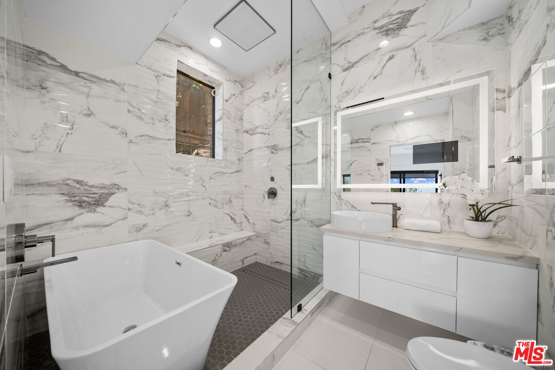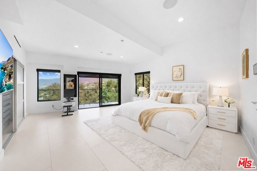 Elevated above Mulholland Drive in the Hollywood Hills, this architectural home showcases unobstructed views of the city lights, surrounding mountains, and the iconic Hollywood Sign. Designed for both relaxation and entertaining, the home features a seamless open floor plan with expansive sliding glass doors that invite natural light and breathtaking sunsets. The open-concept interiors feature a chef's kitchen with professional-grade appliances, an expansive island, and effortless flow into the living and dining spaces. The primary suite is a private sanctuary with a balcony, sitting area, custom walk-in closet, and a spa-level bath with soaking tub, glass-enclosed shower, heated floors and European finishes. Equipped with state-of-the-art Crestron smart home automation, the residence offers effortless control of automatic shades, multi-room speakers, dimmable lighting, climate, and security all from your device. For music enthusiasts, a professional-grade recording studio with full soundproofing provides the perfect environment to create and produce with ease. Additional features include fruit trees, and a reverse osmosis water system delivering purified alkaline water straight from the tap. With striking curb appeal, a beautifully landscaped front yard, a two-car garage, park 5 cars total in garage/drive way, EV charging, and a desirable location just moments from Runyon Canyon, the Hollywood Bowl, and the Sunset Strip, this residence embodies modern luxury in one of Los Angeles' most iconic settings. Must see in person. Views and space far better than photos. Call for your tour today .