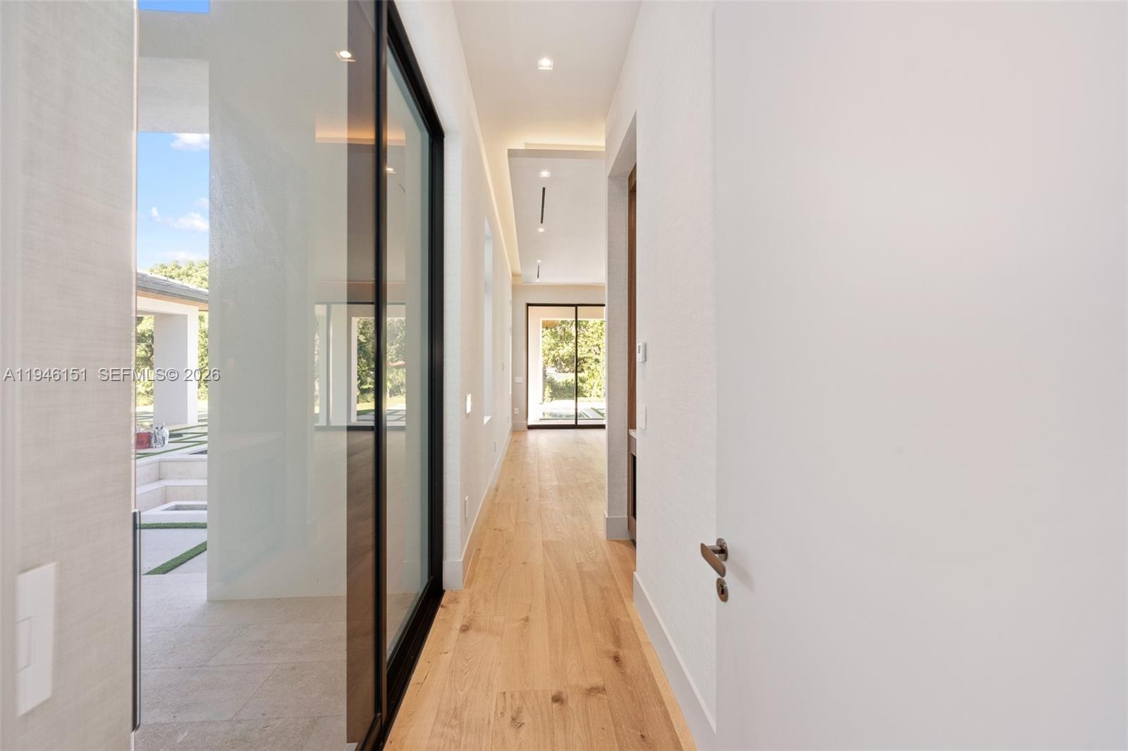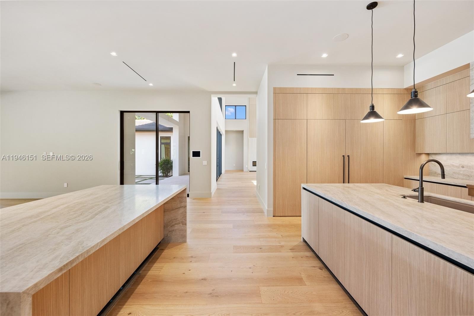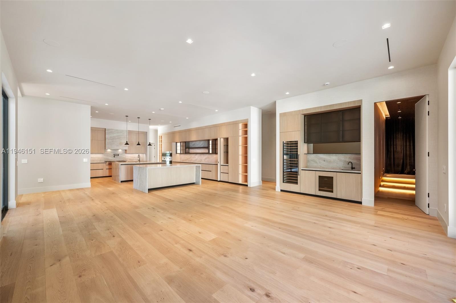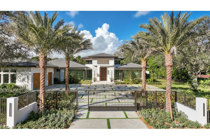 Exquisitely curated, privately gated, single-level estate featuring 7 Bedrooms 8.5 Baths including private primary wing with terrace, coffee bar, dual commodes, and outdoor shower. Chef’s kitchen showcases Pedini Italian cabinetry, Sub-Zero/Wolf appliances, dual islands, hidden pantry and coffee station, Taj Mahal quartzite counters and wine refrigeration. Italian lacquered doors throughout, Graff fixtures, Toto smart toilets, full home sound system, lighting, pool, and security controlled by phone / iPad. Custom theater with stadium seating and full bath. Award-winning Sensi Casa interiors featuring wide-plank oak floors, designer wallpaper, wood paneling, and linear fireplace. Resort-style pool with sunken fire-pit lounge, spa, lush landscaping, summer kitchen. Oversized 3-car garage. Separate Guest house/wellness retreat with custom sauna & cabana bath.