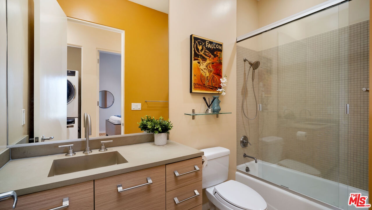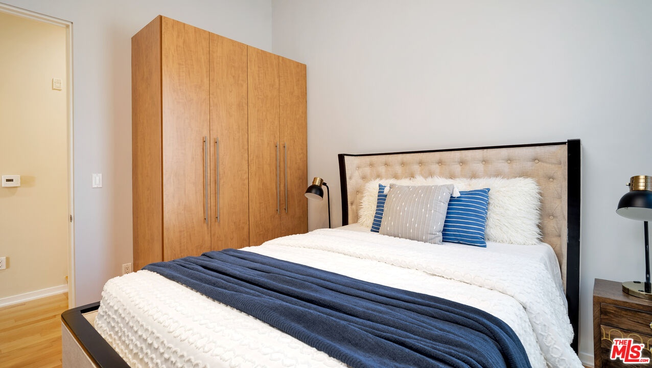 Award-winning architectural living awaits in this Habitat Pacific residence, completed in 2006. This front-facing, first-floor corner 2-bedroom, 2-bath condo offers no common walls, dramatic 11-foot ceilings, and an open floor plan. The interior blends modern sophistication with thoughtful functionality, featuring a sleek, contemporary kitchen with thoughtfully designed built-in storage, stone countertops, and stainless steel appliances, seamlessly connecting to the living and dining spaces anchored by a gas fireplace and warm hardwood flooring. At the entry, a utility closet provides smart storage. The spacious primary suite includes a generous sized closet designed as a blank canvas, ready to be tailored to your needs, along with a spa-like ensuite bath. The secondary bedroom offers flexibility for guests, a home office, or creative space. Indoor-outdoor living is enhanced by a private, courtyard-facing patio, ideal for relaxed mornings or evenings. Additional highlights include in-unit laundry, ample storage throughout, two-car tandem parking in a gated subterranean garage with EV charging, guest parking, and a private storage cage conveniently located near the elevator. HOA dues include earthquake insurance. Perfectly positioned in the heart of Mar Vista, near the Mar Vista Farmers Market, and minutes to Venice, Silicon Beach, Playa Vista, Culver City, and Santa Monica. A refined architectural home offering privacy, convenience, and quintessential Westside living.