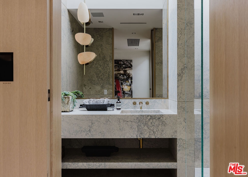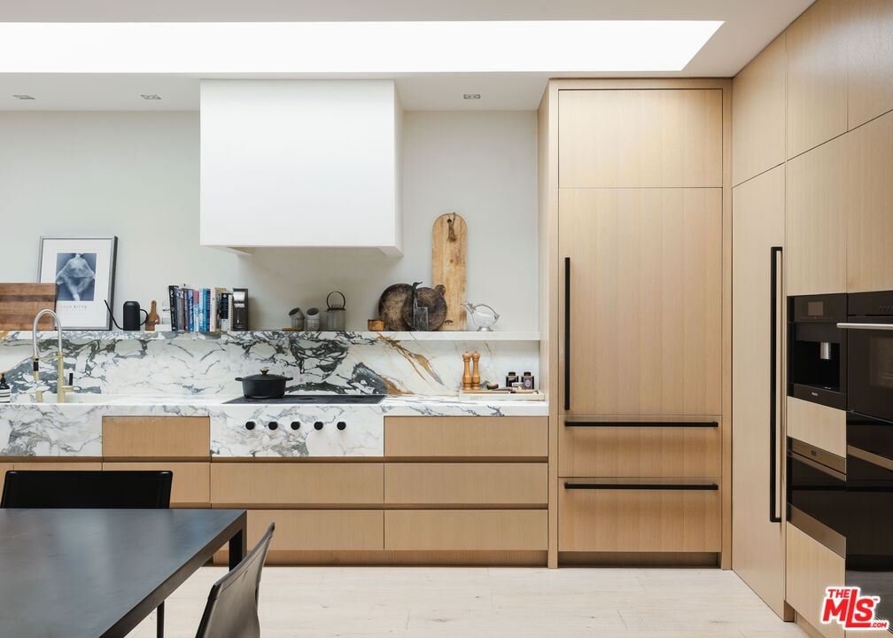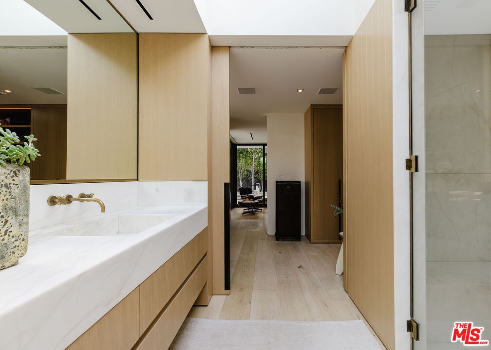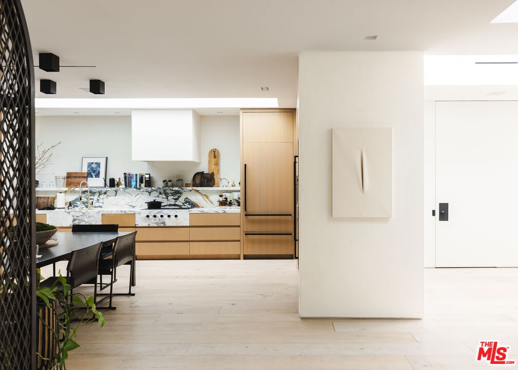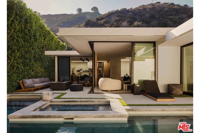 North of Sunset and moments from the Beverly Hills Hotel, 1952 North Beverly Drive is a single-level architectural residence where exceptional materials, privacy, and indoor/outdoor living converge, finished to an international standard. Designed by Gehry Partners disciple Yoram LePair, walls of glass dissolve boundaries between interior and landscape, delivering rare single-level living with gallery-level restraint and global architectural discipline. Conceived as a horizontal private pavilion, the residence offers the ease of penthouse livingwithout elevators, shared walls, or compromise. The living program unfolds entirely on one level, offering scale without excess and a level of finish rarely achieved in new construction. An open Kitchen and Dining environment features Sub-Zero, Wolf, and Miele appliances with 300+ bottle wine storage, alongside a full wet bar and custom cabinetry in Saint Laurent marble, blackened steel, and charcoal-stained oak. The formal living room opens directly to the pool and hillside setting, equally suited for entertaining or quiet retreat. The Primary Suite functions as a private apartment within the home, defined by volume and discretion. Weighted pocketing doors introduce a stone and rift oak bath and a truly couples-sized dressing room with dual valet areas and extensive shoe storage. A secondary bedroom currently functions as a den with a concealed guest bath, maintaining the home's clean architectural narrative. Outdoor spaces are conceived as everyday living areas, including an open-air living room with granite firepit, a heated saltwater pool and spa finished in Japanese ceramic tile, and an additional gas fireplace outside the Primary Suite. A discreet 14-piece hidden sound system delivers high-level audio throughout the grounds. Bronzed metal glazing, Italian Marmorino plaster, white rift oak paneling, and wide-plank French white oak floors define the interiors. Full home automation includes Control4 and comprehensive Lutron lighting. A permitted, separately addressed ADU provides a fully independent guest suite-ideal for extended stays or staff. An understated facade framed by natural landscape design and an 8-foot louvered steel gate establishes privacy and discretion, with no preview of the architectural depth and material rigor within. Equally compelling as a primary residence or refined international retreat, this is a rare opportunity to acquire a fully realized, architecturally significant single-level home in Beverly Hills P.O.