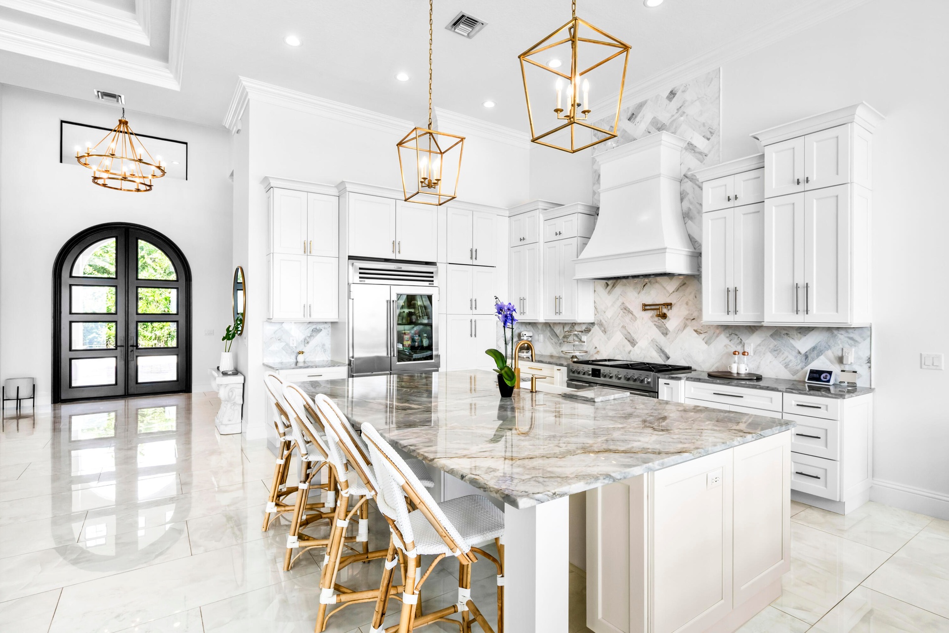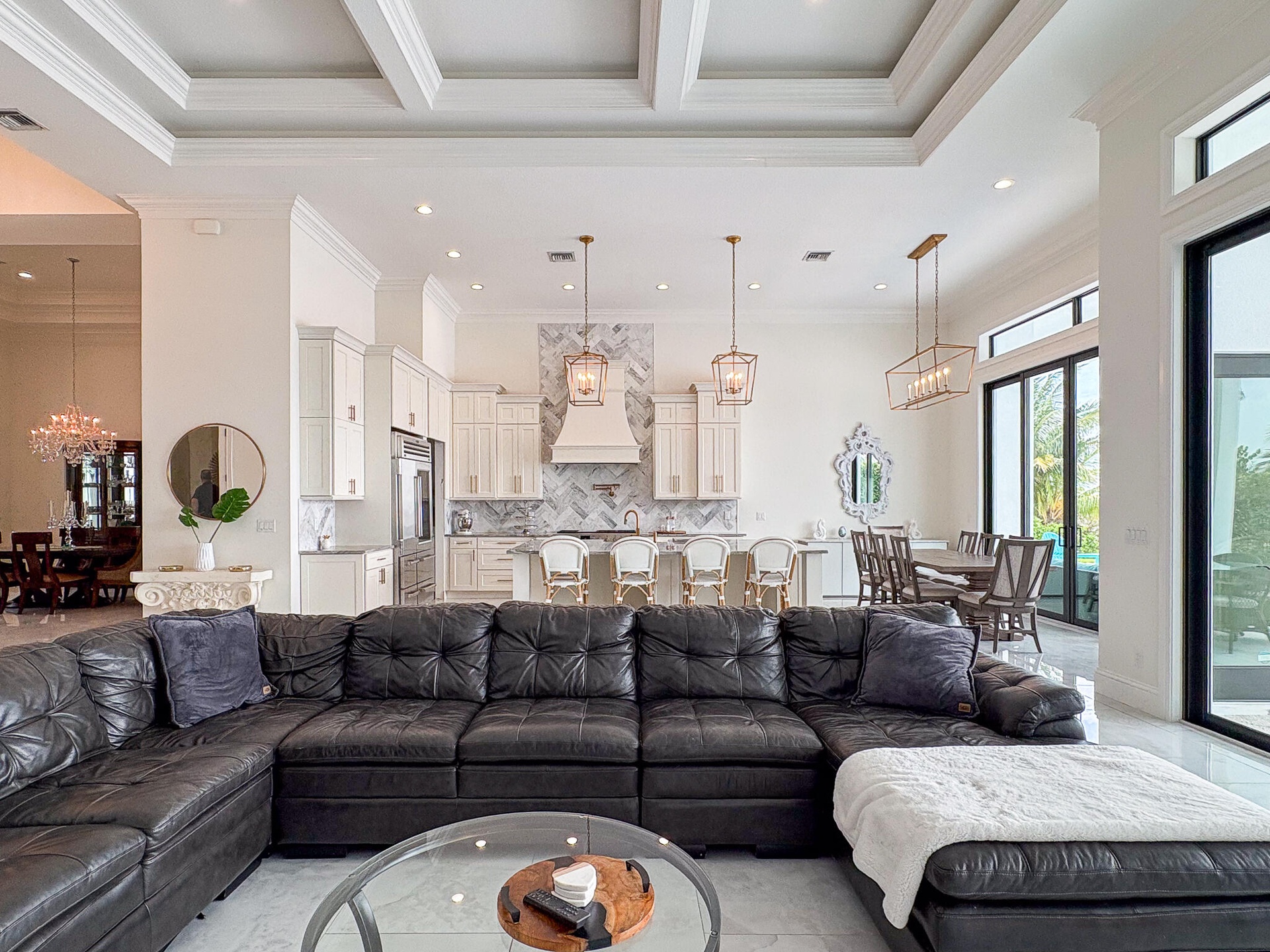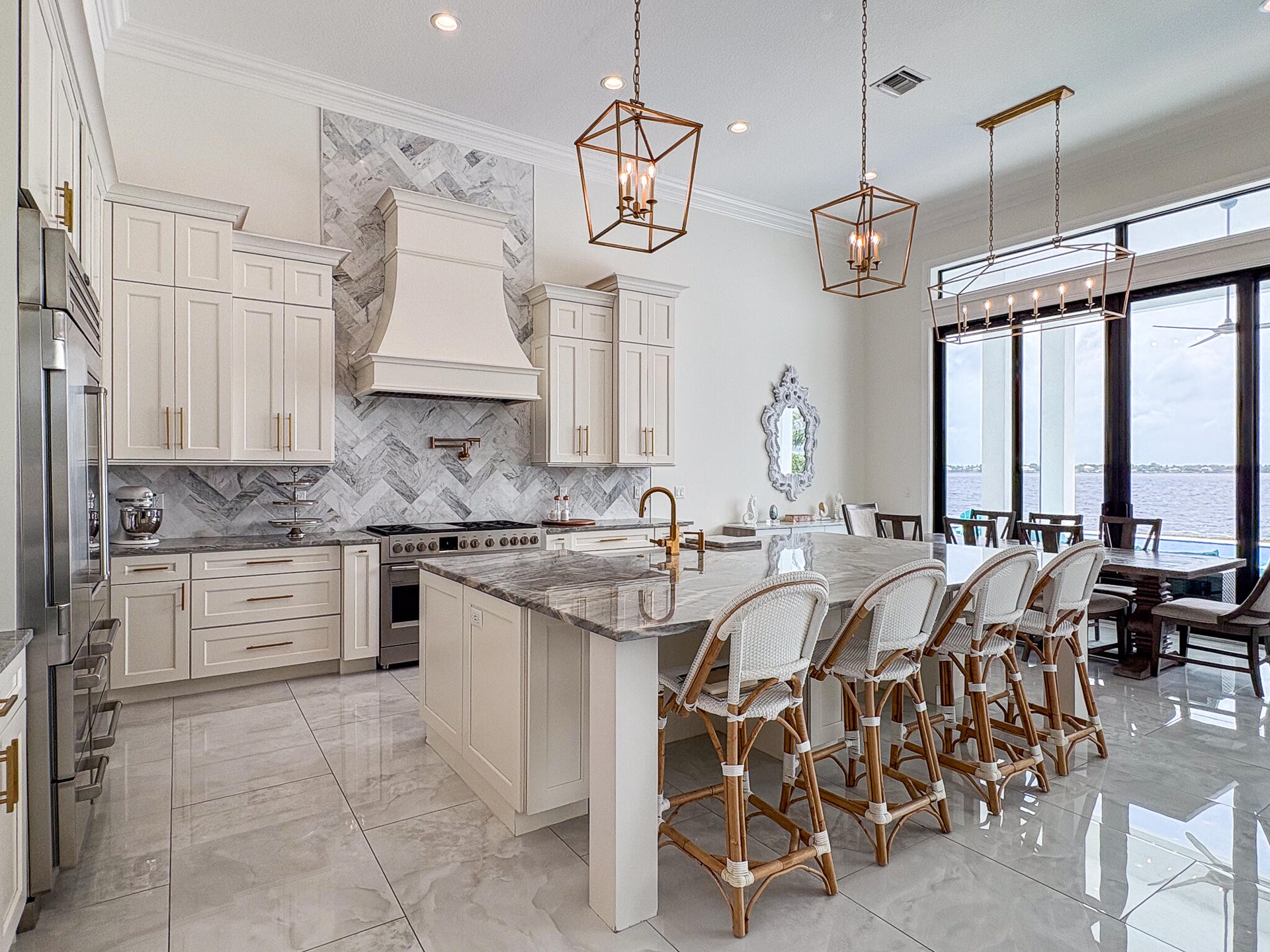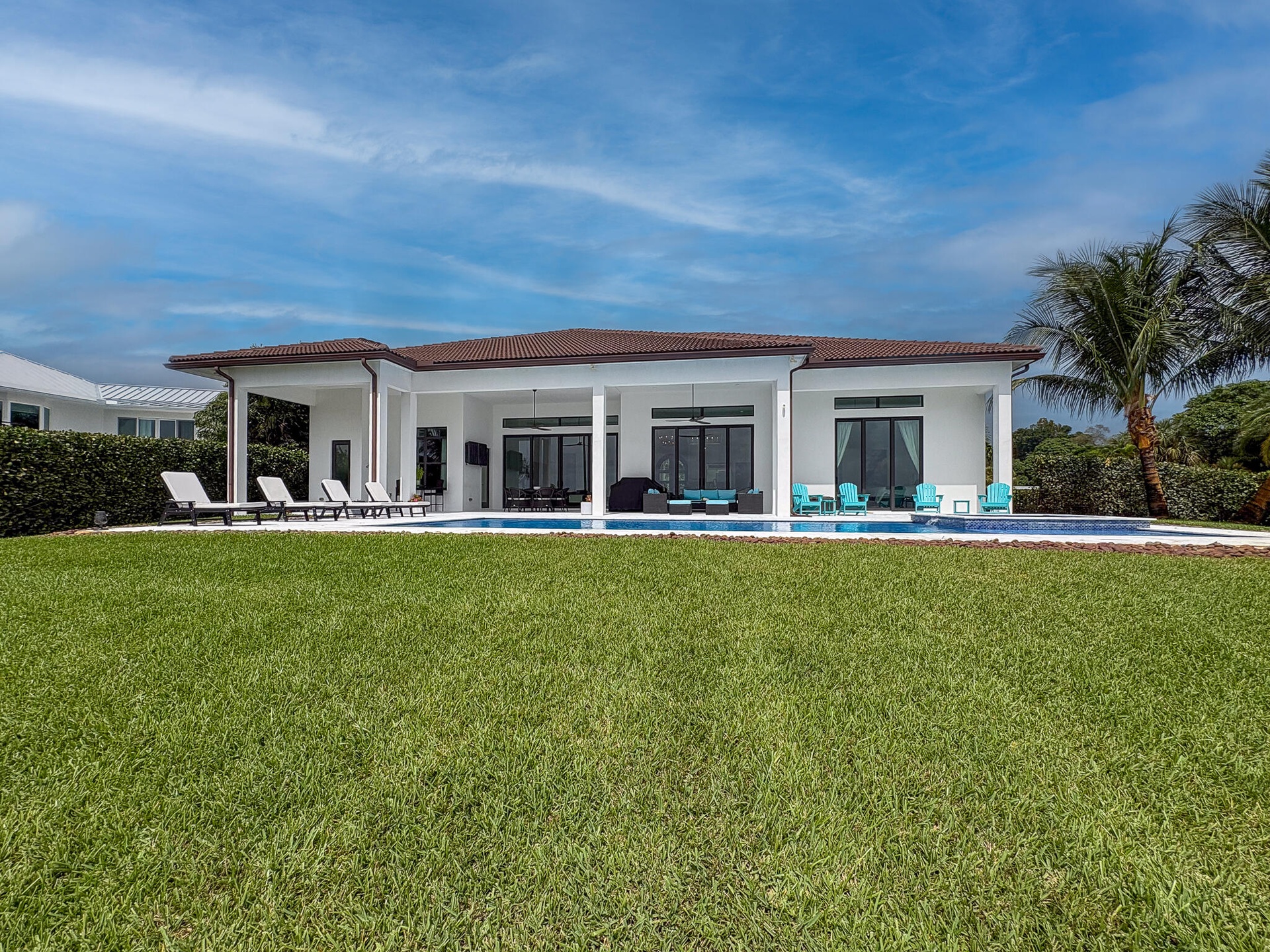 FIRST TIME ON MARKET! Premier waterfront location built in 2020. Modern-Mediterranean home close to downtown Jensen Beach and Stuart. Spectacular southern exposure and wide-water view. Direct ocean access minutes from the St. Lucie Inlet. No low bridges - a boater's dream. High coffered ceilings, four spacious bedrooms plus a den, four full baths, and a cabana bath designed for everyday comfort and effortless entertaining. Gourmet chef's kitchen, top notch appliances, quartzite counters, custom cabinetry, walk-in pantry. Private waterfront with covered dock, two high-speed boat lifts, personal watercraft lift, and lowered platform for kayaks and paddle boards. Room for your yacht or sport-fish. Heated saltwater pool, spa tub, sun shelf, and iridescent glass tile. 3-car garage, impact windows & sliders, huge covered patio, backup generator, 1,000 lb in-ground propane tank. Perfect balance of comfort, convenience, and breathtaking waterfront views. Don't miss your chance to own it!