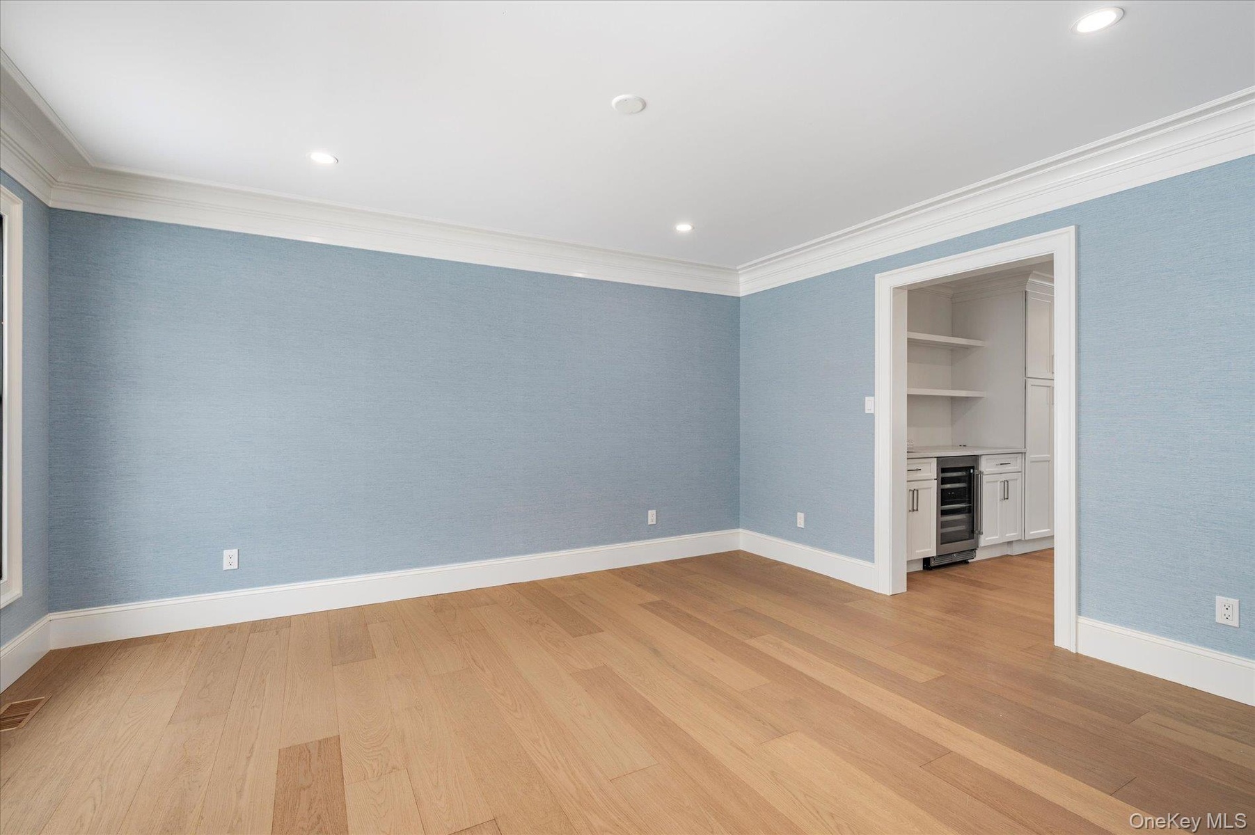 The first floor is designed for both everyday living and elegant entertaining. A gracious entry foyer sets the tone, leading into a sun-filled open-concept layout with impeccable custom molding and millwork details throughout. The expansive family room with fireplace serves as the heart of the home, seamlessly flowing into the dining area and chef’s kitchen. The kitchen is anchored by a massive center island, premium Sub-Zero and Wolf appliances, and a highly desirable walk-in pantry. Also on the first floor is a luxurious primary suite, offering flexibility and convenience, along with an additional powder room for guests.