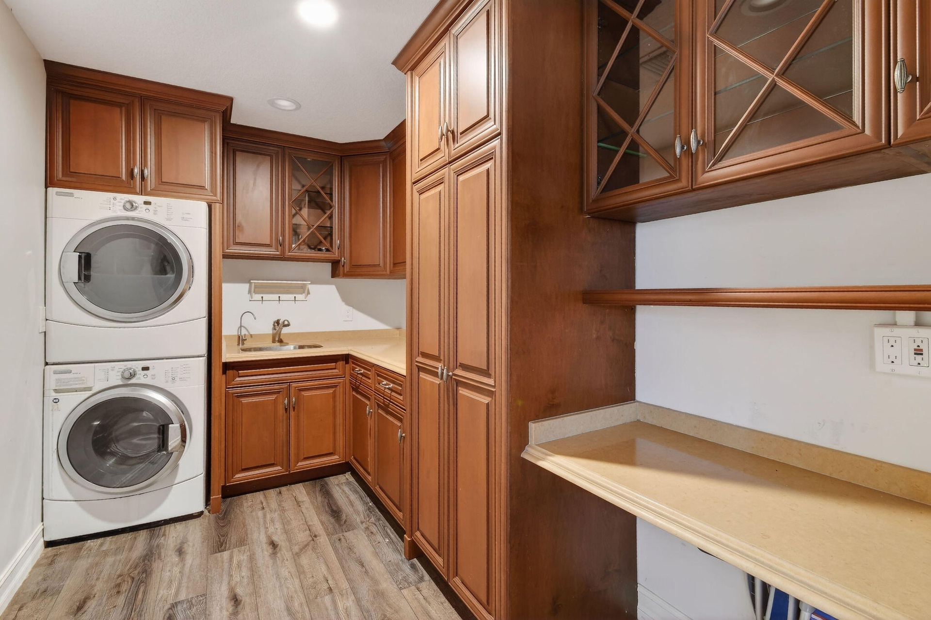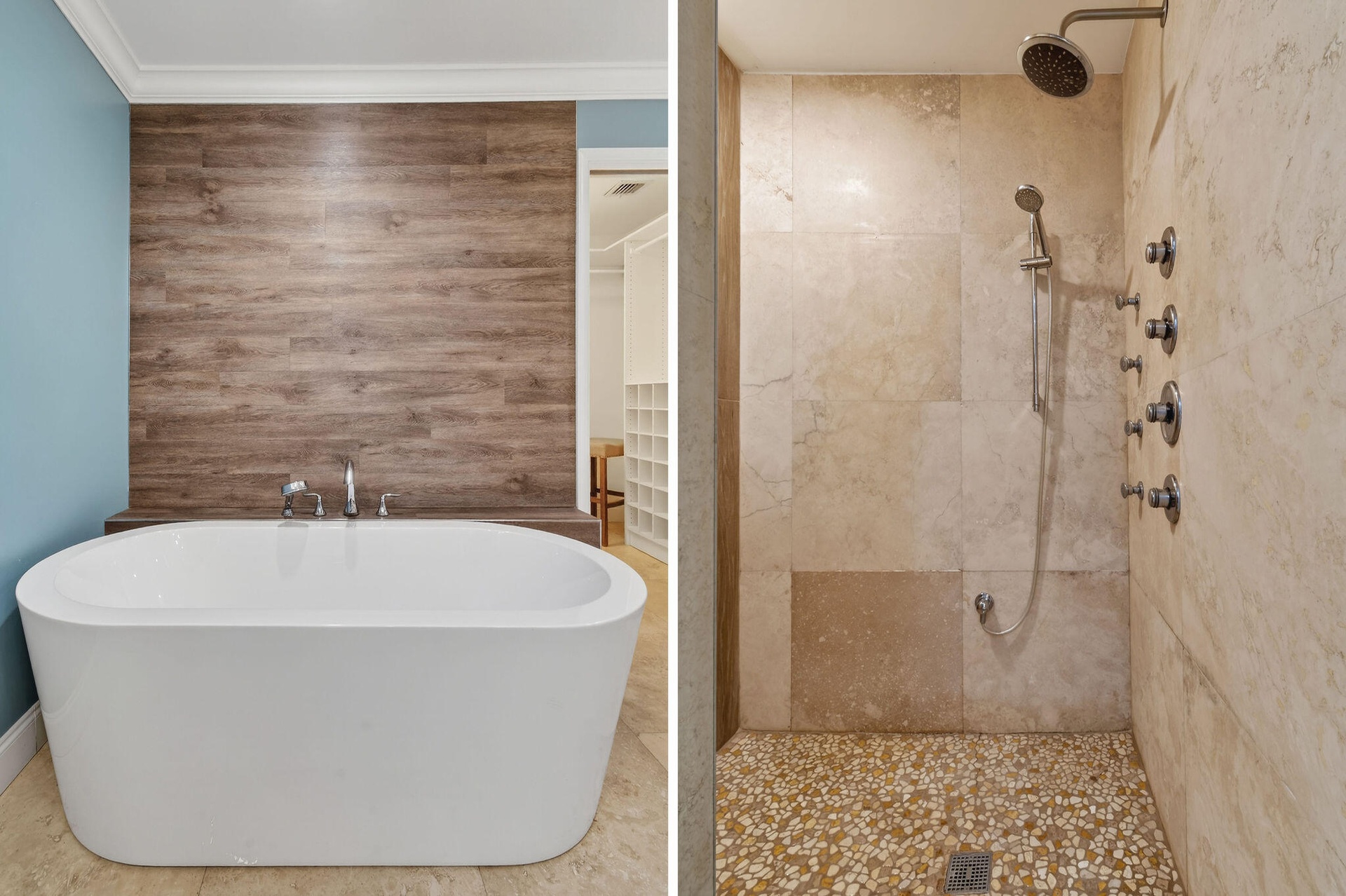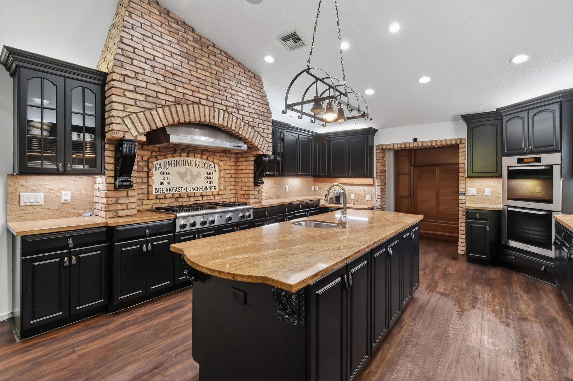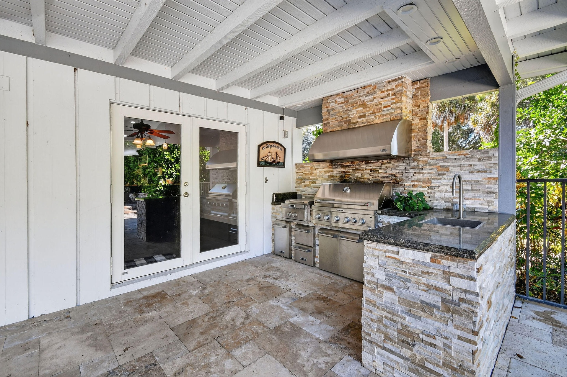 Set on 1.69 acres in 'Loxahatchee Groves', this home offers privacy, generous space, and comfortable indoor and outdoor living. The living room features impact windows, vaulted ceilings, a wood-burning fireplace, and a bar area with a wine cooler, icemaker, wet bar, and built-in TV. The kitchen includes a center island with sink and electric access, a six-burner Thermador gas range, Miele dual wall ovens, and Subzero refrigerator and freezer. Plantation shutters and laminate flooring run throughout much of the home. The primary suite offers a spacious sitting area, custom built-in closet wall, and a beautifully finished bathroom with a garden tub, walk-in shower with glass enclosure, mosaic tile accents, and a vanity at the sink. The fourth bedroom serves well as a VIP suite, featuring recessed lighting, a walk-in shower, a garden tub, dual sinks, and built-in closet storage. Bedrooms two and three include recessed lighting and built-in cabinetry, and they share a hallway bathroom with a tub and shower combination. The laundry room includes a sink, folding space, and a built-in workspace. Outdoor living is a highlight, with a covered patio, swimming pool with sun shelf and spa, an outdoor kitchen with KitchenAid grill and cooktop, a fire pit area, a dog run, a sand volleyball court, and multiple storage buildings. The detached three-bay garage, paved driveway, and RV parking provide flexibility for vehicles, equipment, or hobbies. Impact glass and thoughtful interior features complete this versatile property, ideal for those looking for room to spread out and enjoy a relaxed country lifestyle.