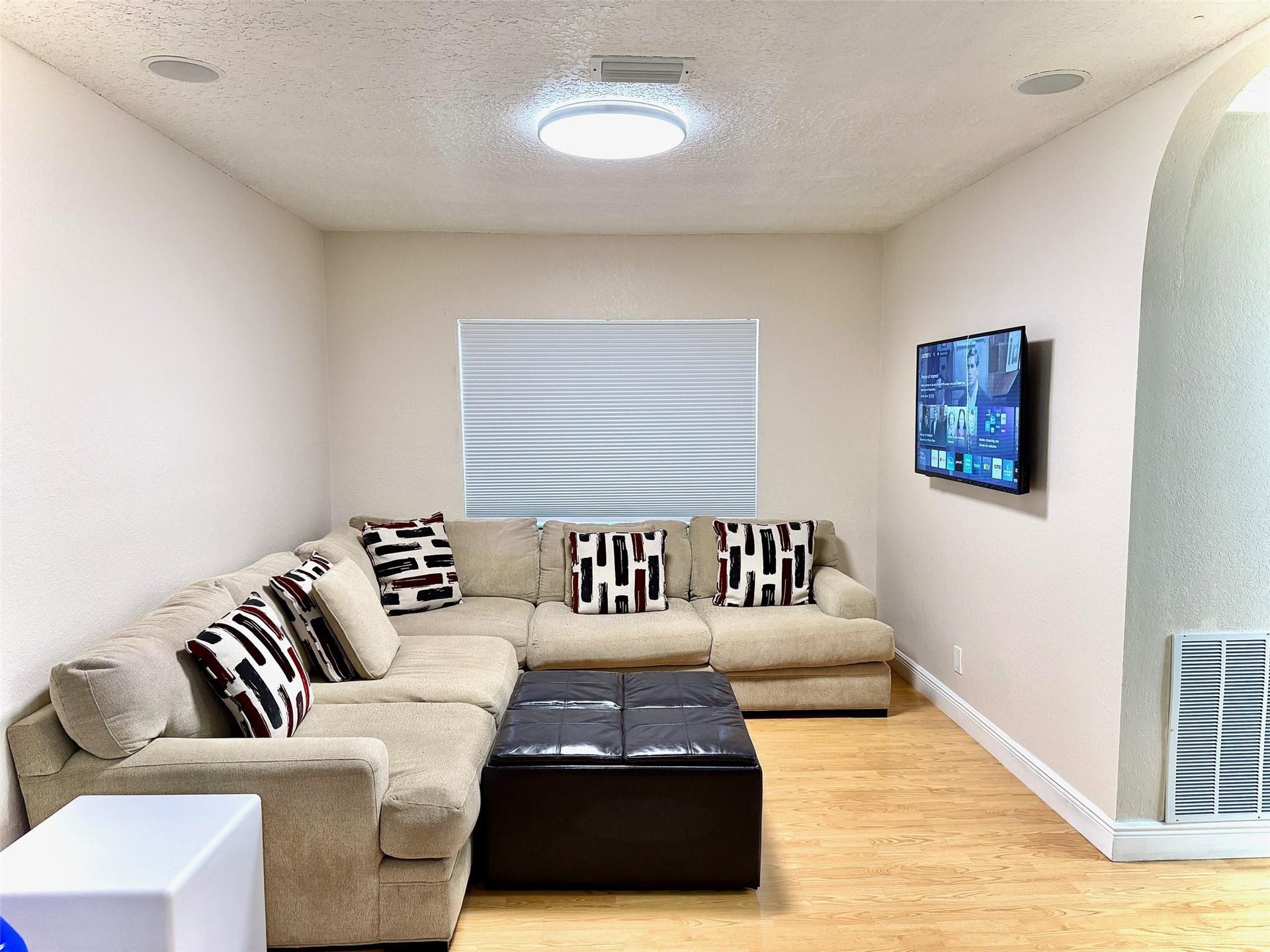Amazing custom built home nestled within a picturesque, oak-lined community, this spacious 4 bed, 3.5 bath corner pool home sits on a builder’s acre and offers the perfect blend of comfort and charm. The open floor plan is ideal for both everyday living & entertaining. Notable features include impact windows & doors and garage door, vaulted ceilings, dual A/C systems, LED lighting, and surround sound both inside & out. The updated kitchen showcases quartz countertops, new KitchenAid appliances, and a pantry with coffee bar. Primary bathroom has been tastefully updated, including a soaking tub. Additional highlights include a wet bar entertainment area, Ring camera/alarm, Rachio smart sprinkler, pool waterfall, covered patio with cabana bath and a private backyard.
