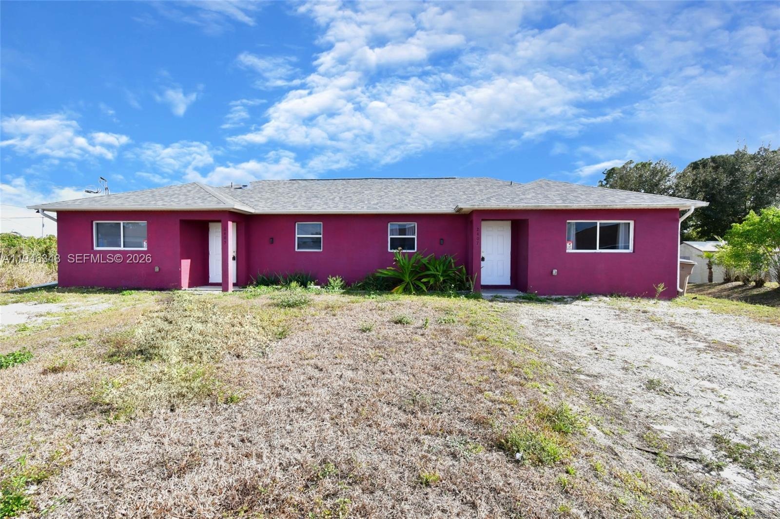 Check out this duplex nestled between SR 82 and Westminster Golf Club. Brand new top quality roof in 2023 and one side new A/C in 2024. Only 3 blocks to the nearly new Gateway High School. Ideal access to Fort Myers. Each side has just under complete appliance packages. One side tile throughout and the other durable plank vinyl. Solid concrete block construction. Live in one side and rent out the other. Or investment opportunity for two rental units. Brand new construction all around. Hurry before this one gets away.