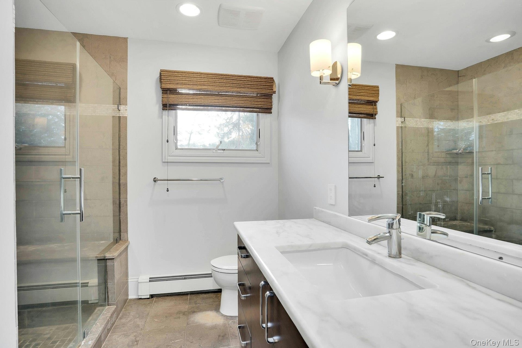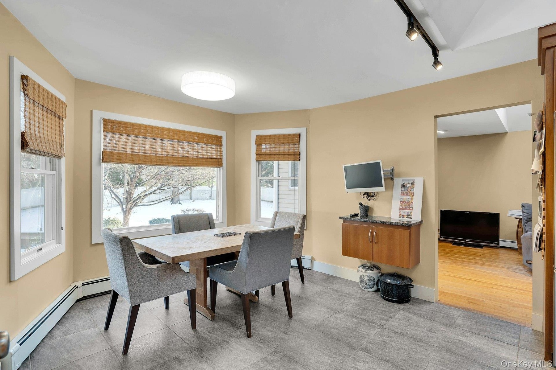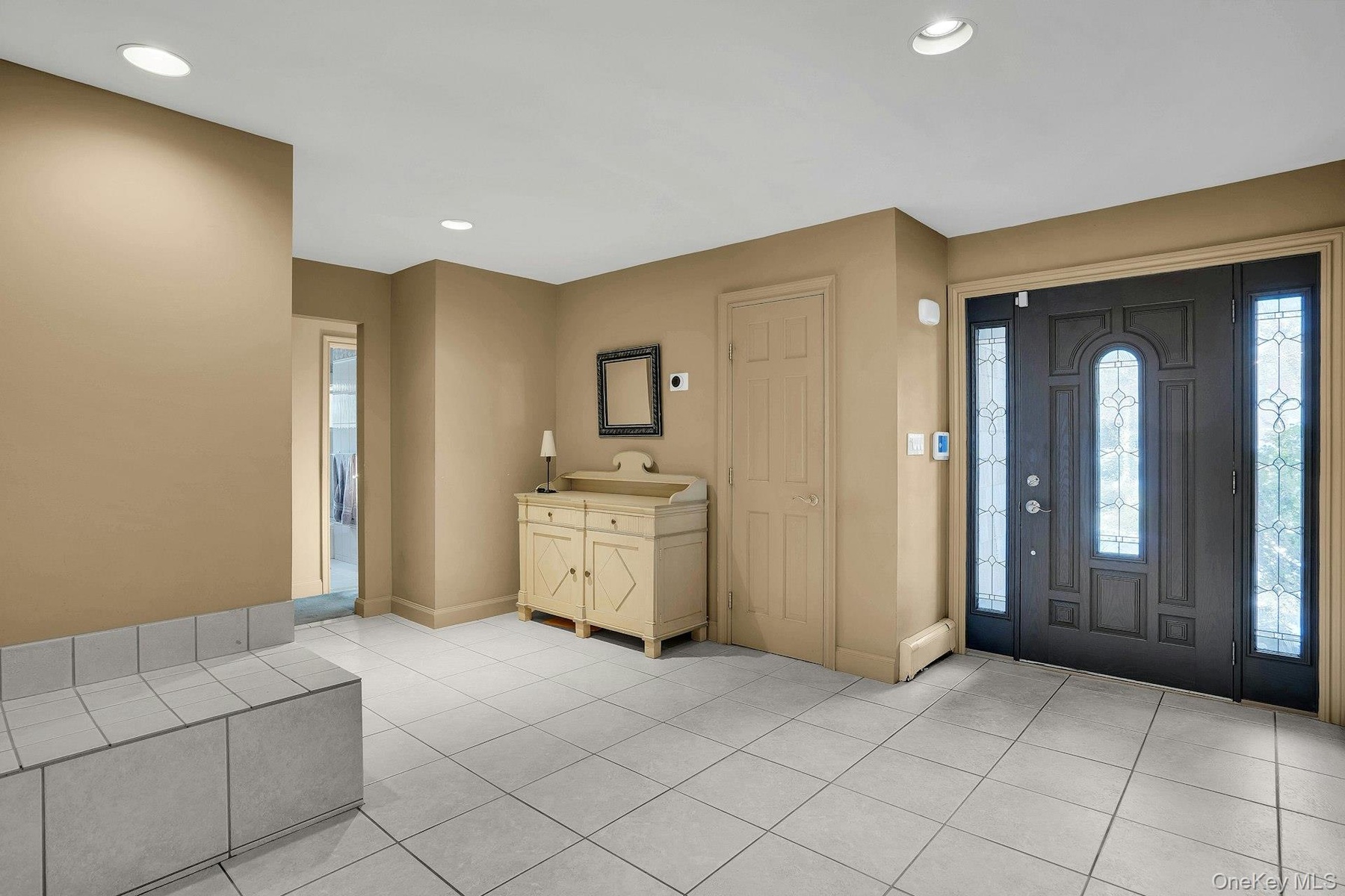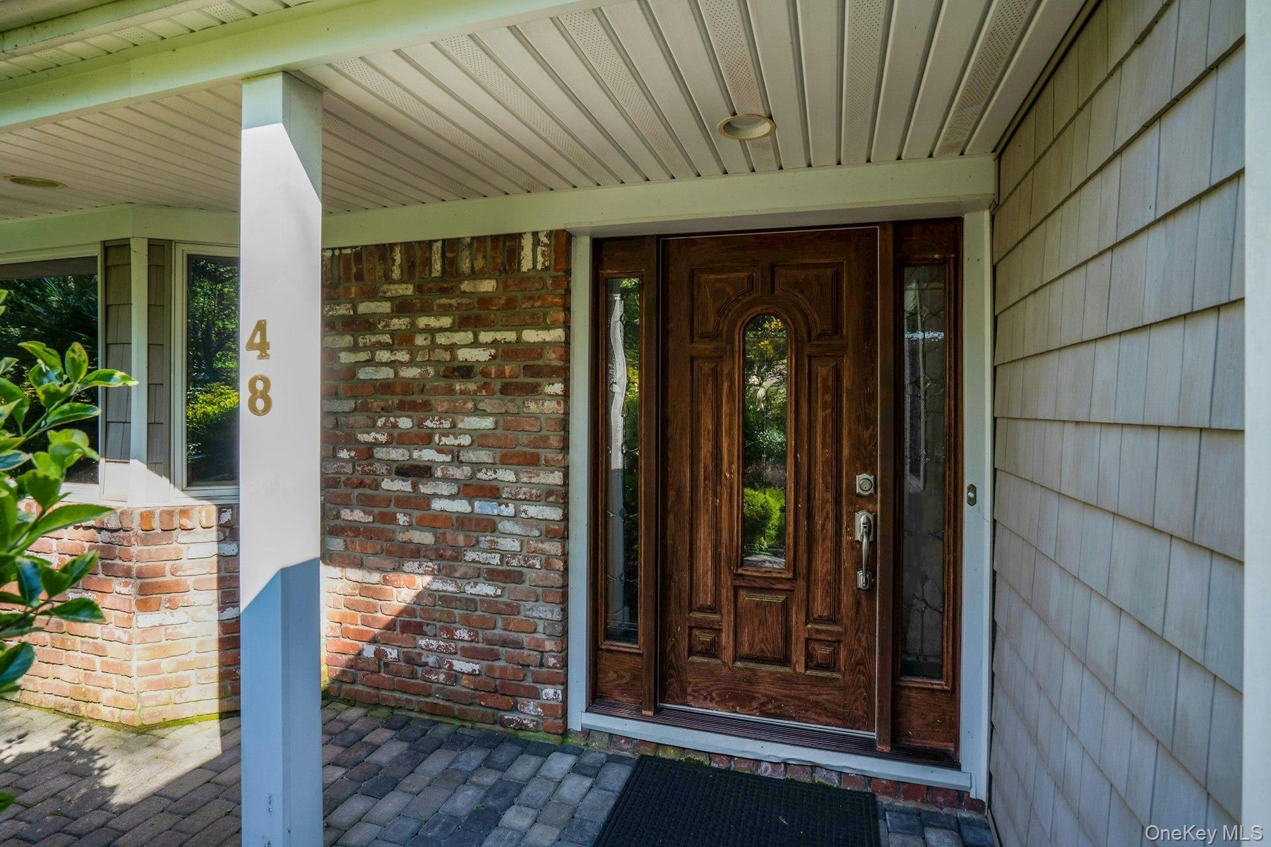 This is a lovely home in a great location in Village on the Hill in Dix Hills. Professionally landscaped home sits on .59 acres with a long driveway, fully fenced yard and in-ground pool. First enter the large foyer with coat closet. This ranch flows like a colonial from room to room. The formal living room has a fabulous window and cathedral ceilings. It flows into the formal dining room which also has a beautiful picture window. The kitchen features custom cabinets and stainless appliances, such as a Thermador gas cooktop, Dacor wall oven, Dacor warming drawer, Dacor microwave, Kitchenaid dishwasher (5 yrs) and a NEW LG refrigerator. The kitchen table overlooks the yard and there is the first of 3 skylights. The family room has a woodburning brick fireplace that brings warmth into the room and a fabulous skylight. The sliders go out to the patio. The primary bedroom was expanded and features vaulted ceilings, 2 walk-in-closets, architctural features and an ensuite bathroom with skylight. A true get away oasis. The best part is that there is also a small office in the bedroom with a glass French door. So pretty. The other 2 bedrooms are nice sizes and the main bathroom has a tub. The basement is newly renovated with a den, storage room and utility room. The 2 car garage enters into the basement at ground floor level. The beautiful yard features a heated, salt-water pool with a vinyl liner (2021). The electric heater was put in in 2024. The rest of the yard has a great lawn for activities, it is fully fenced and of course, has a brand new patio off of the kitchen and den. This is the one you have been looking for! Whirlpool Washer and Dryer (5 yrs), Roof 17 yrs, Cesspool original and pumped 5 years ago. 200 Amp, CAC (16 yrs), Boiler (14 yrs), Hot Water Heater (16 yrs) Chandelier in primary bedroom foyer is excluded.