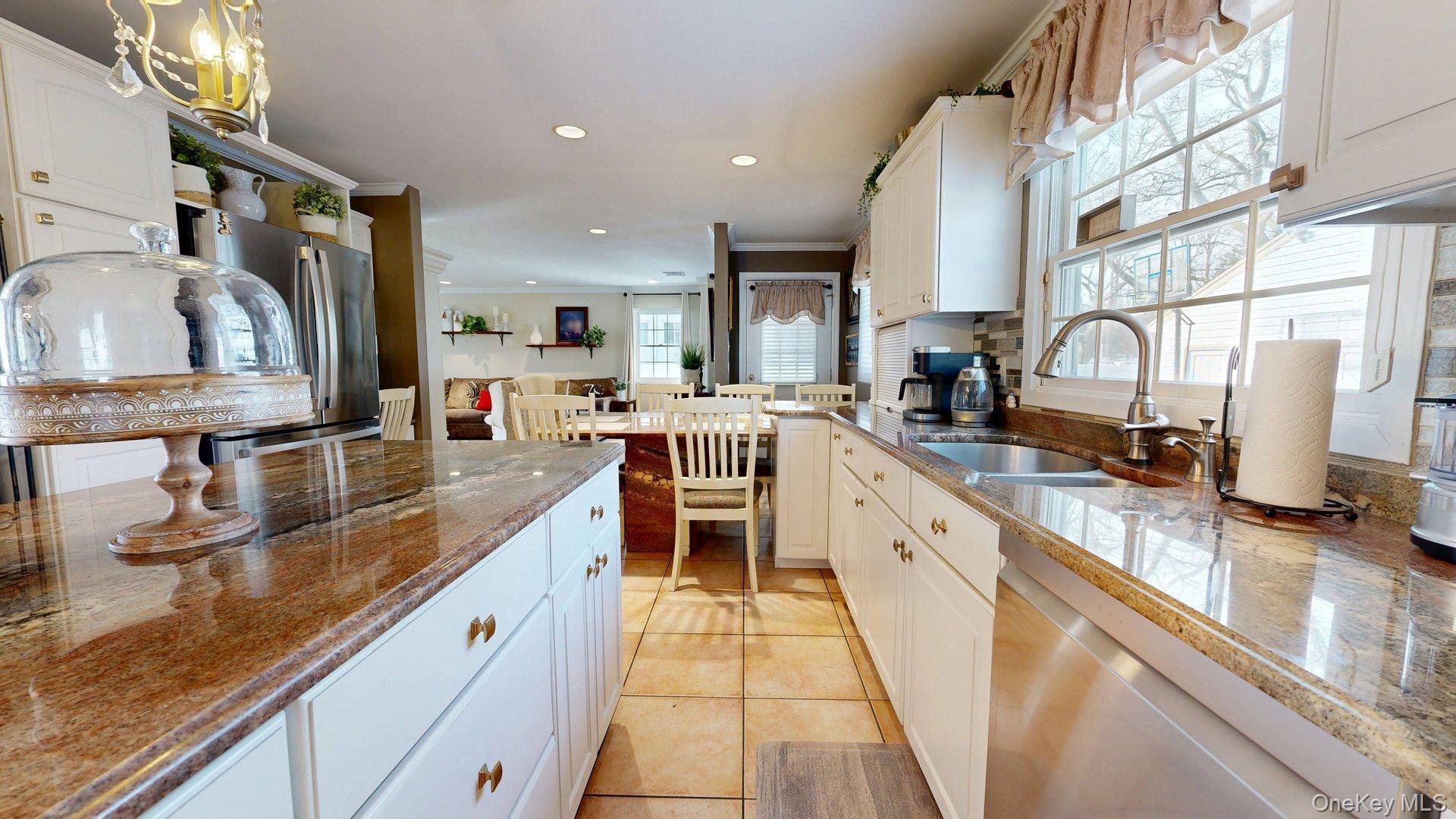 This sun-drenched home features a spacious open-concept living room and kitchen designed for seamless flow and upscale entertaining. The chef’s kitchen is appointed with granite countertops throughout, stainless steel appliances, dual gas ovens, and a gas cooktop, combining style with high-performance functionality. Major appliances—including the refrigerator, washer, dryer, and dishwasher—are all just two years old.
