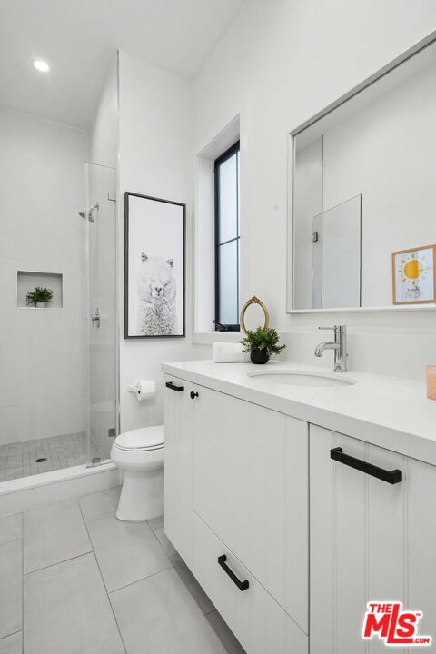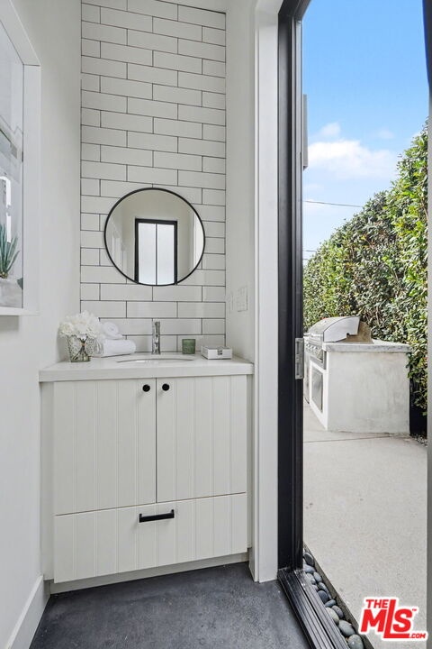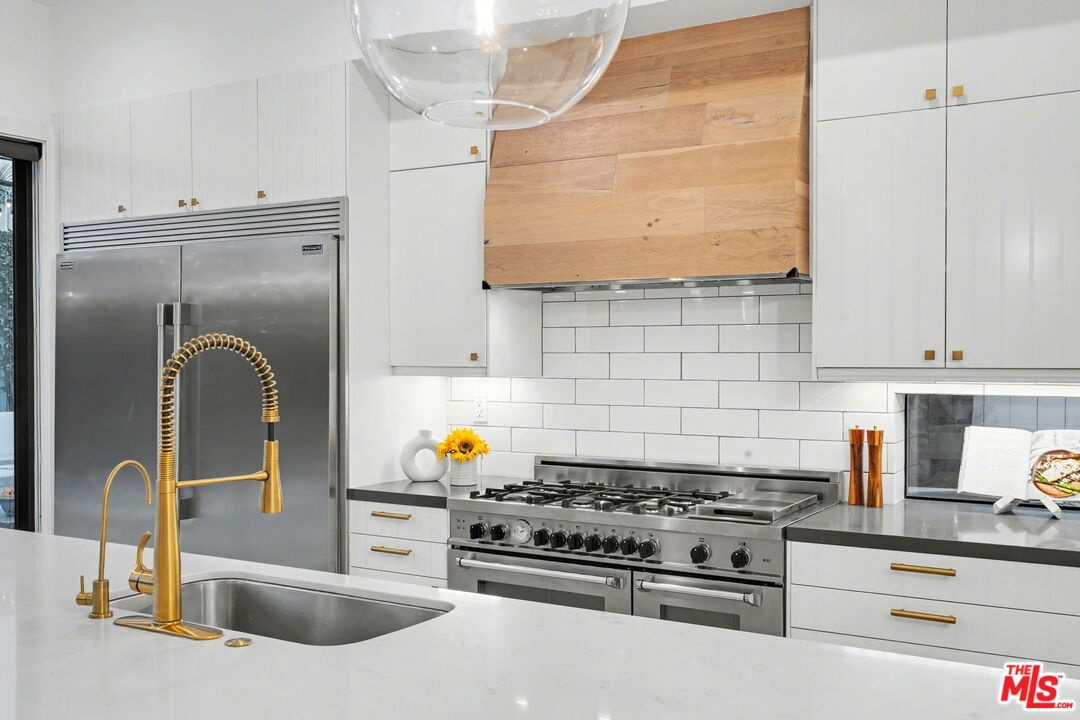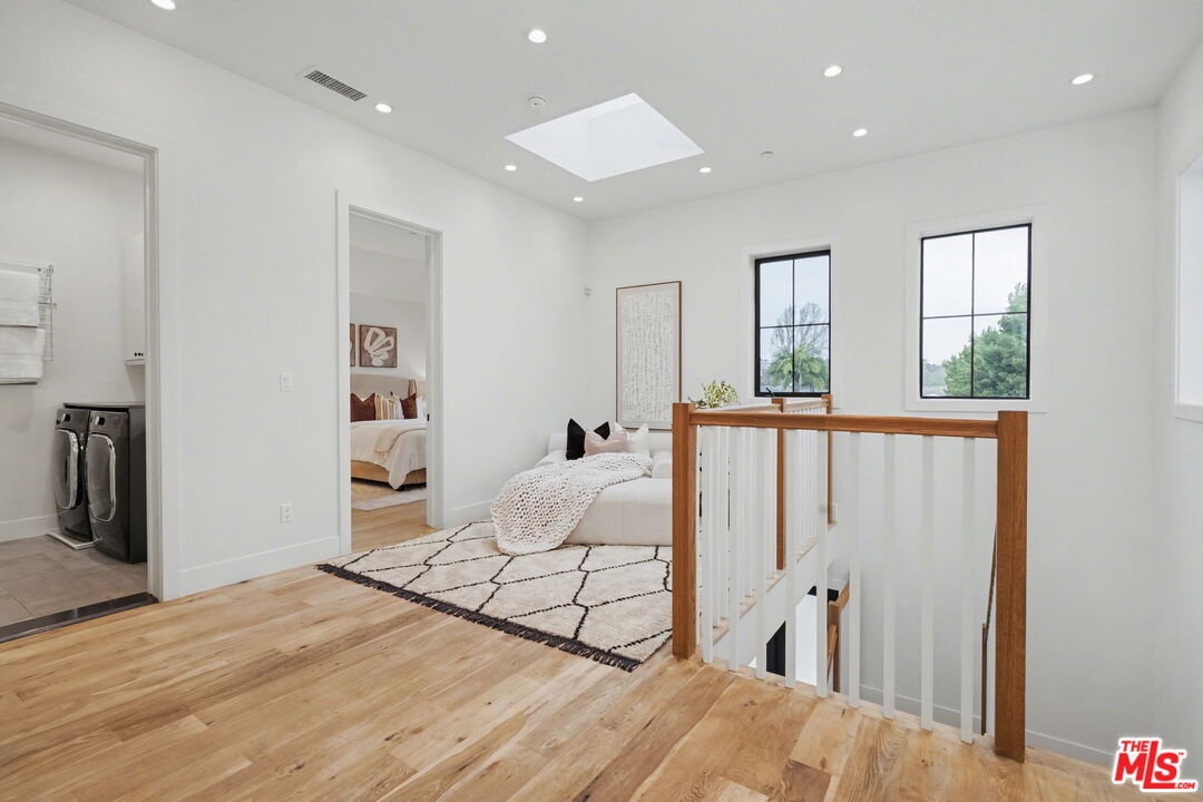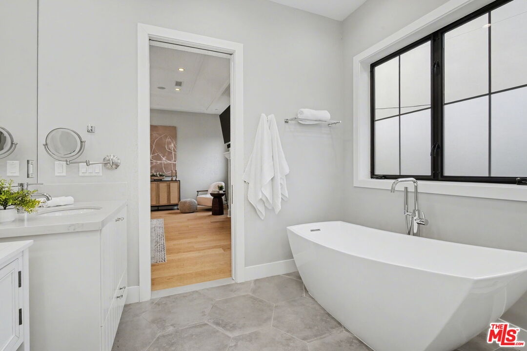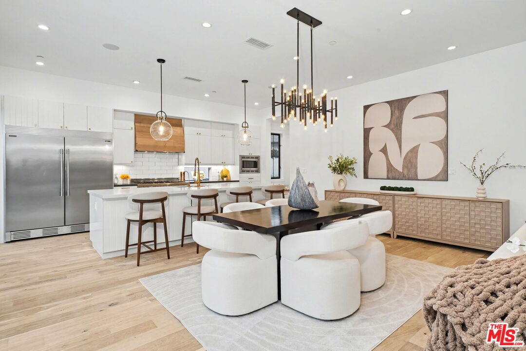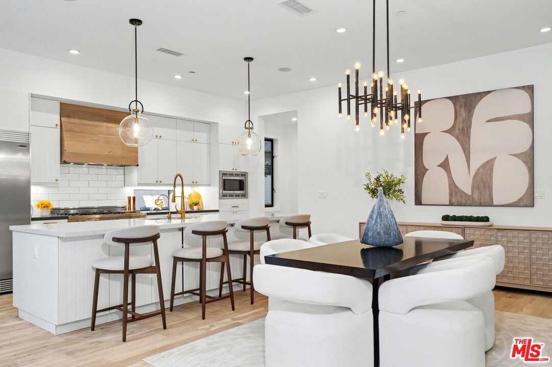 This is a truly exceptional 4 bedroom, 4.5 bath modern farmhouse situated at the end of a charming Venice cul-de-sac. Beautiful wood floors, designer lighting, high ceilings, and abundant natural light create a bright, open, and airy floor plan thoughtfully designed for modern living. The gourmet kitchen is equipped with top of the line appliances, including a Bertazzoni range, and features an expansive kitchen island with bar seating and opens to the dining and living area with a fireplace. A wall of Fleetwood sliding glass doors opens to a private, hedged backyard featuring a beautiful saltwater pool with Italian tile, spa, gas fire pit, built in BBQ, refrigerator, outdoor shower, and exterior bathroom. A flexible downstairs bedroom currently presented as an office adds versatility to the main level, and the home offers direct access from the garage into the kitchen. Upstairs, the landing provides additional flexible space ideal for a reading nook, home office, or gym. The impressive primary suite offers a fireplace, dual vanities, a soaking tub, an oversized separate shower with designer finishes, and a large custom walk in closet. Two additional en-suite bedrooms and a dedicated laundry room complete the upper level. Smart home upgrades include Ring doorbell, security cameras, built in speakers, Nest thermostat, Tesla electric vehicle charger, owned solar, and mobile pool automation. Ideally located near great restaurants, trendy shops, parks, Abbot Kinney, Whole Foods, Penmar Golf Course, and the beach. Rebuilt by Thomas James Homes in 2017.