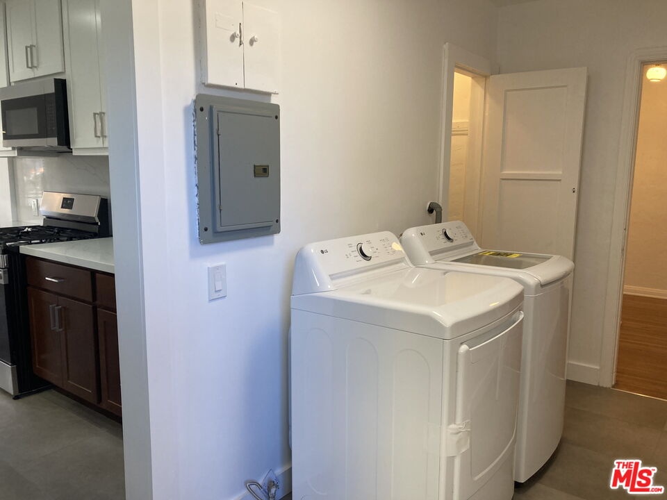 This beautiful 1934 Spanish architecture duplex blends original vintage details with tasteful modern upgrades. Located in the tree-lined South Carthay historic zone, this 3-bedroom, 2-bathroom, 2,000 square foot single family home is a rare gem.ORIGINAL: original inlay hardwood floors, original bathroom tile, many original light fixtures, arched doorways, coved ceilings, decorative fireplace, and leaded glass bay window.NEW: completely remodeled kitchen, featuring all new stainless appliances (gas stove, dishwasher, microwave, & refrigerator), garbage disposal, modern quartz countertops and backsplash, abundant cabinetry, and recessed LED lighting. Bathrooms also thoughtfully upgraded while preserving original tile work. New LG washer & dryer in separate utility room.This ground-floor residence features a spacious step-down living room, separate dining room, breakfast area, walk-in pantry, ample closets, and comes with a detached 2-car garage and a large shared backyard.Centrally located: close to Mid-Wilshire, The Grove, Hollywood/West Hollywood, and Beverly Hills for shopping, entertainment, and fine dining. Tenant pays gas, electricity, and WiFi. The water/trash/sewer bill is split evenly. Pets will be considered with a deposit. This is a no smoking property.