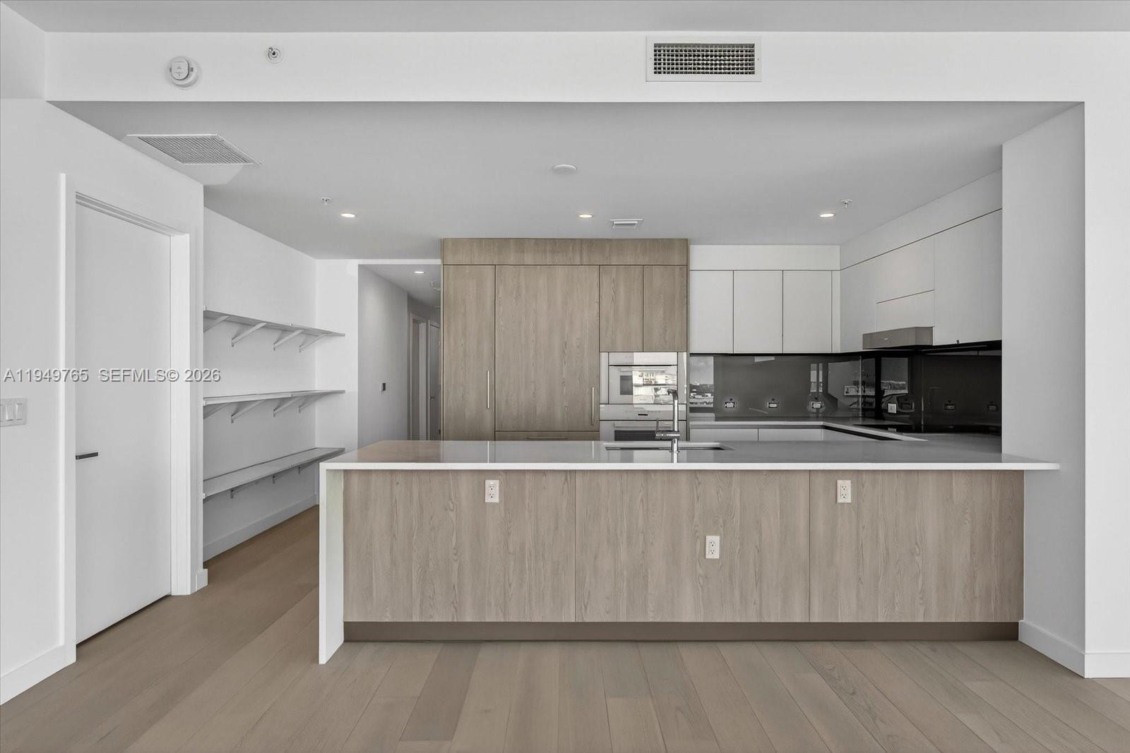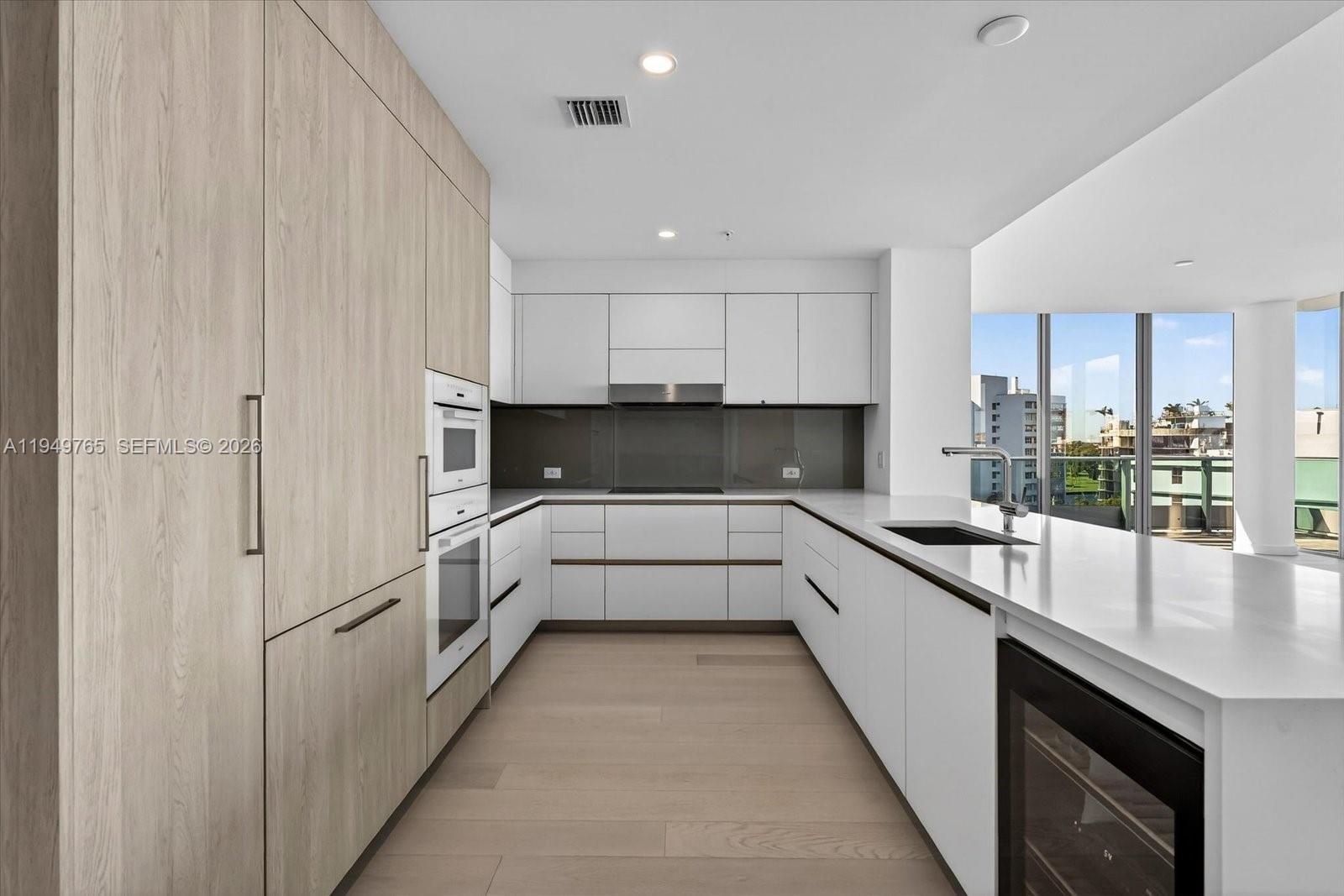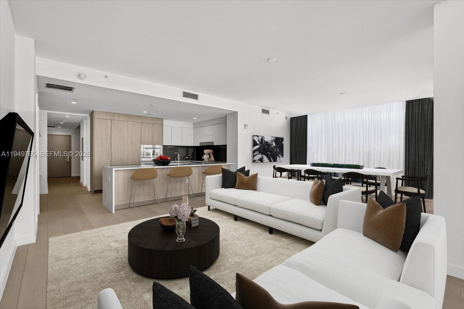 The Parkview Penthouse at La Baia South is a quiet, elevated residence where proportion, materiality, and light shape the design. Located on the eighth floor, this three-bedroom residence with den spans 2,068 interior square feet, complemented by 399 square feet of wraparound private outdoor space. Interiors feature imported European wide-plank wood flooring, ten-foot ceilings, and floor-to-ceiling, impact-resistant glass that brings in natural light and frames park-facing views with select water sight-lines from the terrace. The kitchen is thoughtfully integrated into the living space with custom European cabinetry, quartz stone countertops, a pantry, and a full Miele appliance package. Fixtures and finishes throughout the residence are curated by New York–based Durukan Design, with Hansgrohe fittings providing a refined, modern finish. Bathrooms are appointed with natural marble stone flooring, glass and chrome showers with dual rainfall showerheads, and custom European vanities. In-residence laundry includes a Miele washer and dryer, completing a residence defined by architectural clarity and carefully selected materials. La Baia is the latest project from visionary New York developer Ian Bruce Eichner who is credited with placing Miami Beach’s prestigious South of Fifth neighborhood on the map with the arrival of the Continuum South Beach. Upper Penthouse 02 comes with storage unit. Dock slips available for sale. Sold separately.
