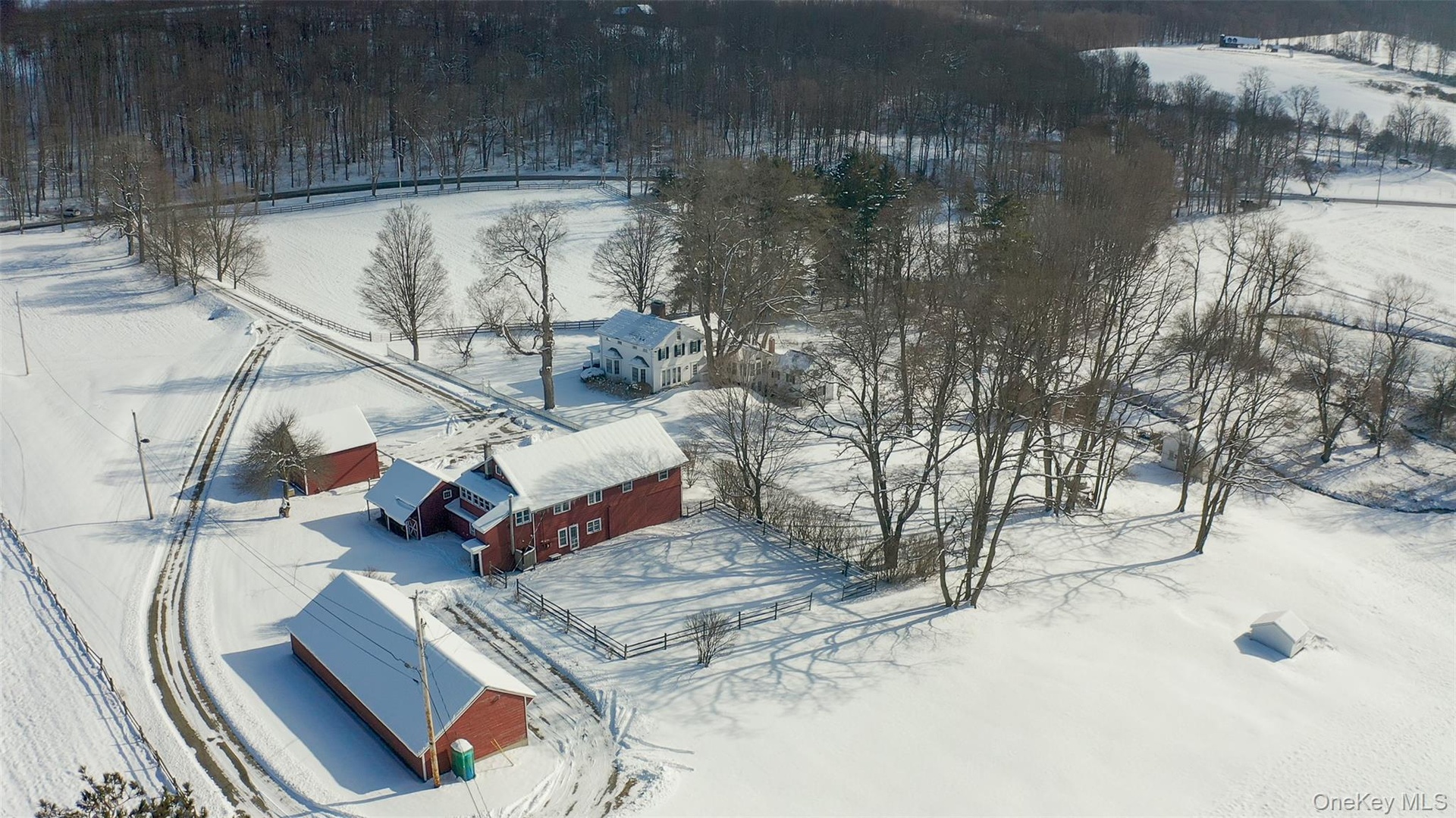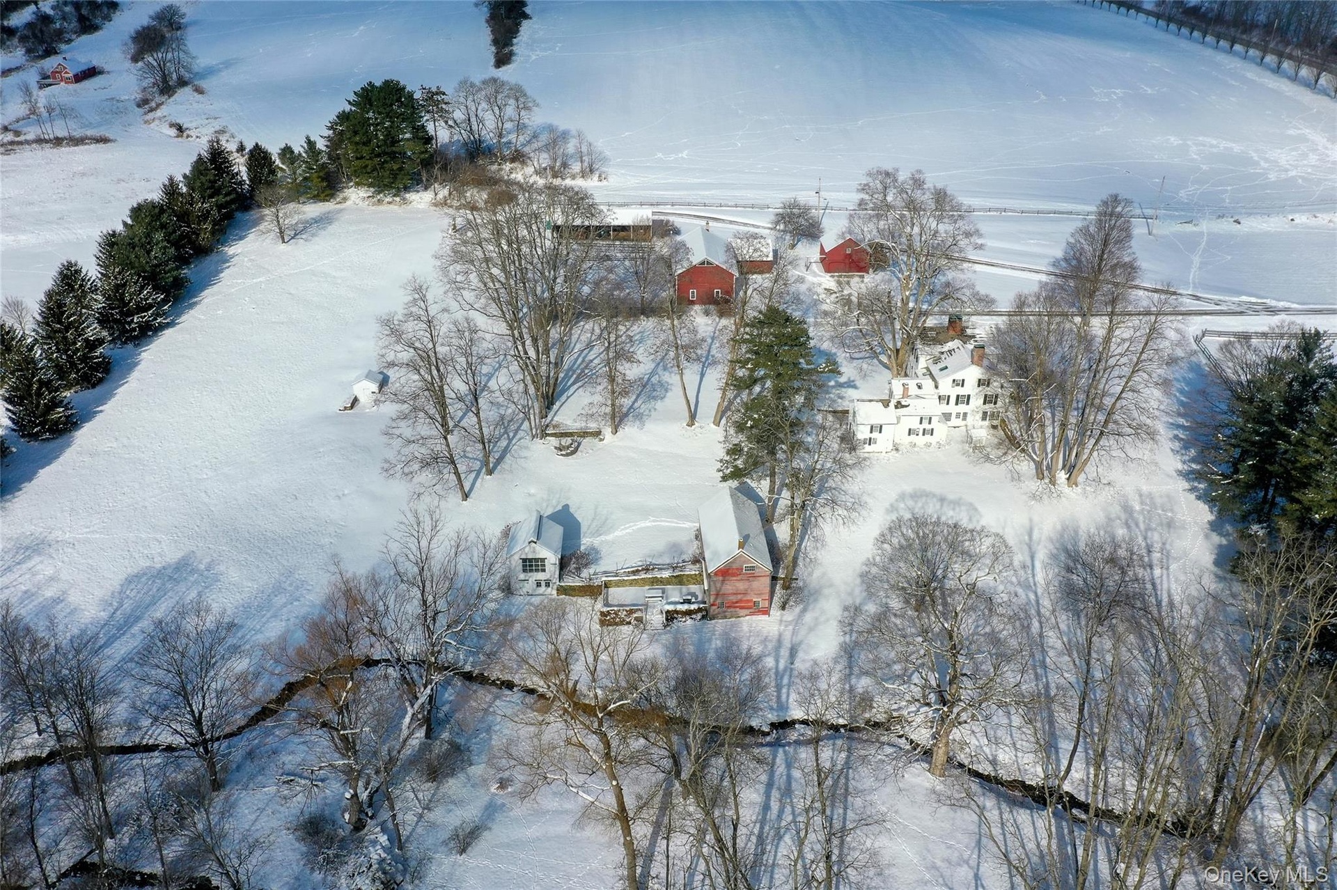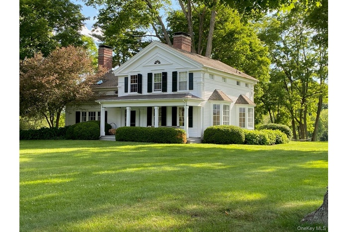 Set far back from one of the Hudson Valley’s most prestigious and scenic roads, this stunningly restored 1830s colonial farmhouse is a masterclass in combining historic charm with sophisticated living. Situated in the heart of the pastoral Shekomeko Valley on 9.6 pristine acres, this property offers ultimate privacy surrounded by large, rolling farms and protected acreage. Classic white clapboard siding and a welcoming front porch set the stage for a home that seamlessly blends 19th-century soul with modern amenities. Step onto original wide-plank flooring and admire the stunning, exposed hand-hewn beams. An oversized living room features a wood-burning fireplace and panoramic views from three exposures, with French doors leading to the expansive property. The formal dining room boasts an additional fireplace and two large china closets. The professionally equipped kitchen includes dual sinks, a premium professional range, a built-in refrigerator, and a sunny, south-facing breakfast room with pastoral views. A convenient butler’s pantry, powder room are also included on this level. Head upstairs to four bedrooms (two with fireplaces) and three bathrooms. The main house includes a fully equipped 3-bedroom apartment with a separate entrance—perfect for guests or staff. The property is a true compound, designed for both entertainment and flexibility. A fully outfitted barn includes a 3-bedroom apartment, a gym with a sauna, and ample storage. Other buildings include a barn/workshop, a yoga studio, a 2-car detached garage with a storage loft, and a 60' equipment shed. This parcel offers endless potential for hobby farming, horses/livestock, or creating a private, quiet home office. Located in the desirable Shekomeko Valley, this property offers a rare mix of secluded tranquility and easy access to nearby towns.